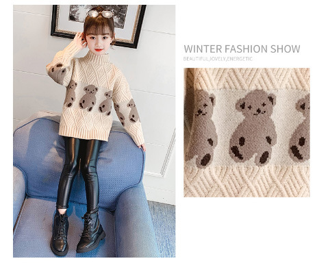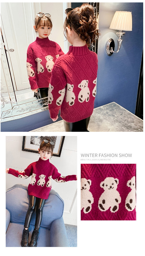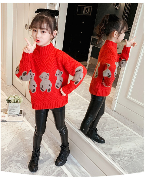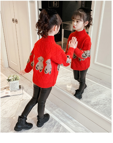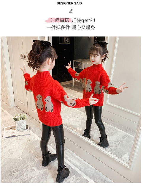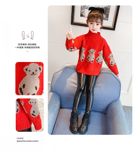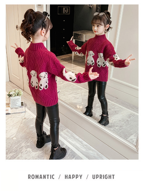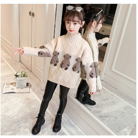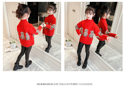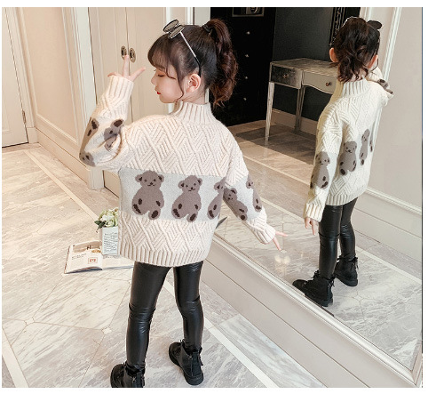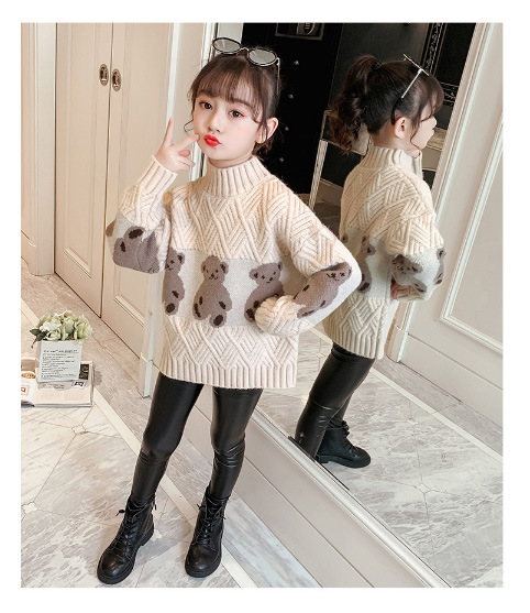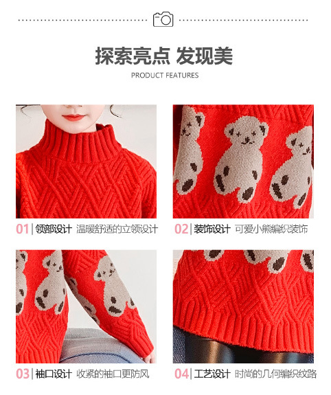 여아용 스웨터, 벨벳 소재, 두꺼운, 가을 겨울 신상, 세련된 스타일, 중대형 아동용 하프 터틀넥 니트, 따뜻한 한국 스타일스토어 가기