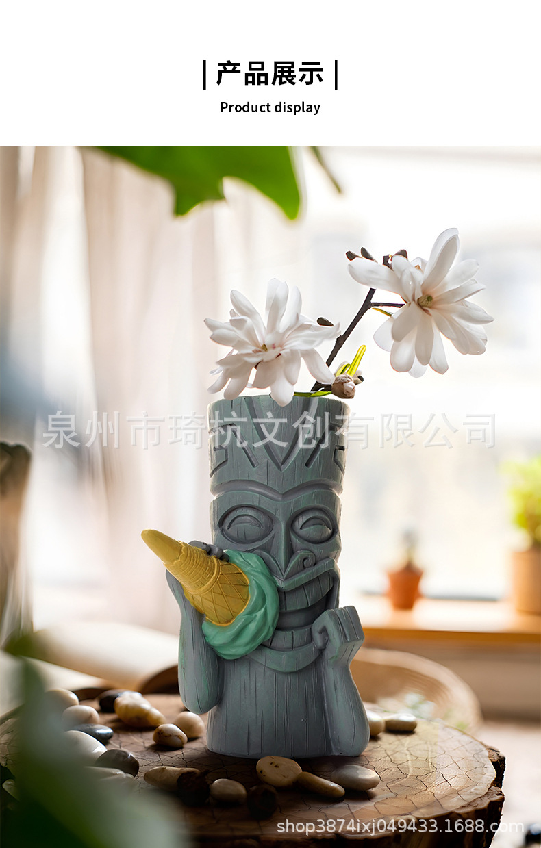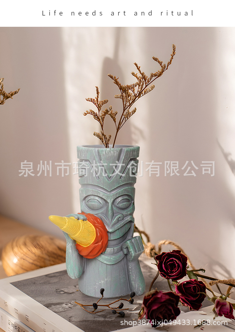 국경 간 새로운 아이스크림 토템 조각 마야 토템 꽃병 데스크탑 아트 장식품 야외 꽃꽂이 장식