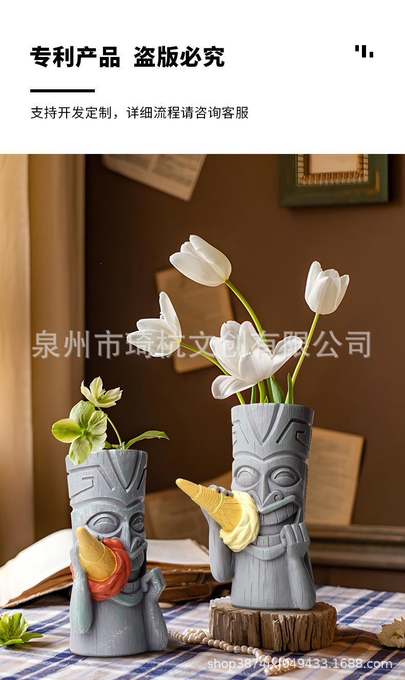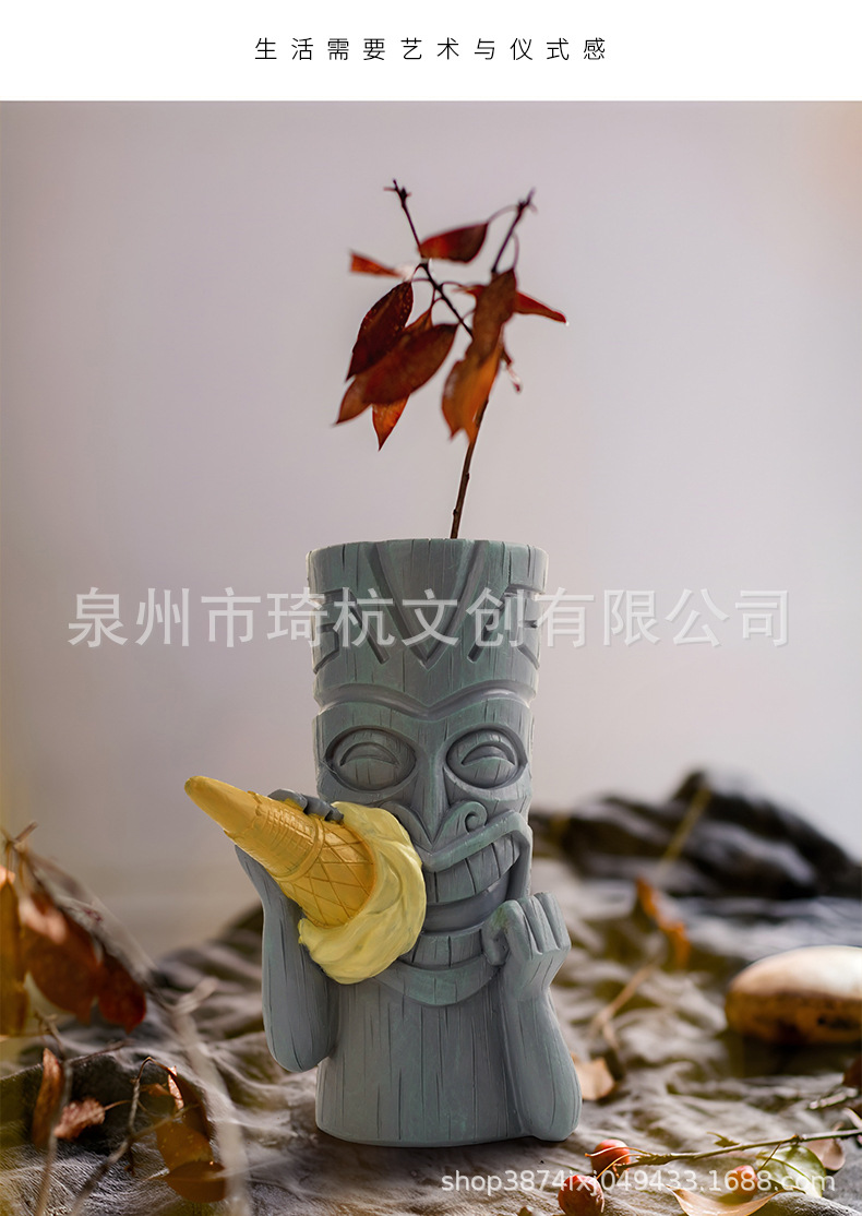 국경 간 새로운 아이스크림 토템 조각 마야 토템 꽃병 데스크탑 아트 장식품 야외 꽃꽂이 장식스토어 가기