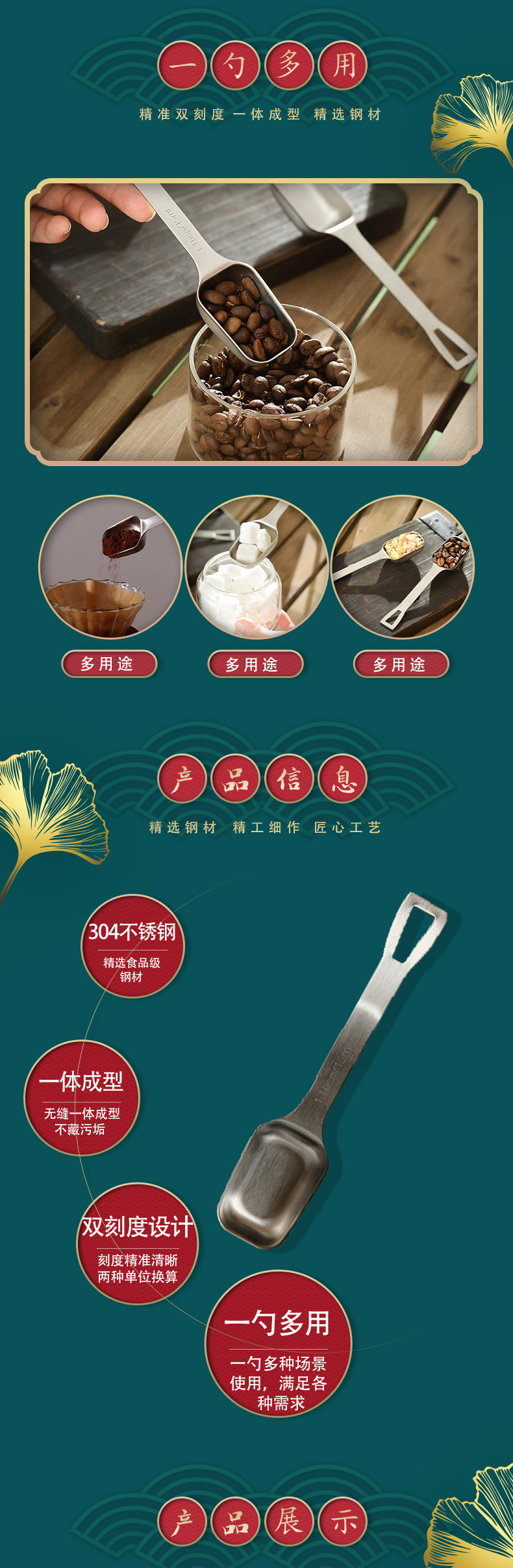 304 스테인레스 커피 원두 계량 스푼 스케일 이중 목적 긴 손잡이 커피 가루 정량적 스푼 커피 숍 가정용 계량 스푼스토어 가기