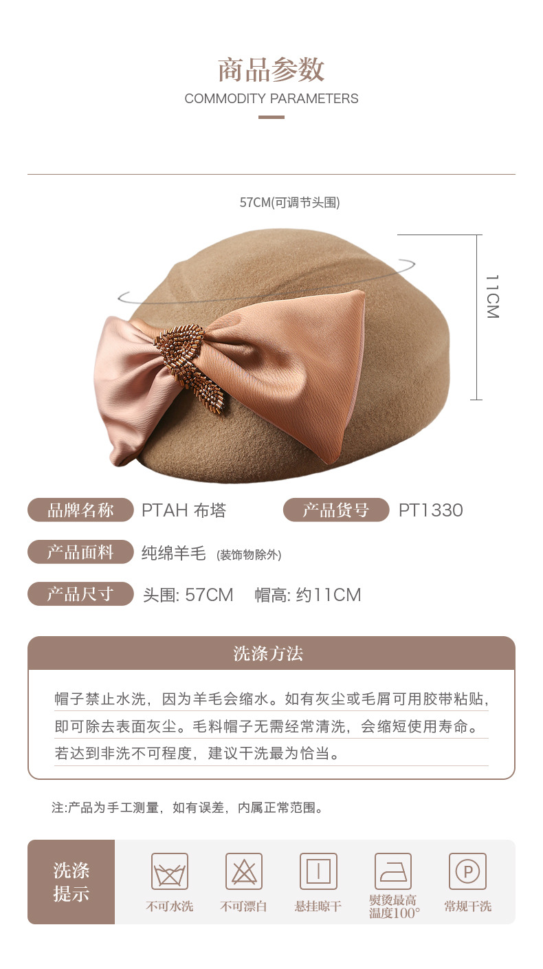 울 베레모 여성의 프랑스 스타일 햅번 스타일 라운드 탑 모자 패션 우아한 스테레오 타입 벨 모자 활 PT1330스토어 가기