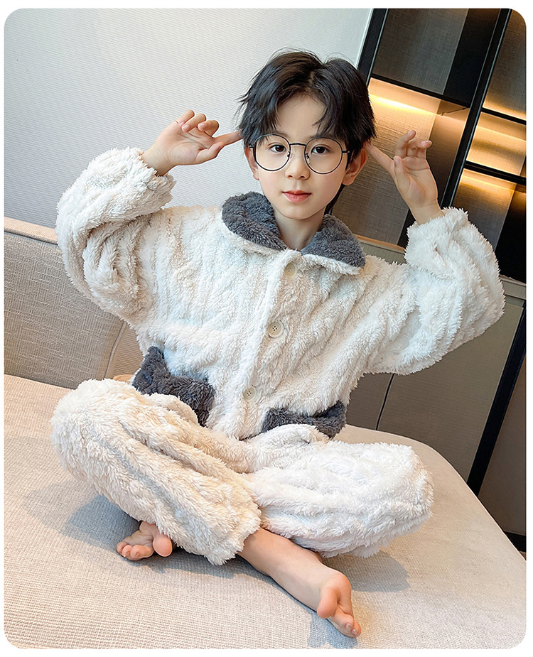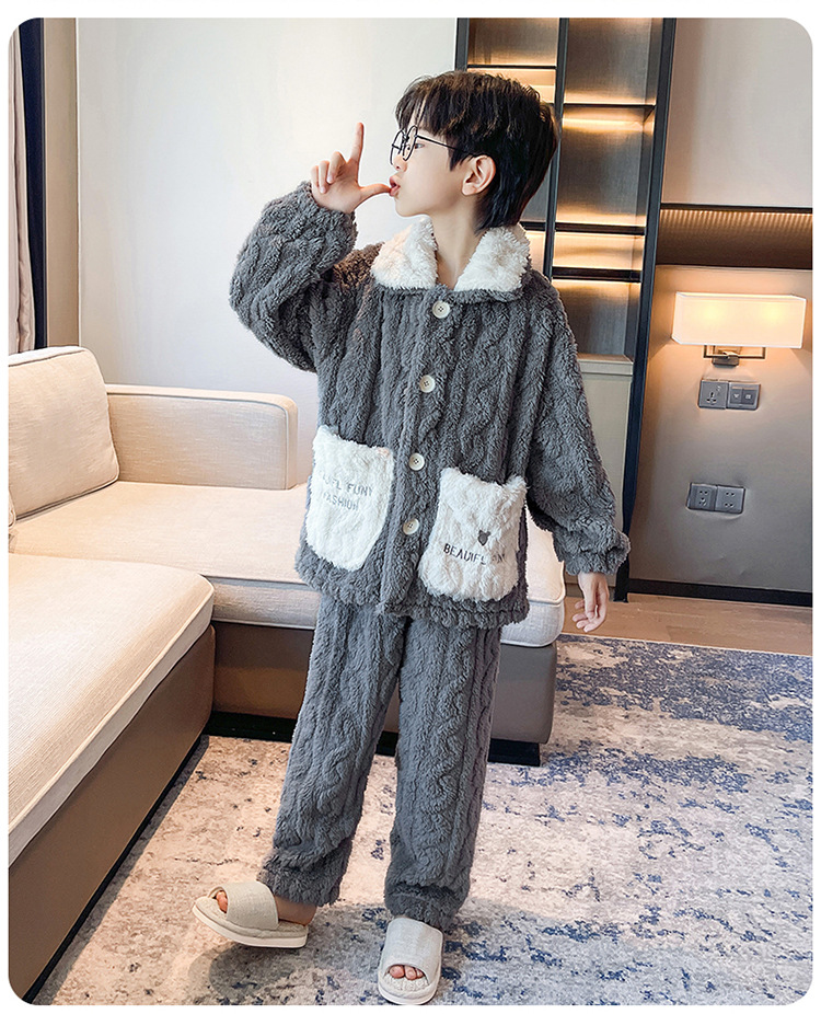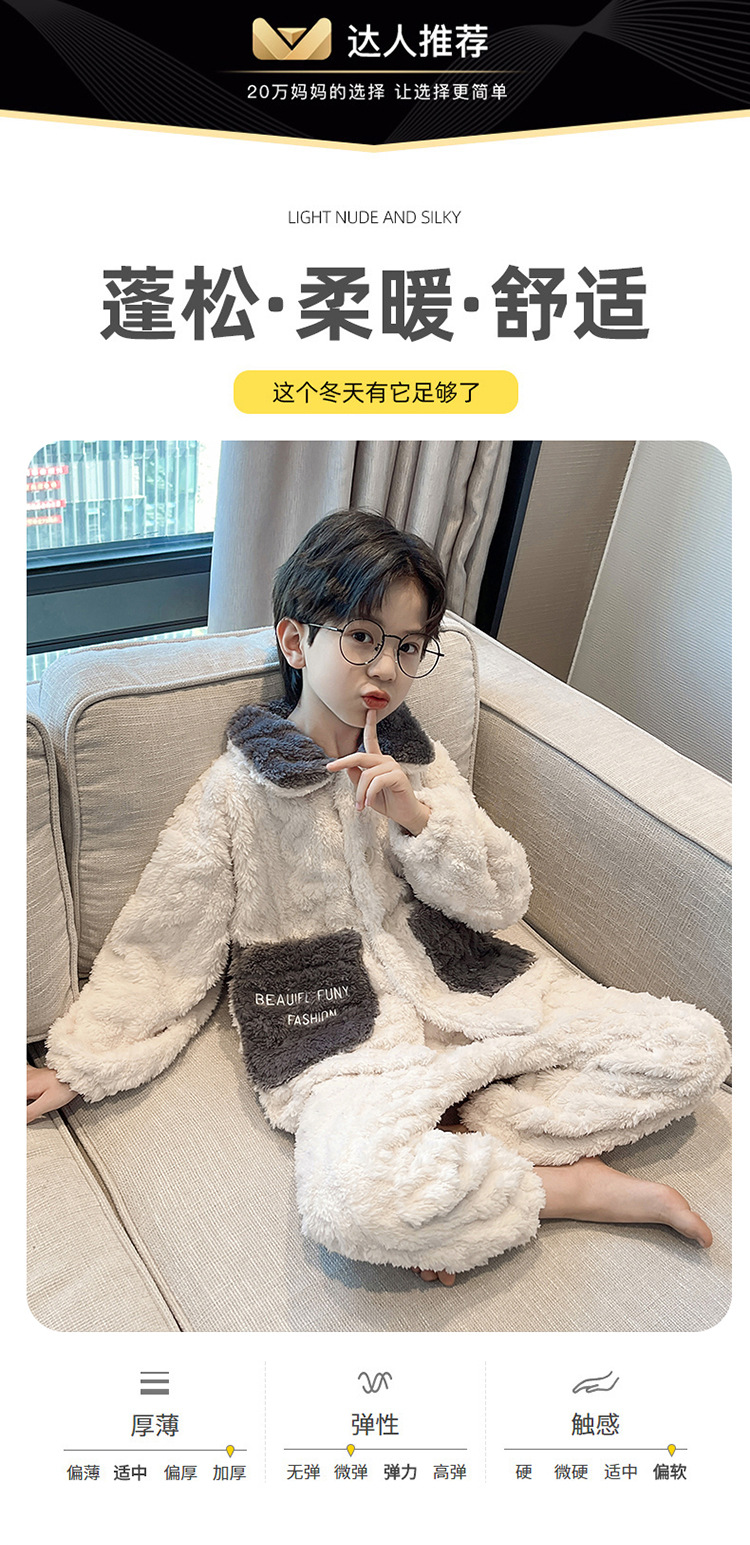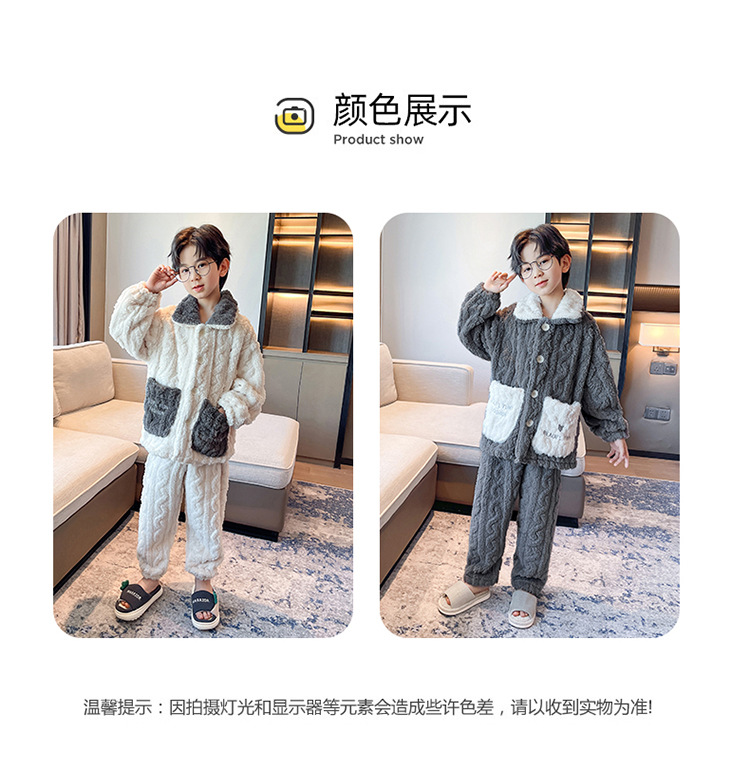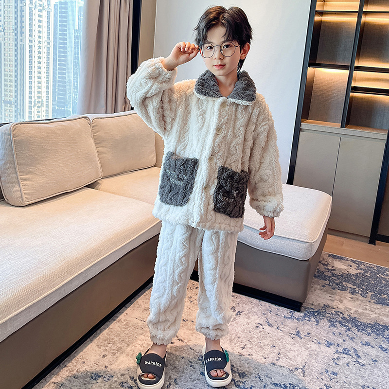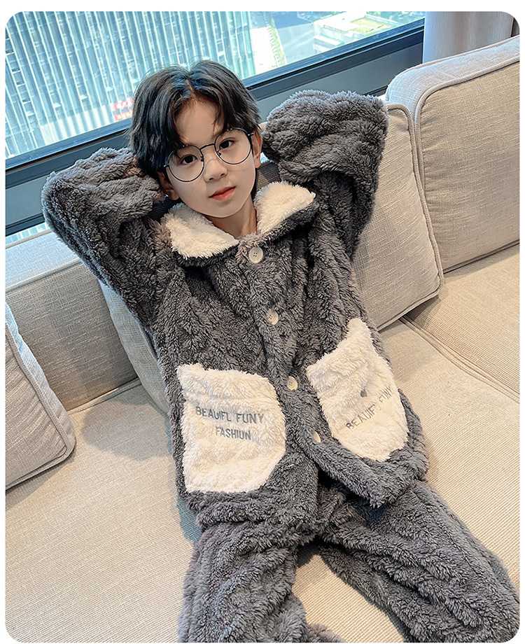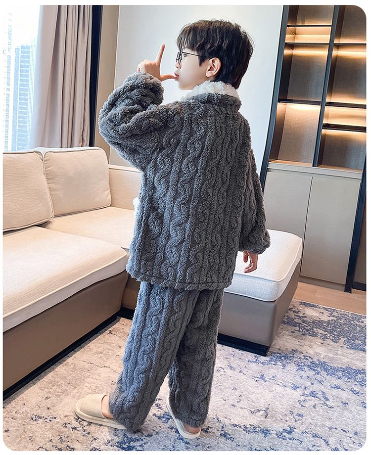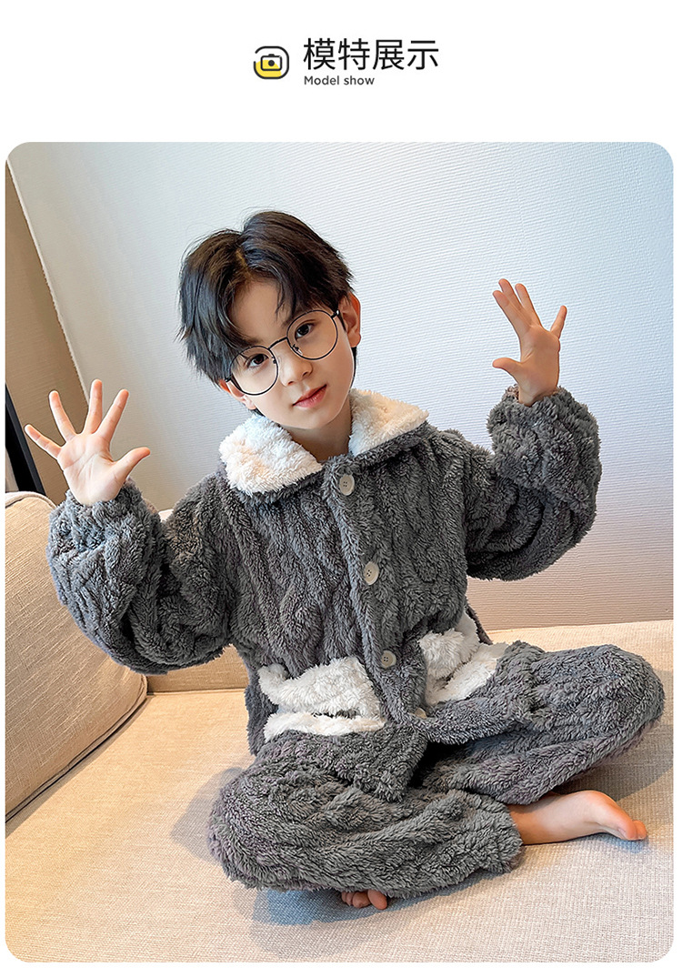 아동복 소년 잠옷 두꺼운 겨울 어린이 소년 겨울 산호 양털 가정 옷 세트 스타일 2023 새로운 스타일