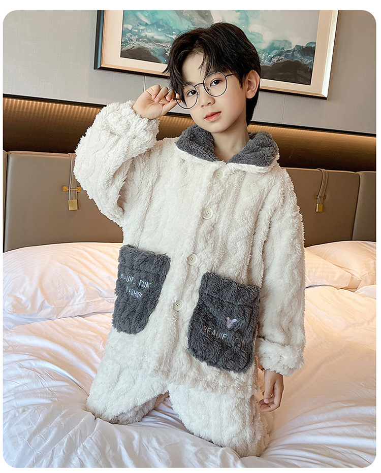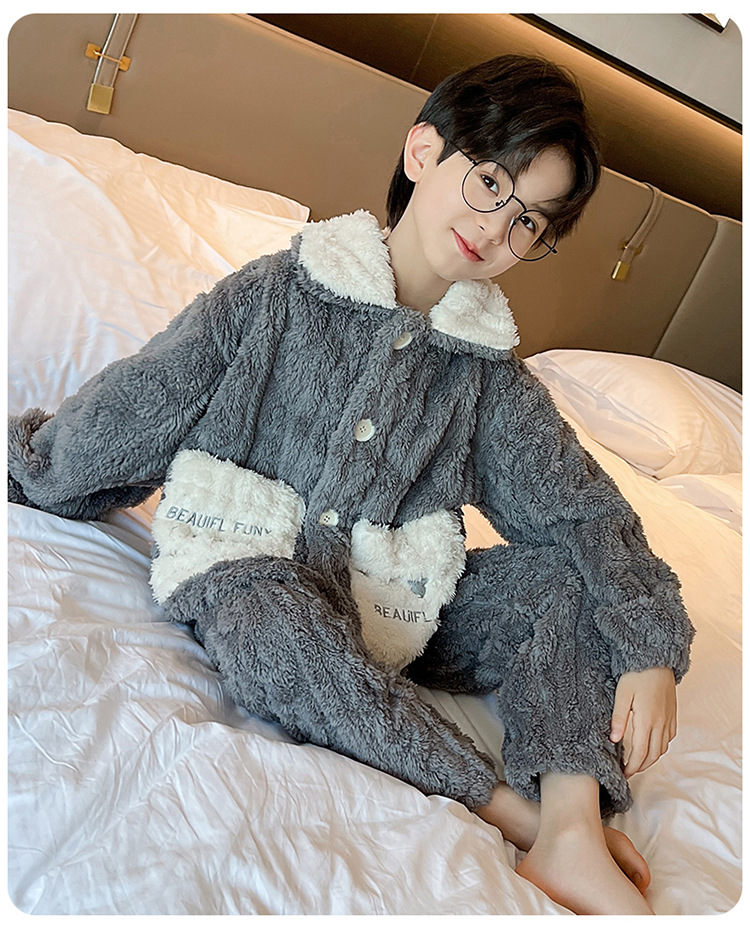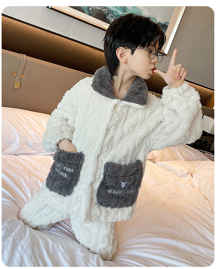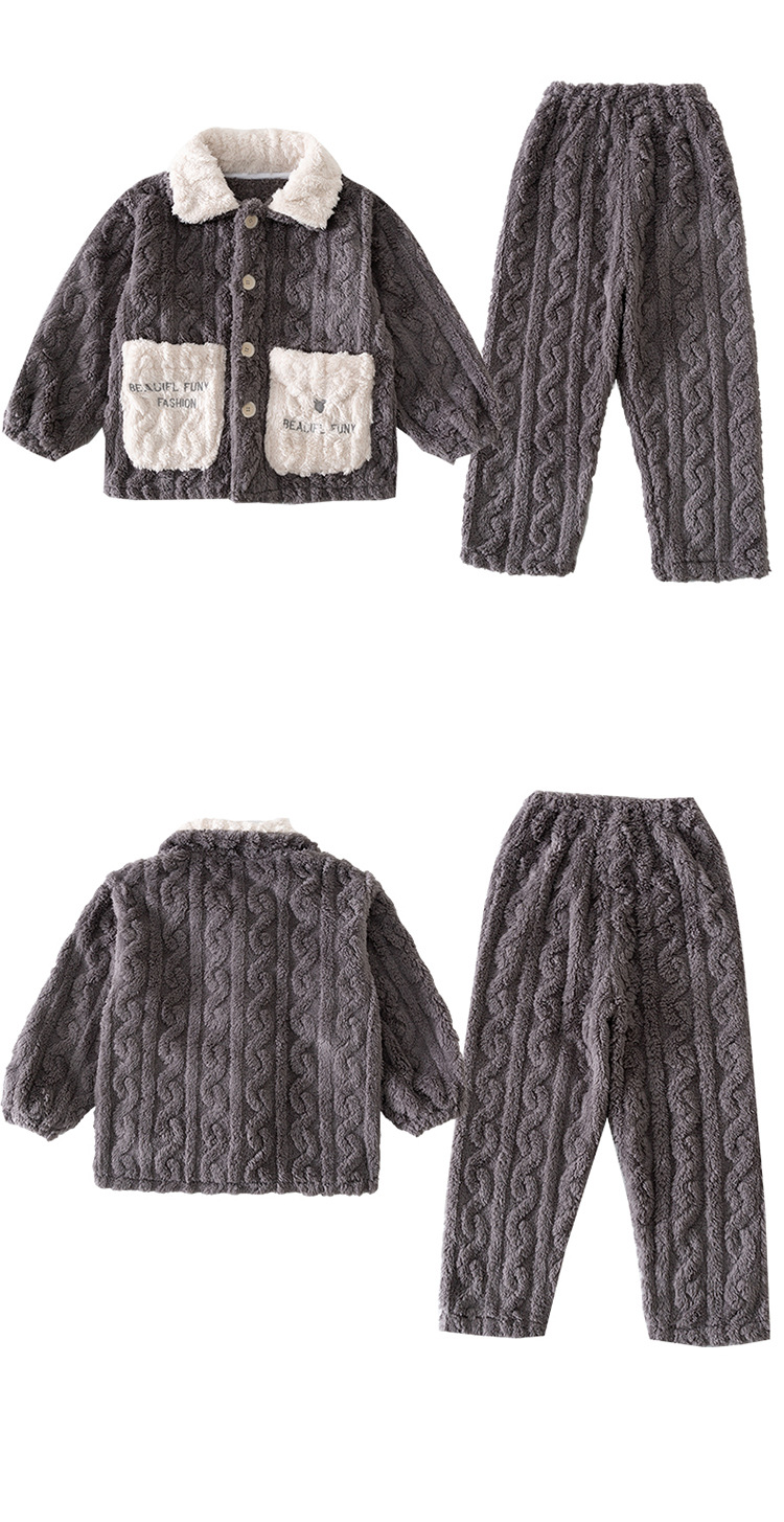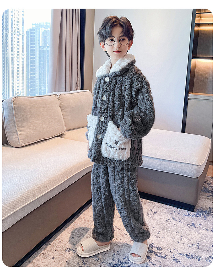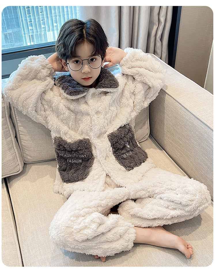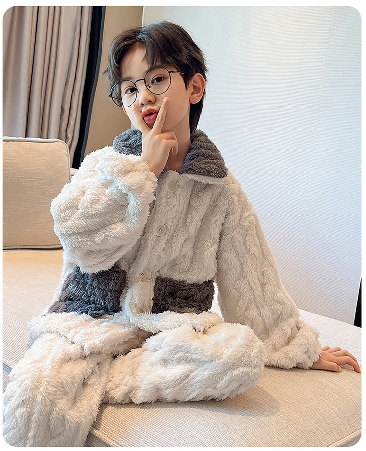 아동복 소년 잠옷 두꺼운 겨울 어린이 소년 겨울 산호 양털 가정 옷 세트 스타일 2023 새로운 스타일