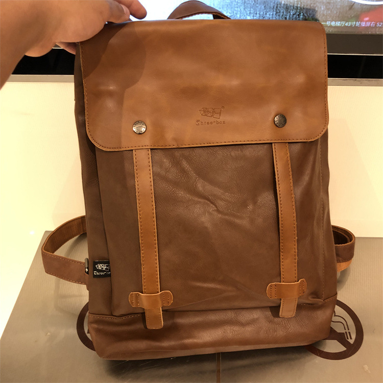 threebox日韩休闲男士双肩包时尚复古原宿手提男背包学生电脑书包