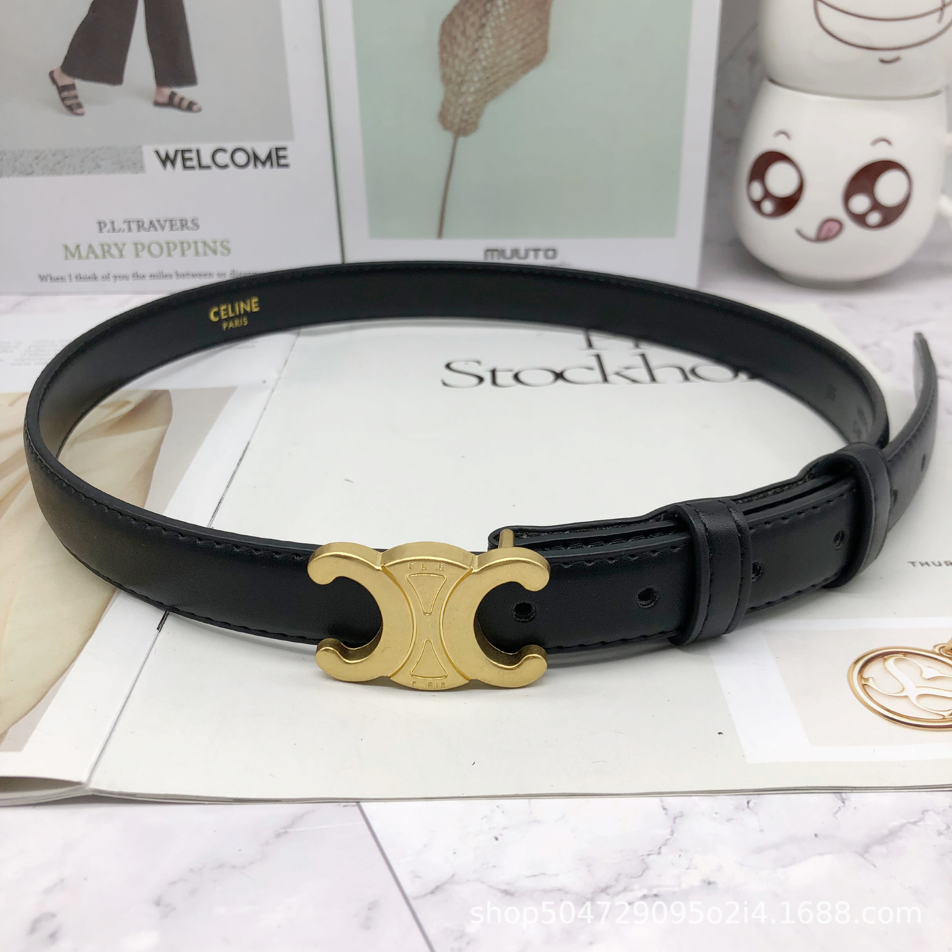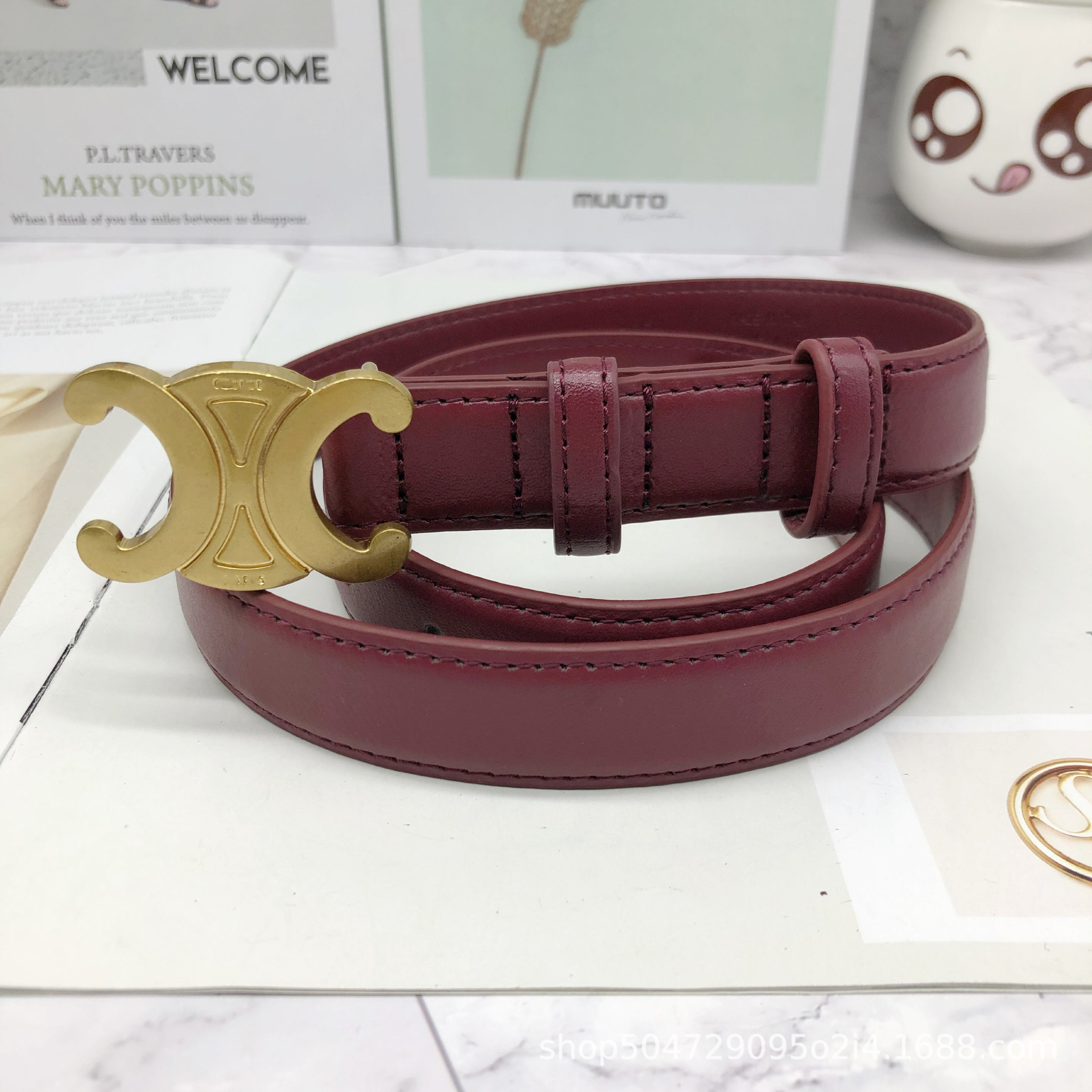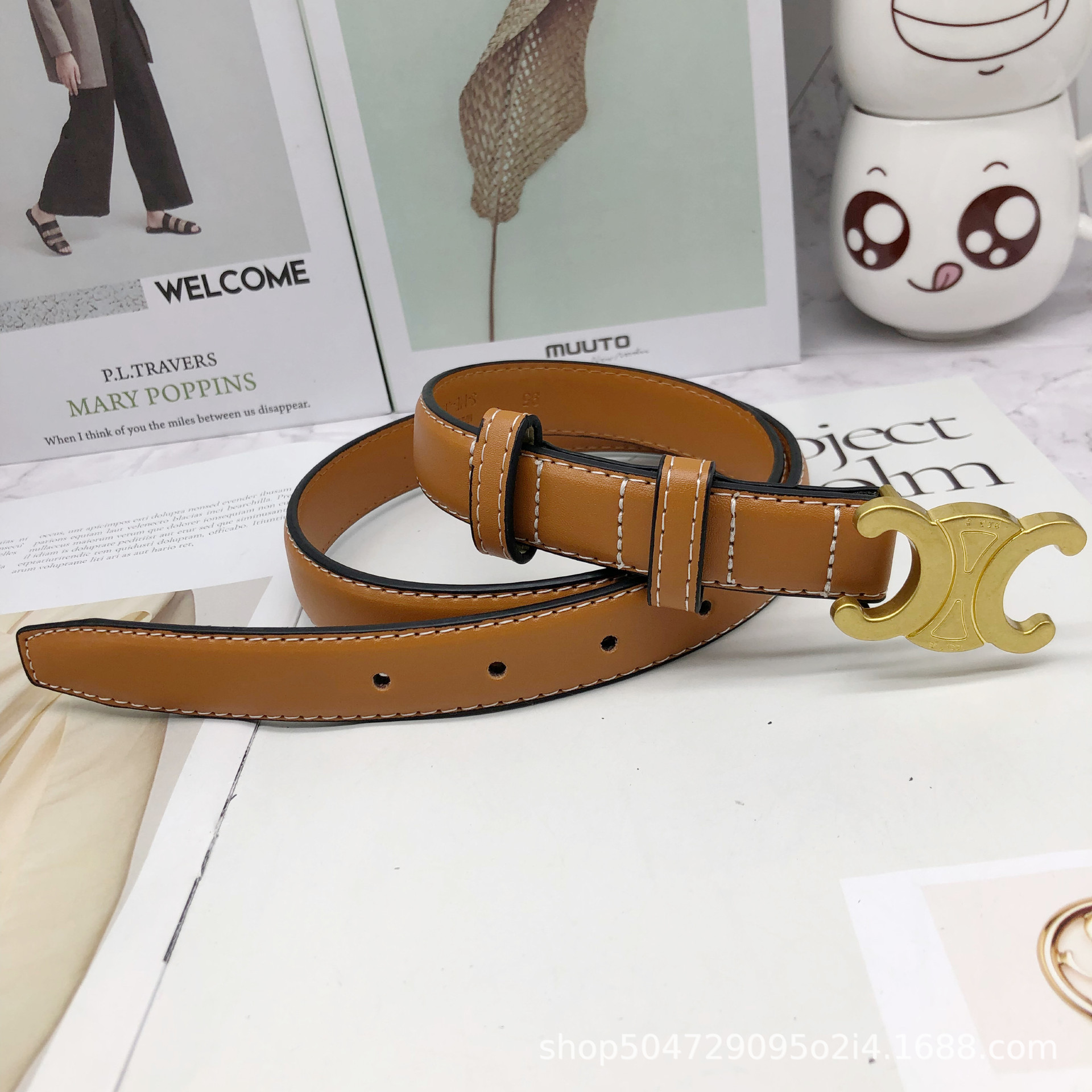 도매 새로운 더블 C 아크 드 Triomphe 한국 정품 가죽 벨트 여성의 캐주얼 모든 일치 실린 장식 얇은 벨트 재고스토어 가기