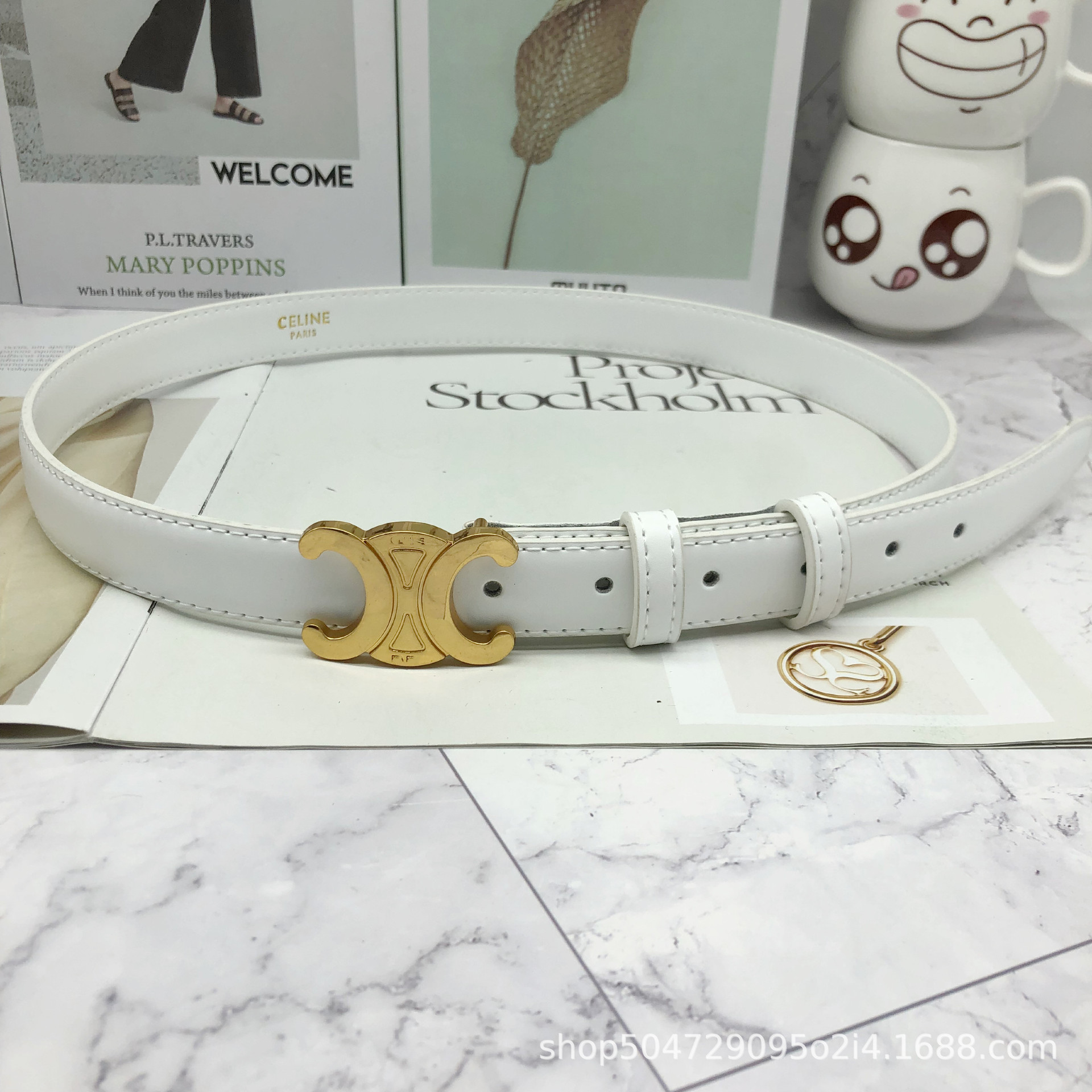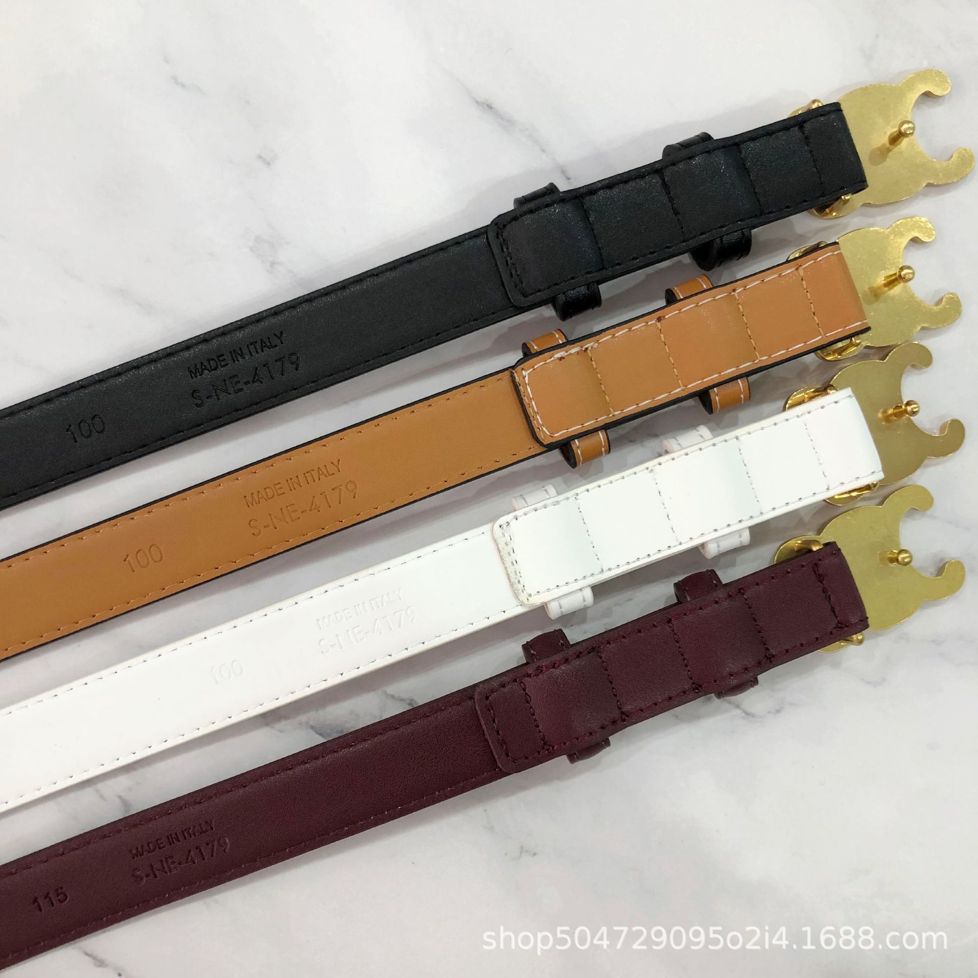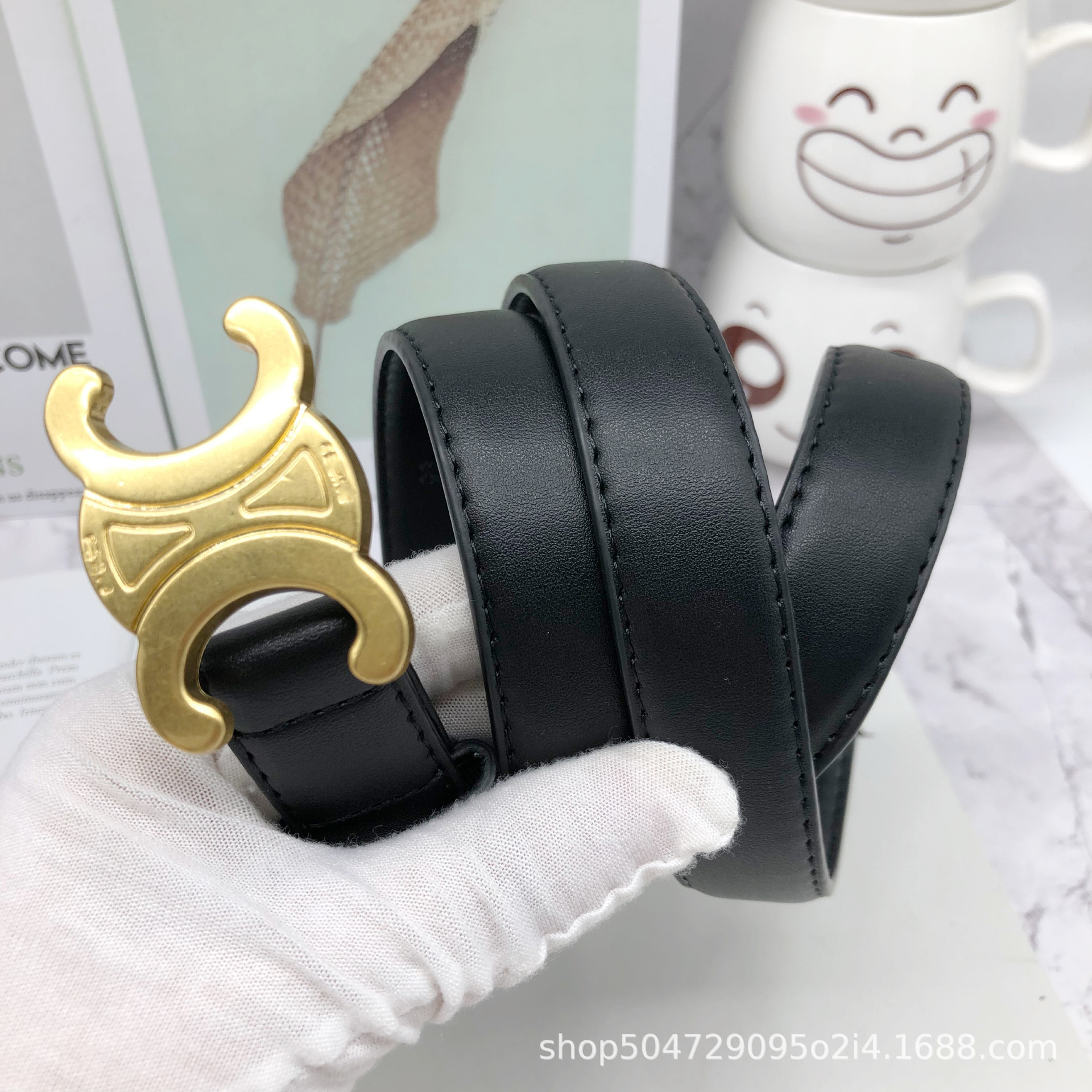 도매 새로운 더블 C 아크 드 Triomphe 한국 정품 가죽 벨트 여성의 캐주얼 모든 일치 실린 장식 얇은 벨트 재고스토어 가기