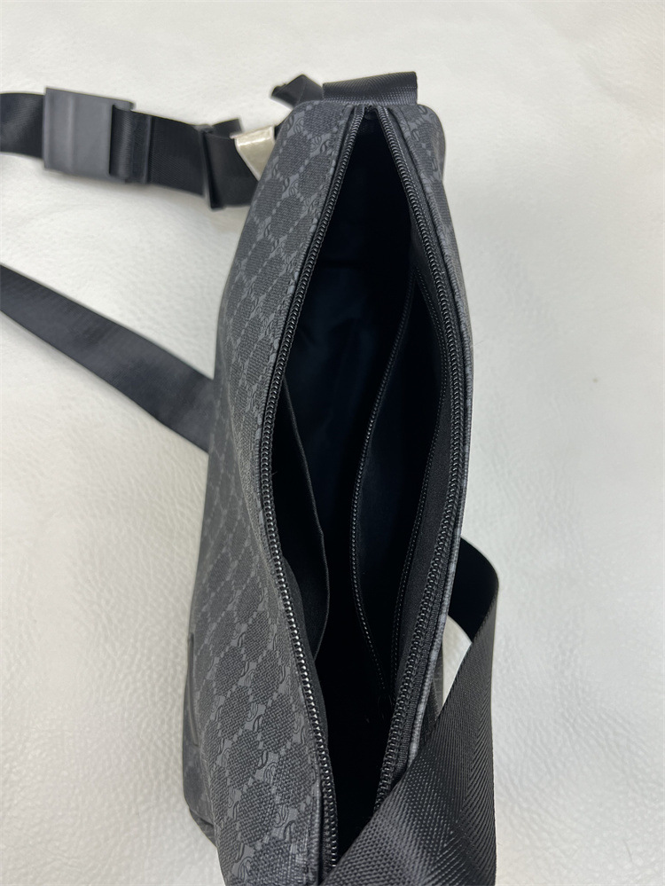 2023新品男士潮流斜挎包横款菱形格小背包时尚运动学生格子单肩包