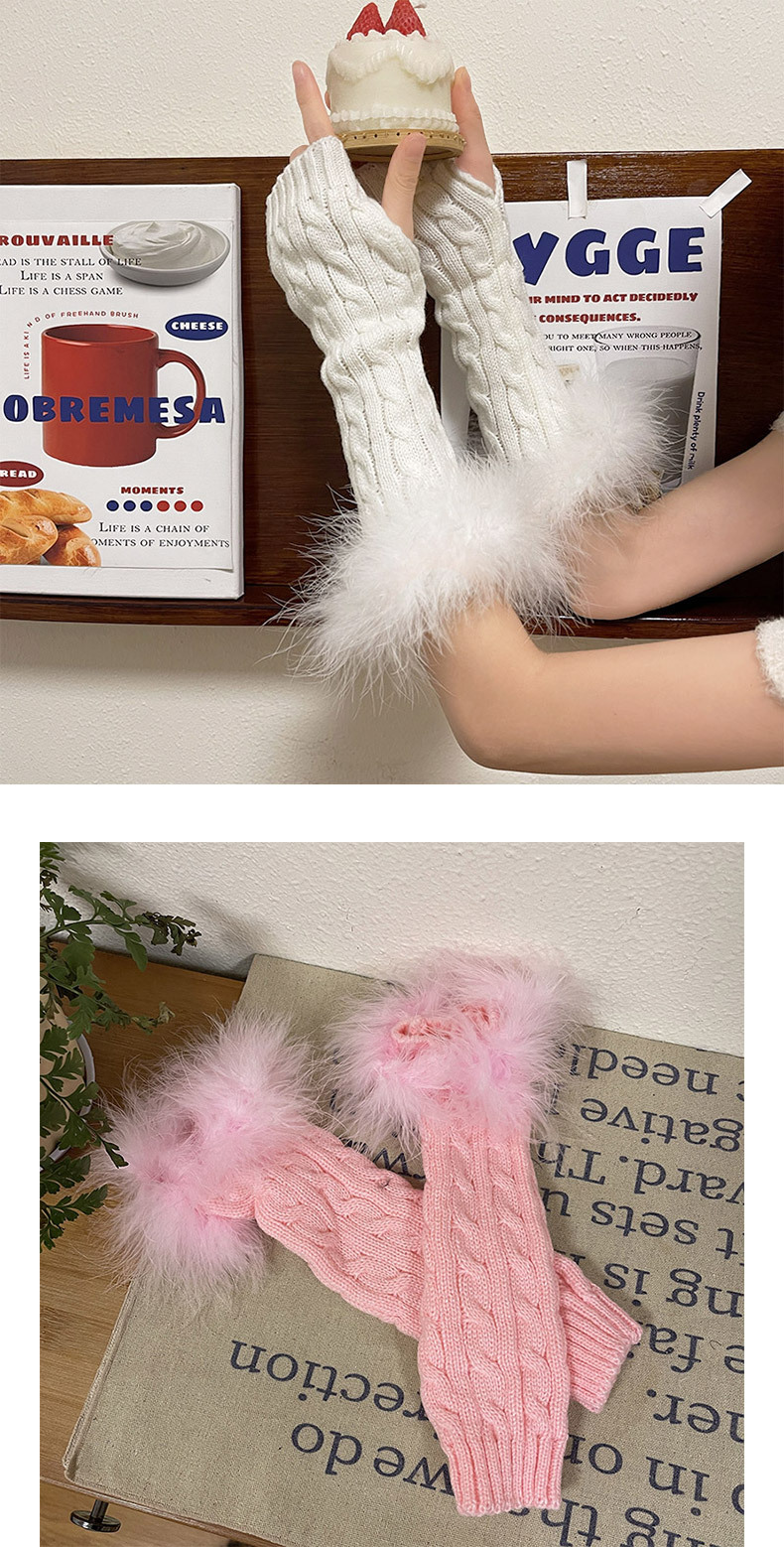 밀레니엄 y2k 서브 컬쳐 핫 걸 깃털 레이스 트위스트 텍스처 니트 소녀 핸드 슬리브 로리타 jk 장갑스토어 가기