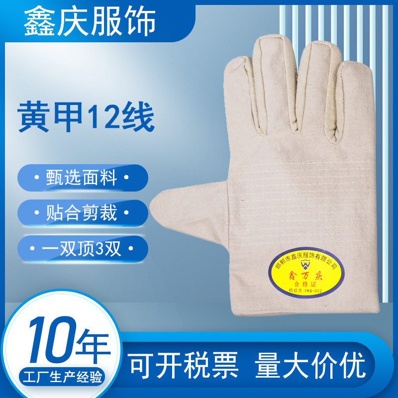 白甲斜裁12线6线帆布手套半衬耐磨加厚帆布手套电焊工地劳保手套