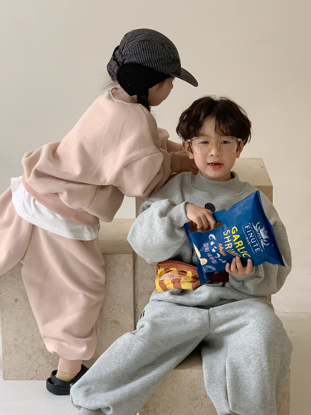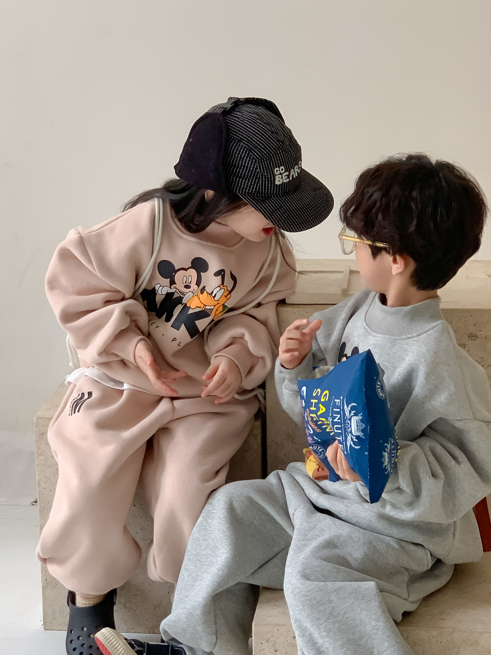 아동복 2025 겨울 스타일 소년과 소녀 한국어 스타일 알파벳 만화 투피스 세트 아동 캐주얼 두꺼운 스웨트 셔츠 세트