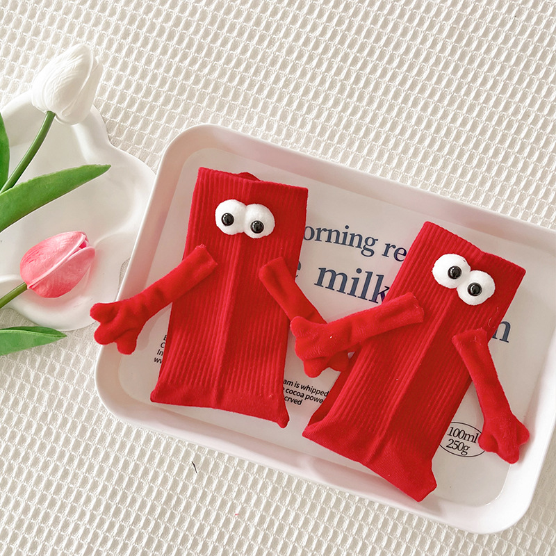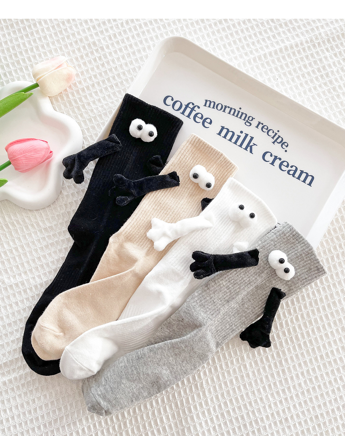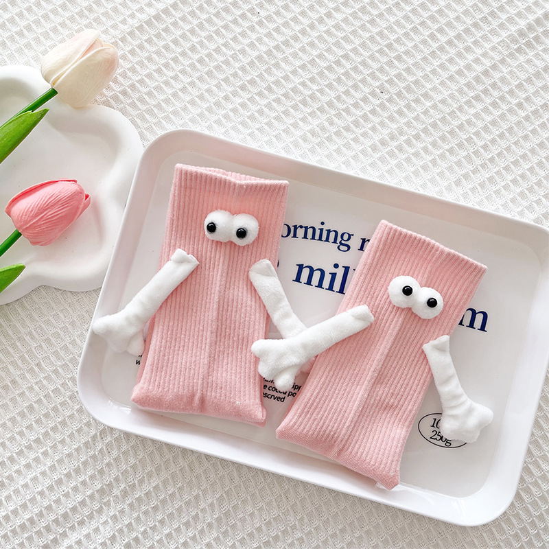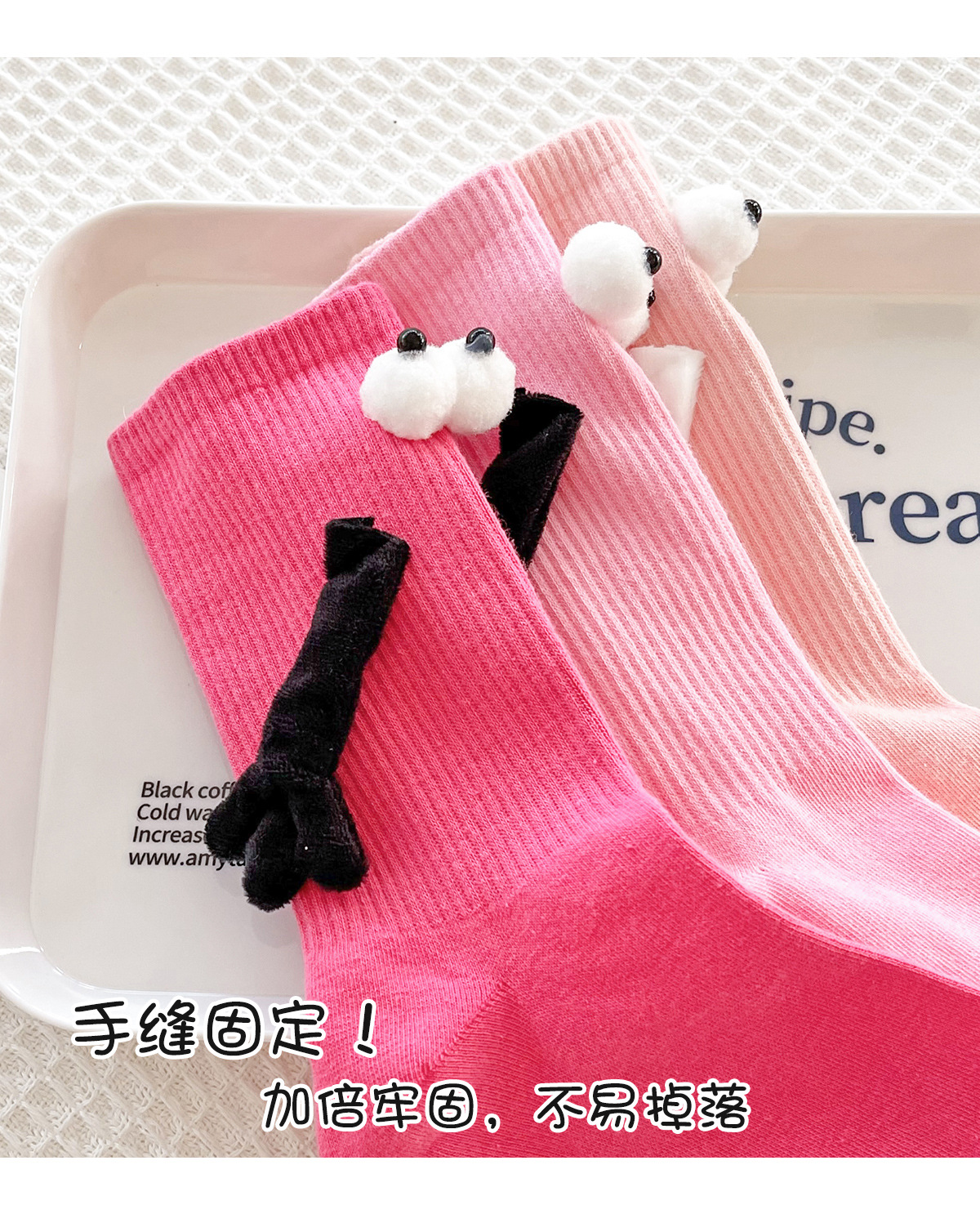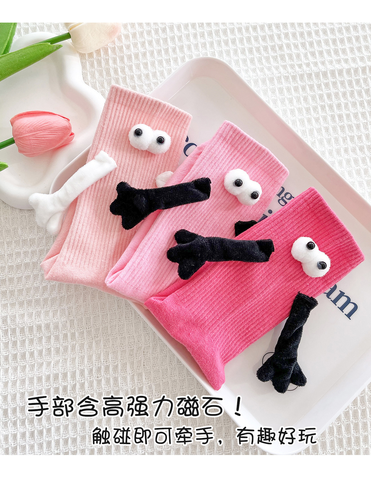 도파민 커플 마그네틱 보유 손 양말 가을 핑크 중간 스타킹 스포츠 겉옷 귀여운 흰색 스택