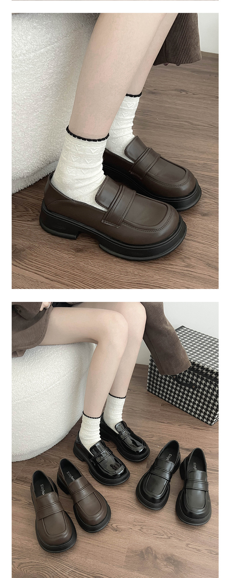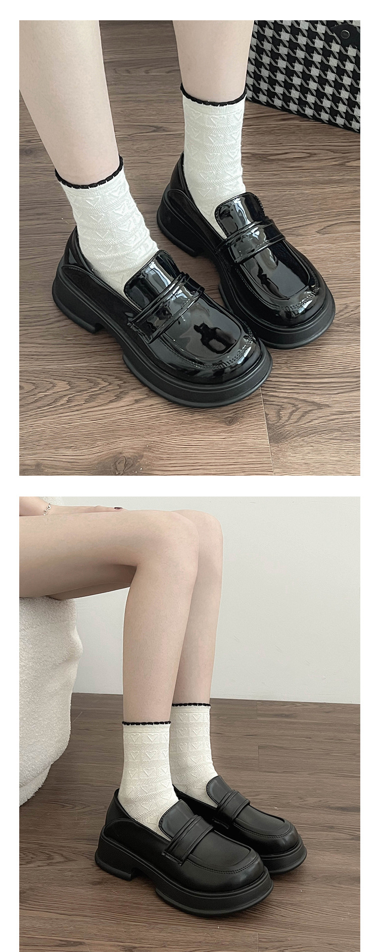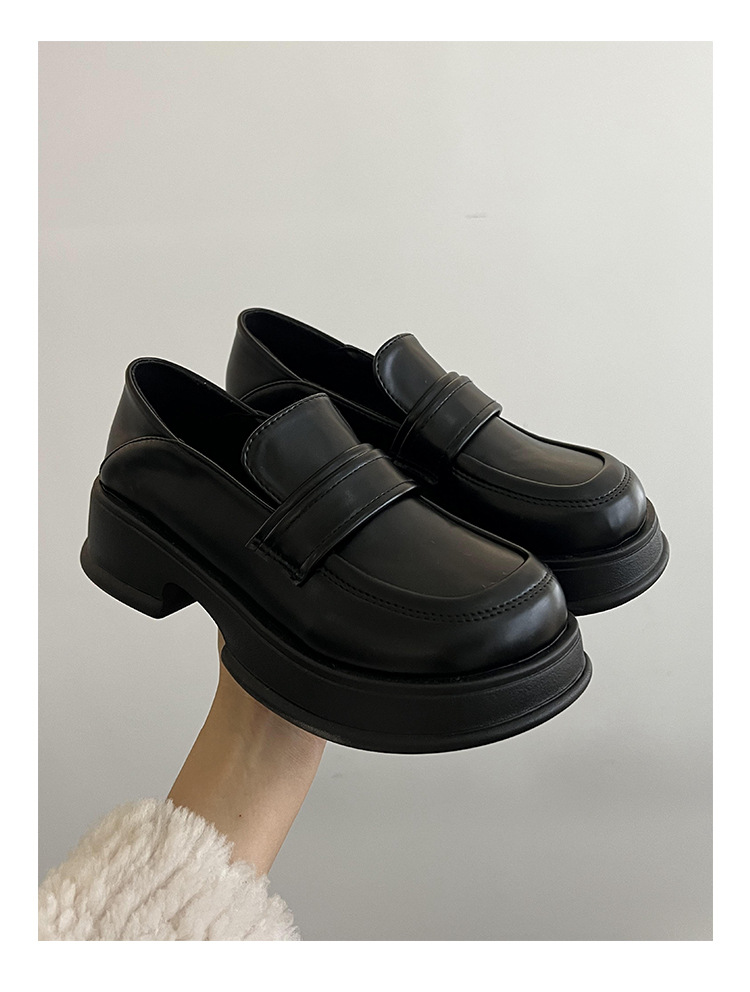 블랙 프렌치 플랫폼 로퍼 여성용 2023 신상품 가을 모든 매치 라운드 발가락 신발 복고풍 영국 스타일 작은 가죽 신발스토어 가기