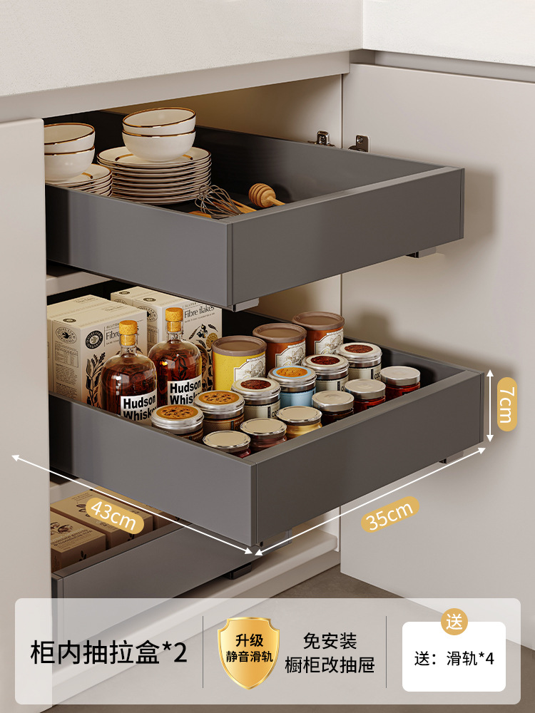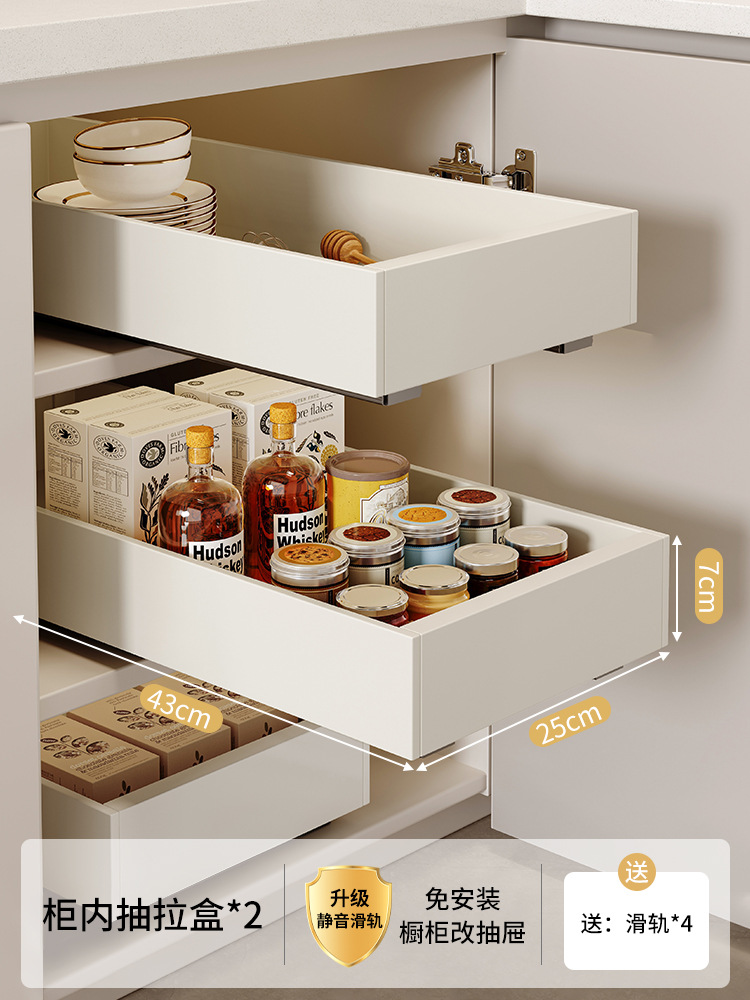 厨房橱柜内抽屉置物架下水槽抽拉式收纳拉篮多层调料碗碟盘储物盒