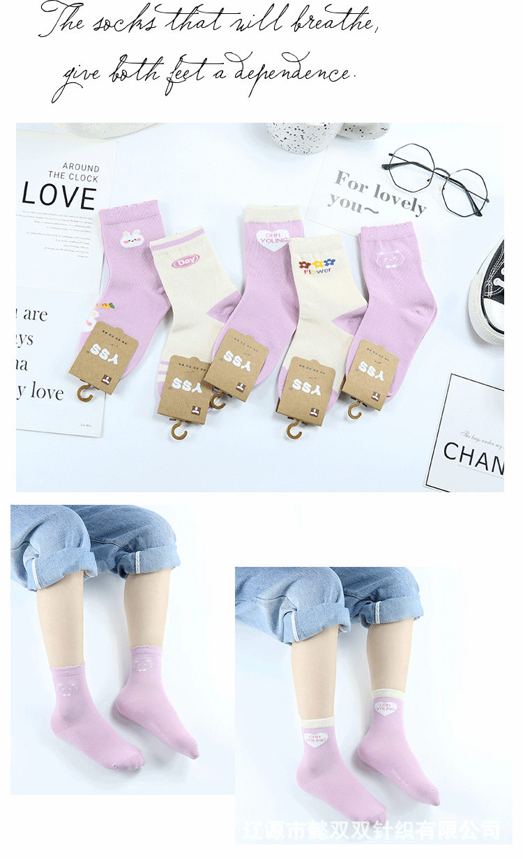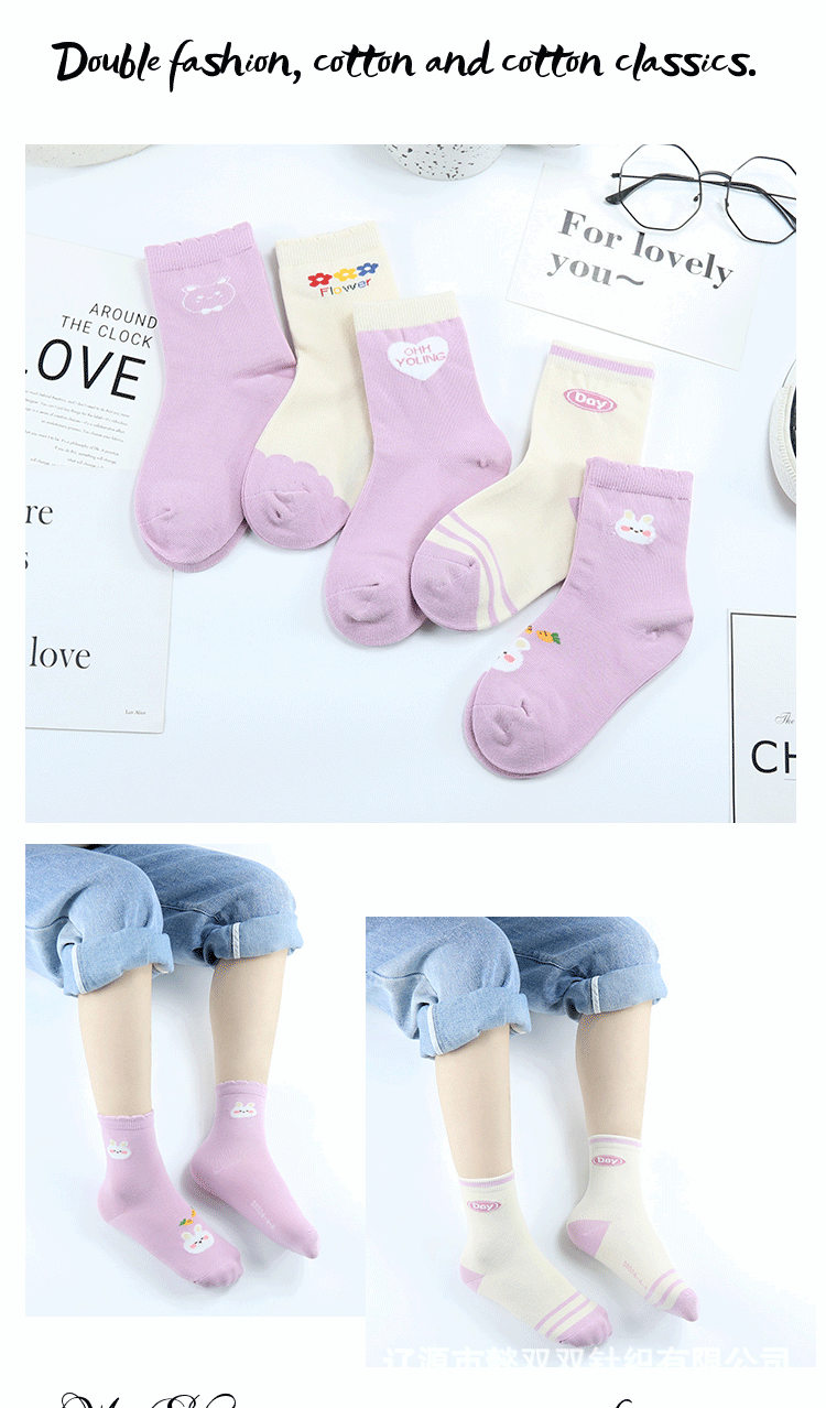 이순신 쌍 어린이 양말 가을과 겨울 새로운 두꺼운 만화 토끼 중간 길이 양말 빗질면 한국 스타일 소녀 학생 양말스토어 가기