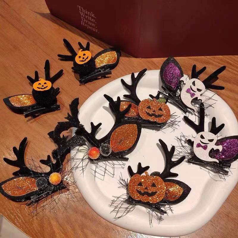 할로윈 유령 축제 머리핀 활 머리핀 무대 공연 야간 박쥐 거미 호박 모자 여성용 머리 장식
