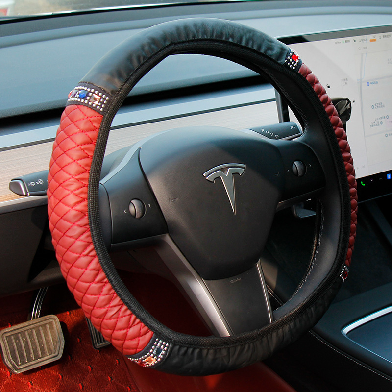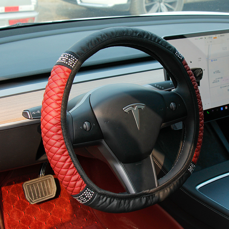 공장 도매 자동차 핸들 커버 PU 패션 다이아몬드 포 시즌 일반 크로스 보더 자동차 핸들 커버 모조 양모 패턴