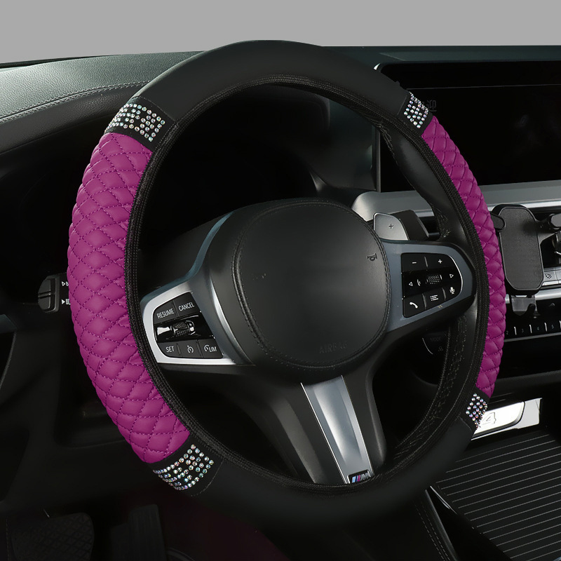 공장 도매 자동차 핸들 커버 PU 패션 다이아몬드 포 시즌 일반 크로스 보더 자동차 핸들 커버 모조 양모 패턴스토어 가기