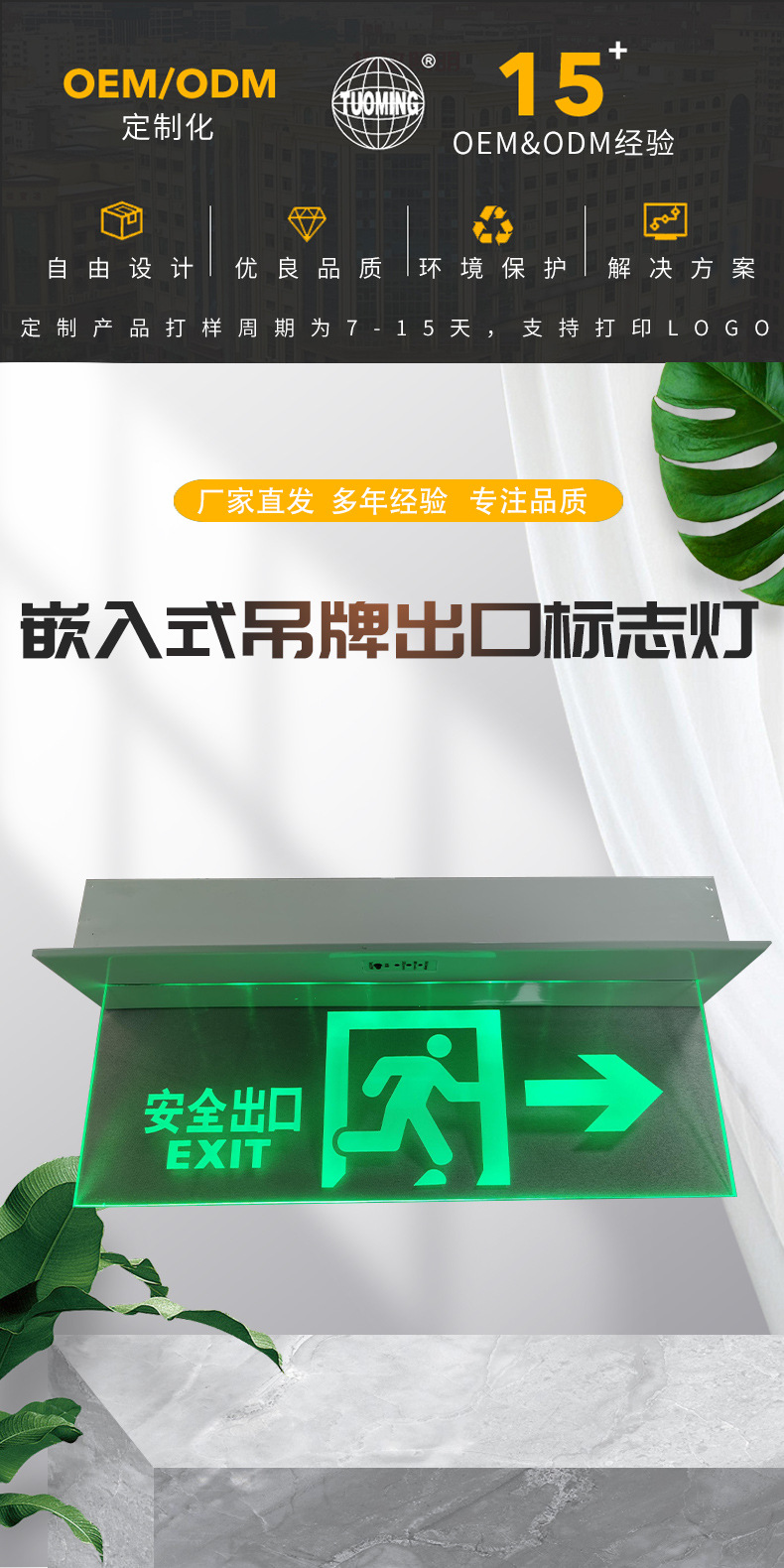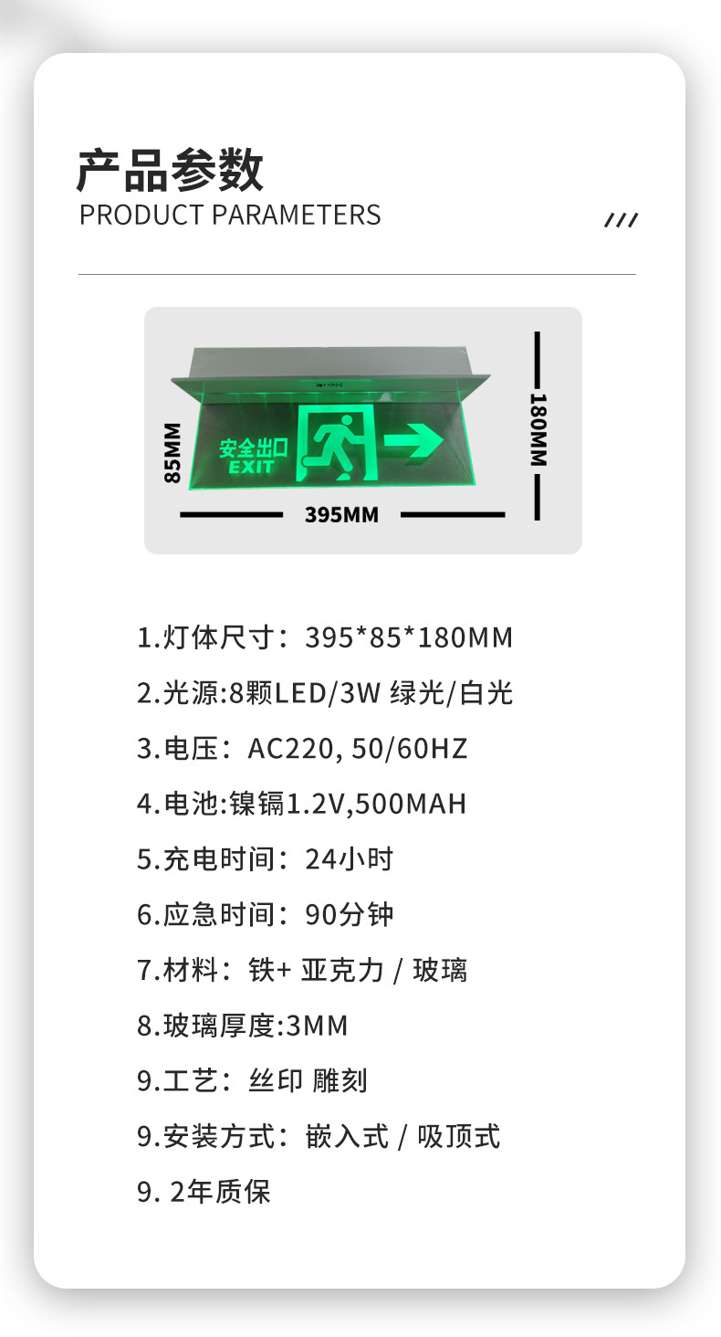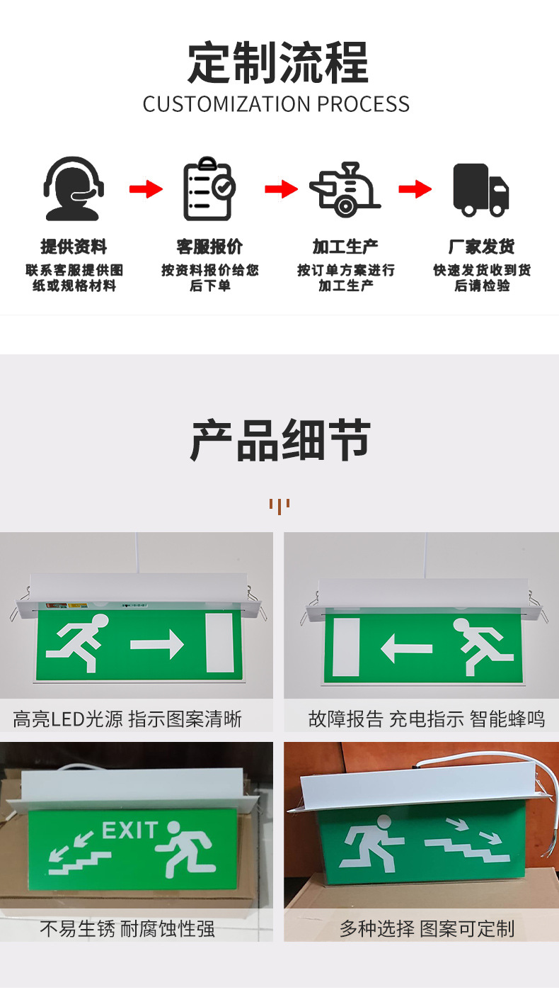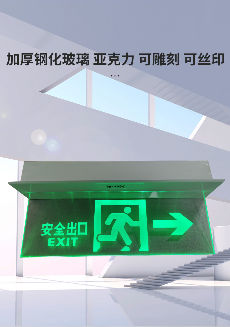 안전출구 아크릴 매립형 비상탈출 표시등 LED 비상 표지판 천장 투명 태그 비상용