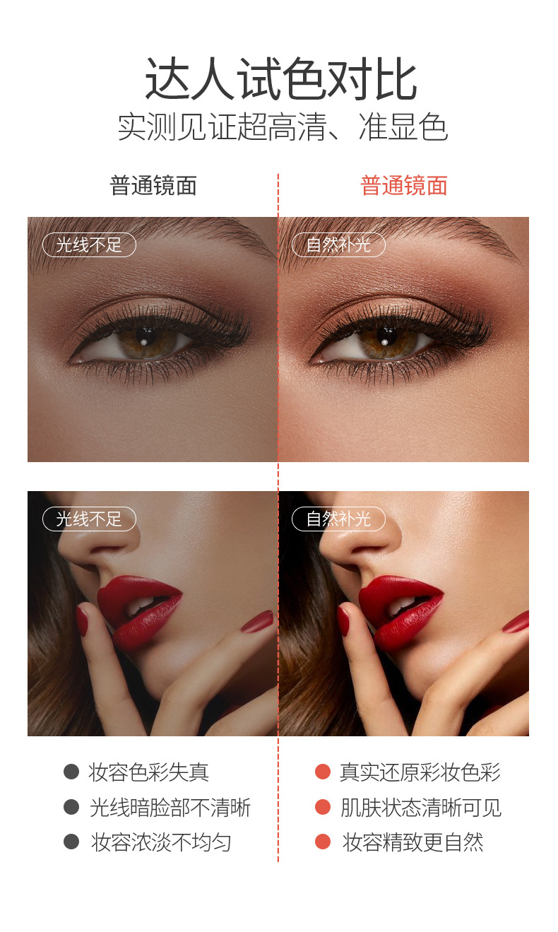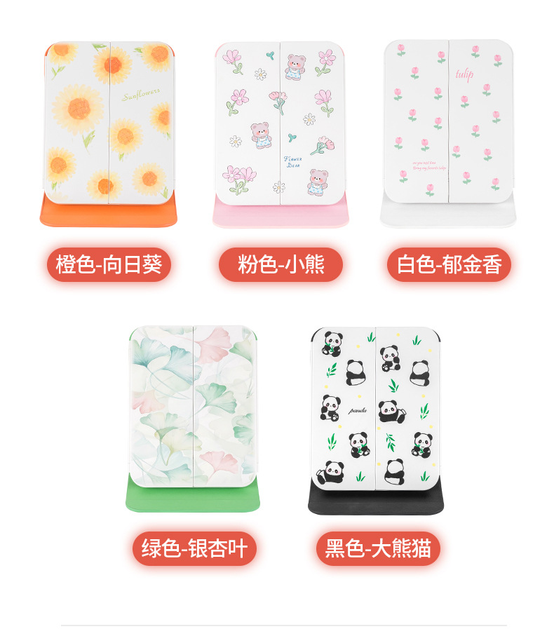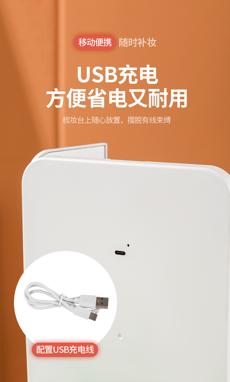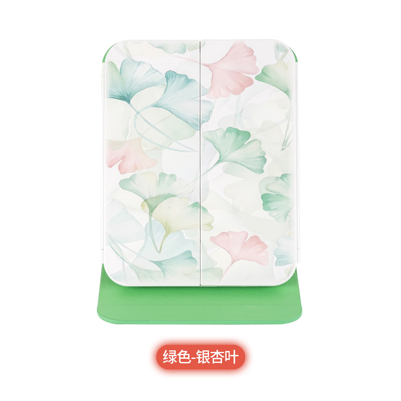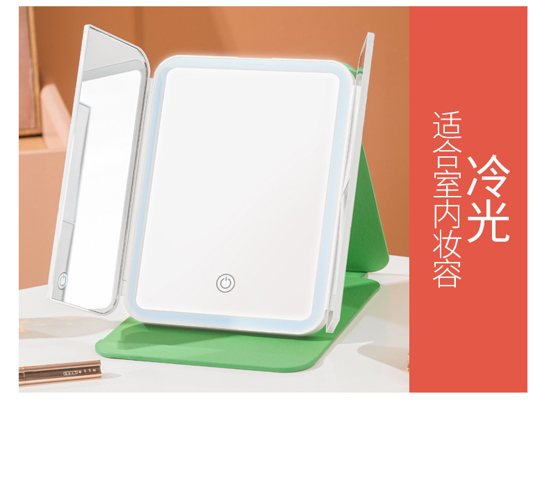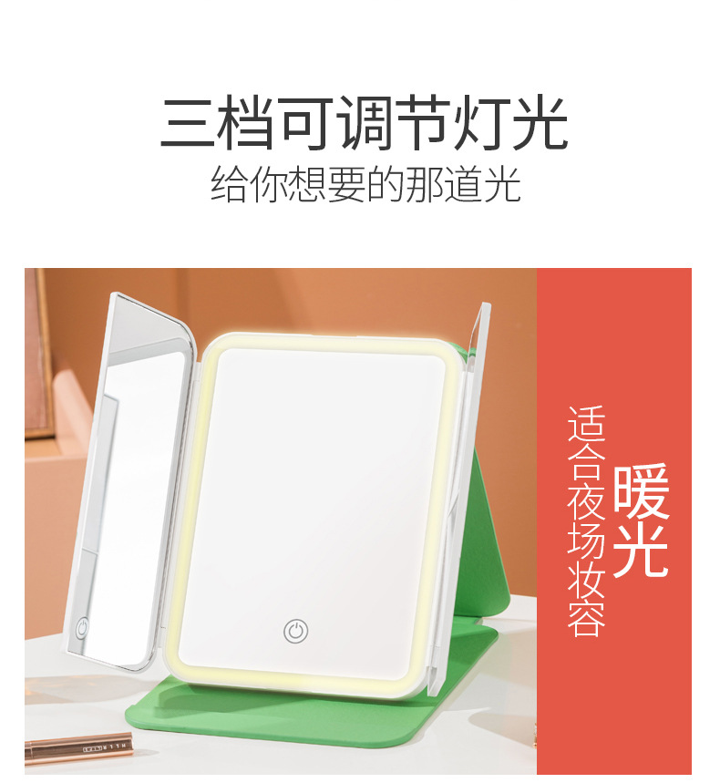 램프 3 중 쉘 미러 드레싱 충전 데스크탑 휴대용 보관 가죽 더블 도어 접이식 거울 led 메이크업 미러