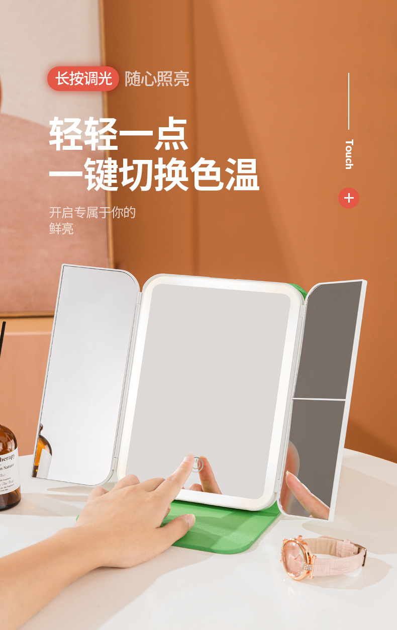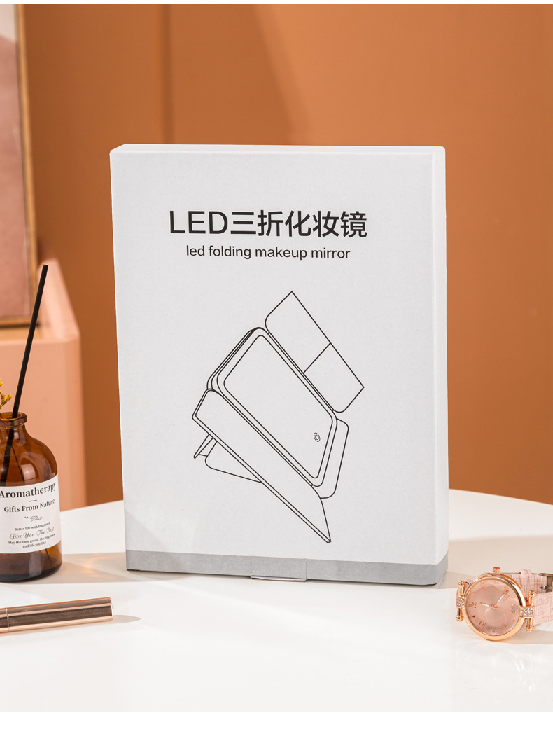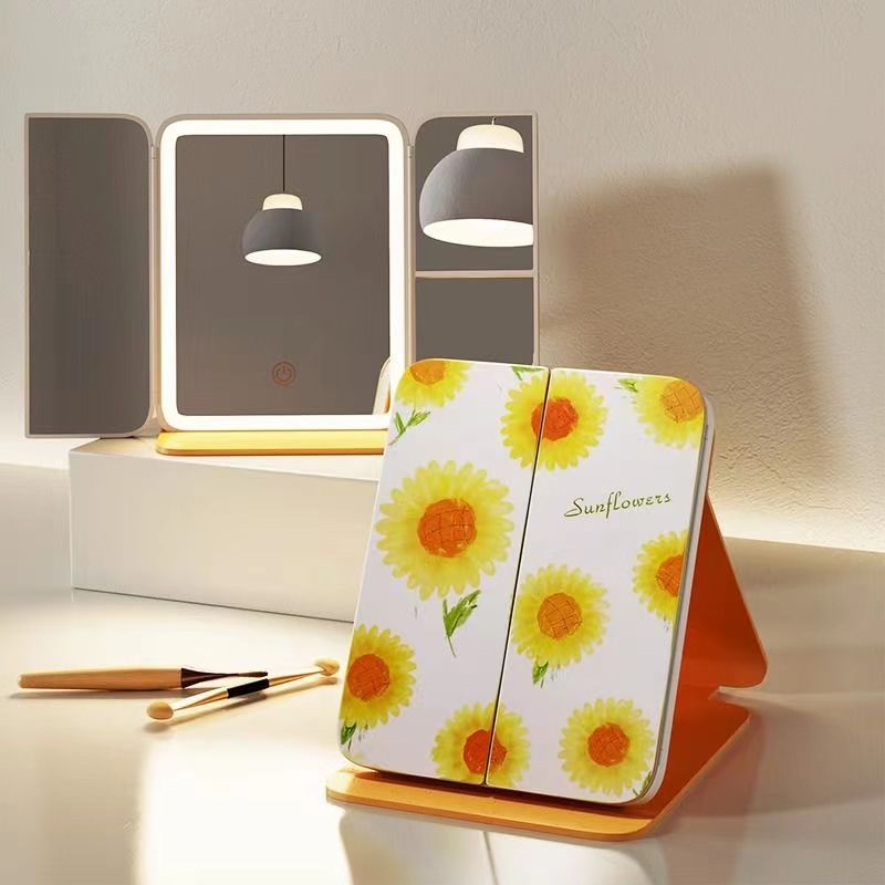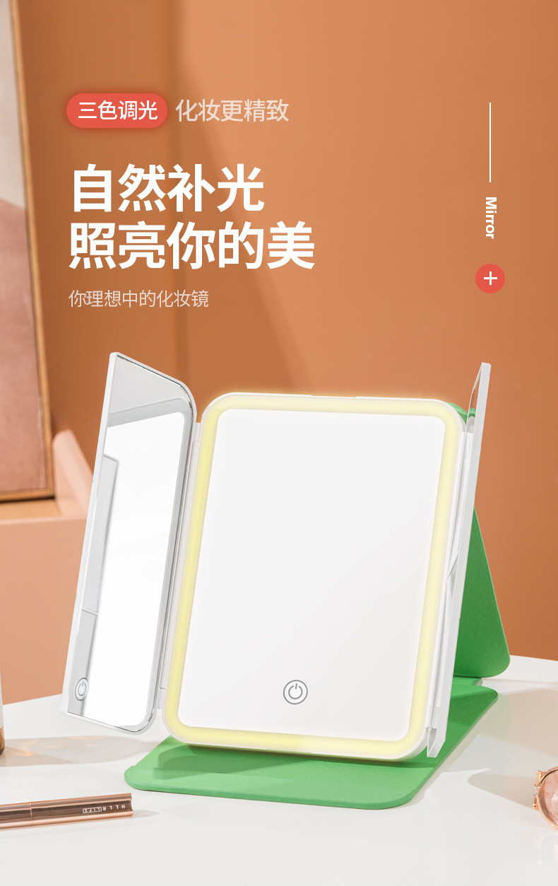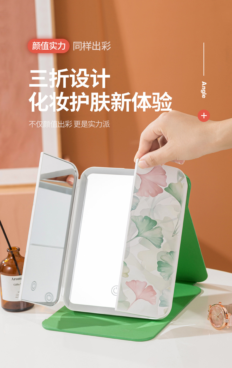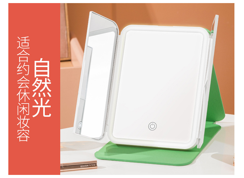 램프 3 중 쉘 미러 드레싱 충전 데스크탑 휴대용 보관 가죽 더블 도어 접이식 거울 led 메이크업 미러스토어 가기