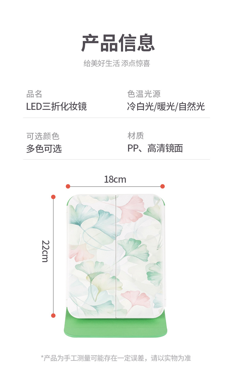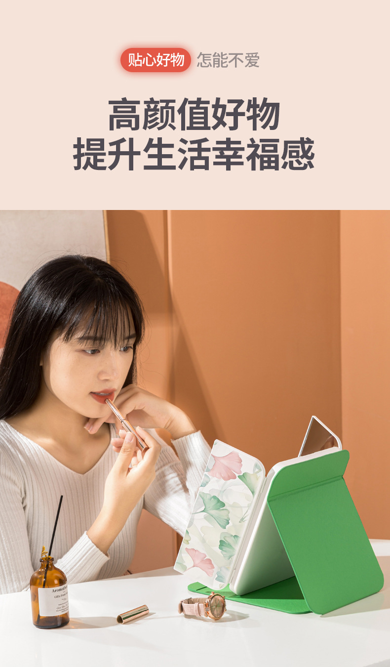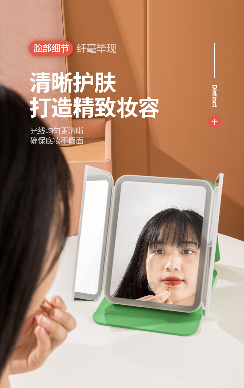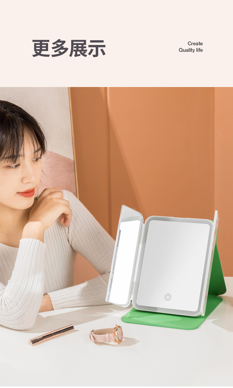 램프 3 중 쉘 미러 드레싱 충전 데스크탑 휴대용 보관 가죽 더블 도어 접이식 거울 led 메이크업 미러스토어 가기