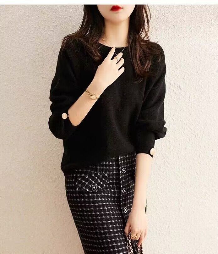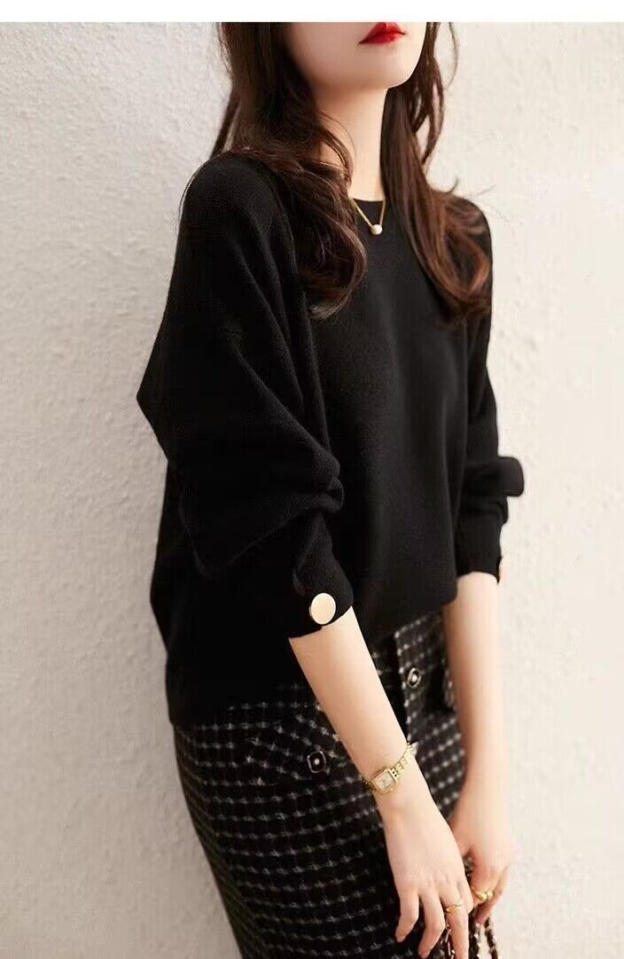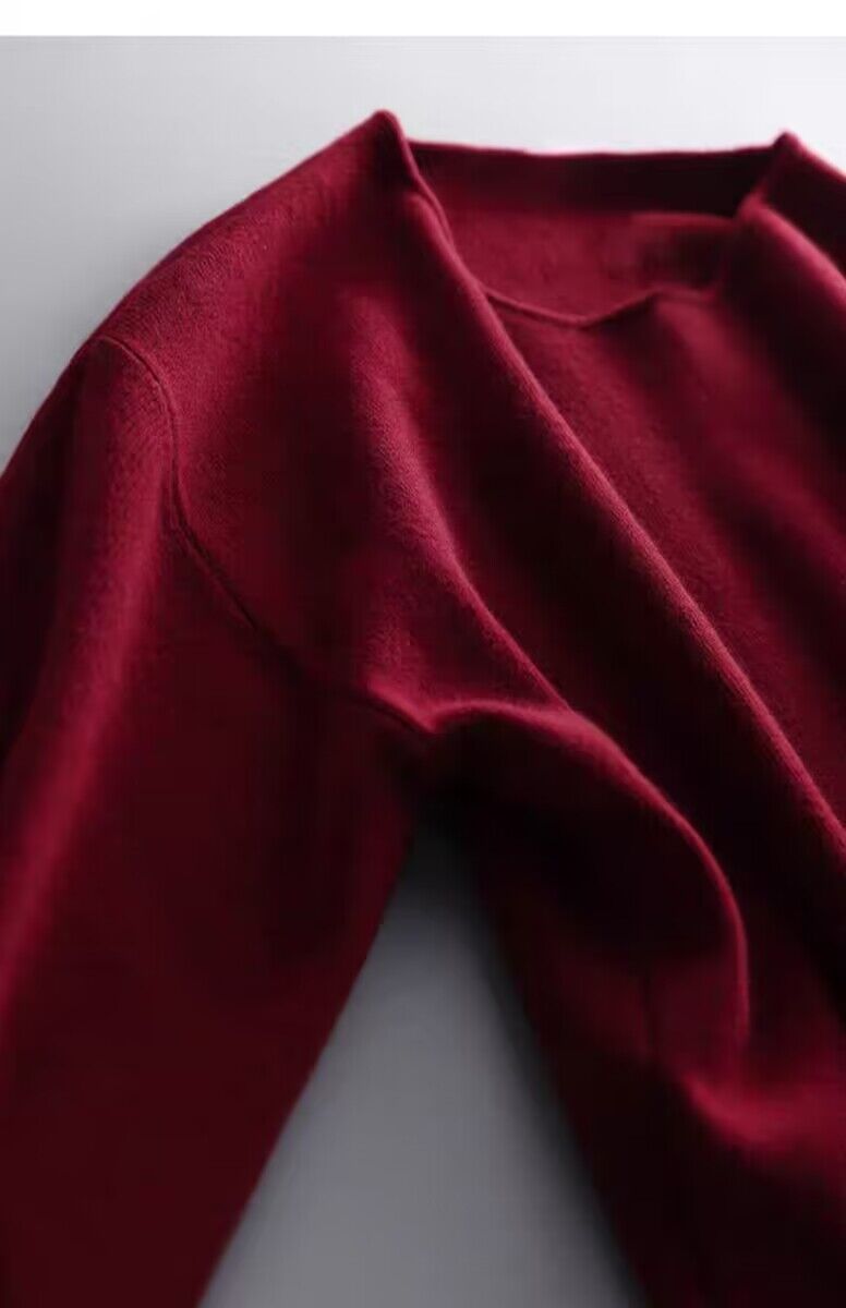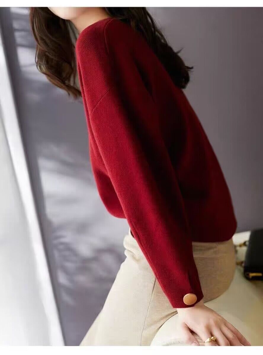 여자 2023 가을과 겨울 새로운 긴 소매 크루 넥 풀오버 올 매치 레드 니트 배트 모빌 탑 트렌디