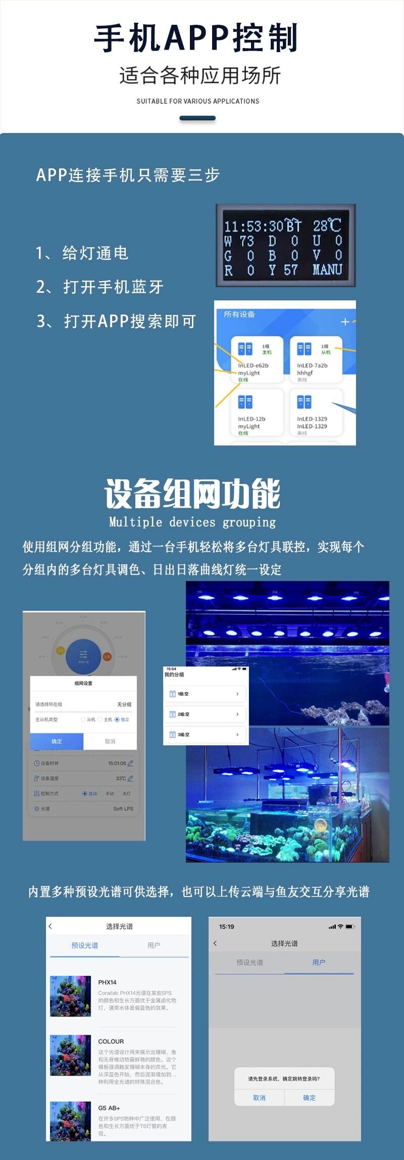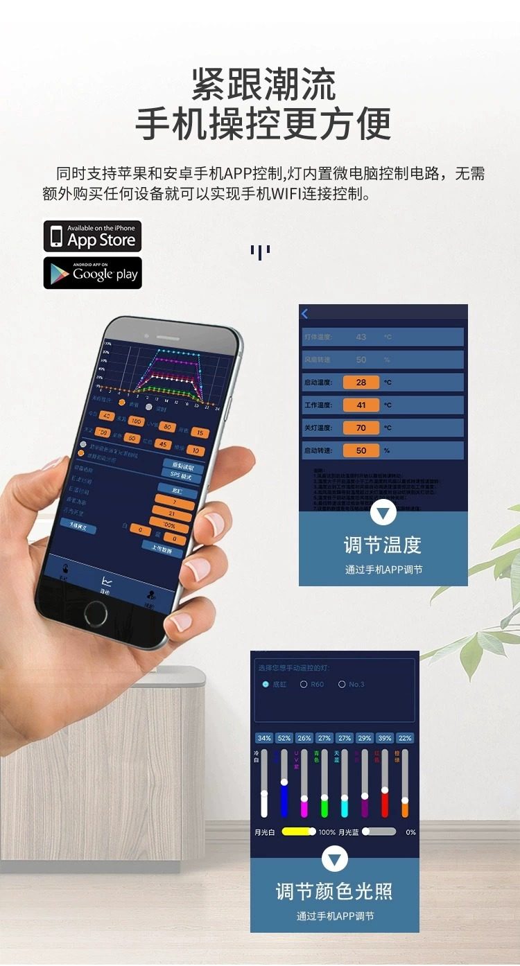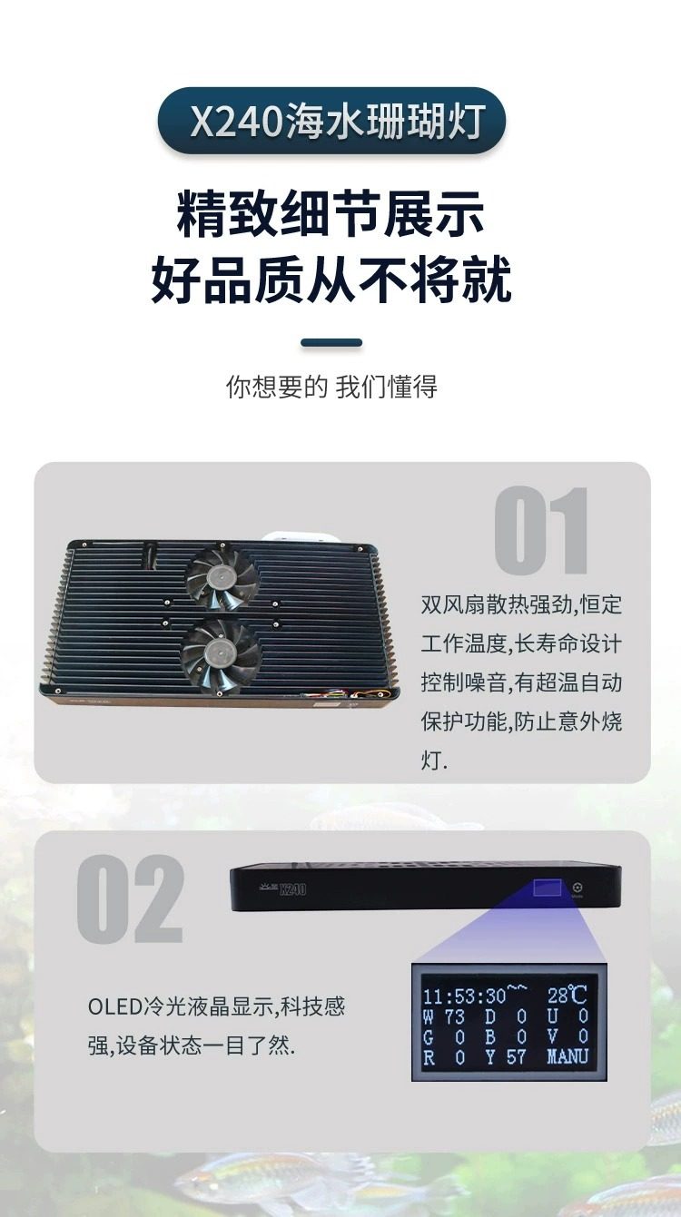 지능형 제어 해양 X120 X240 WIFI 산호 램프 지능형 제어 해양 탱크 LED 전체 스펙트럼 일출 및 일몰 산호 램프스토어 가기