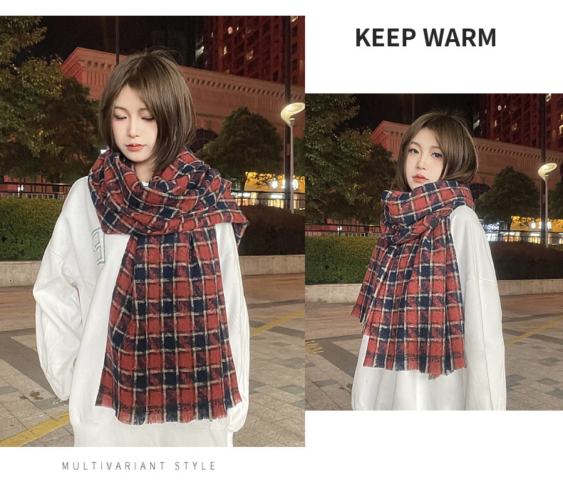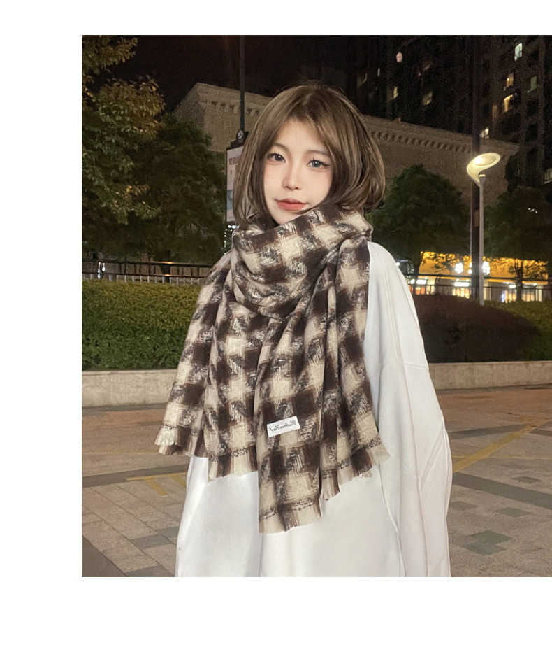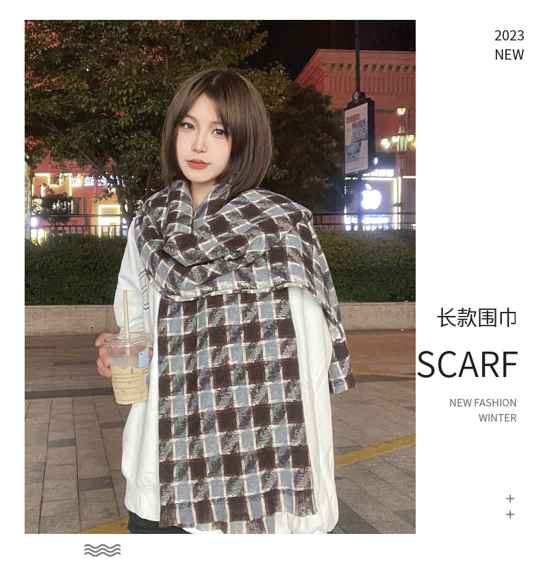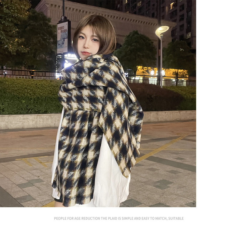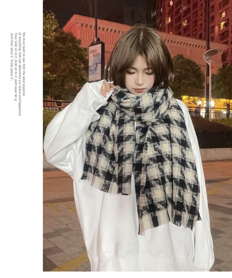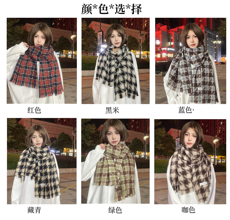 새로운 한국 스타일 대형 하운즈투스 짧은 수염 짠 캐시미어 스카프 겨울 따뜻한 두꺼운 격자 무늬 학생 스카프스토어 가기