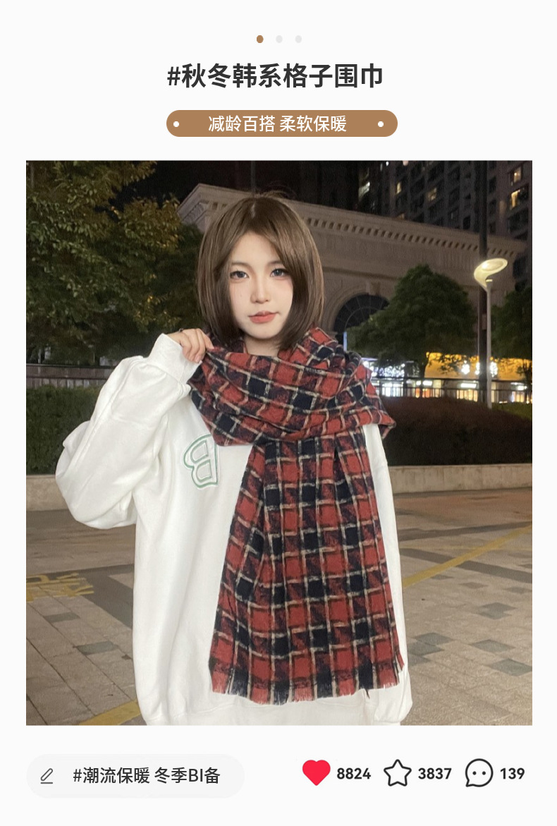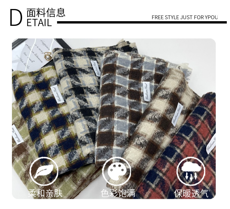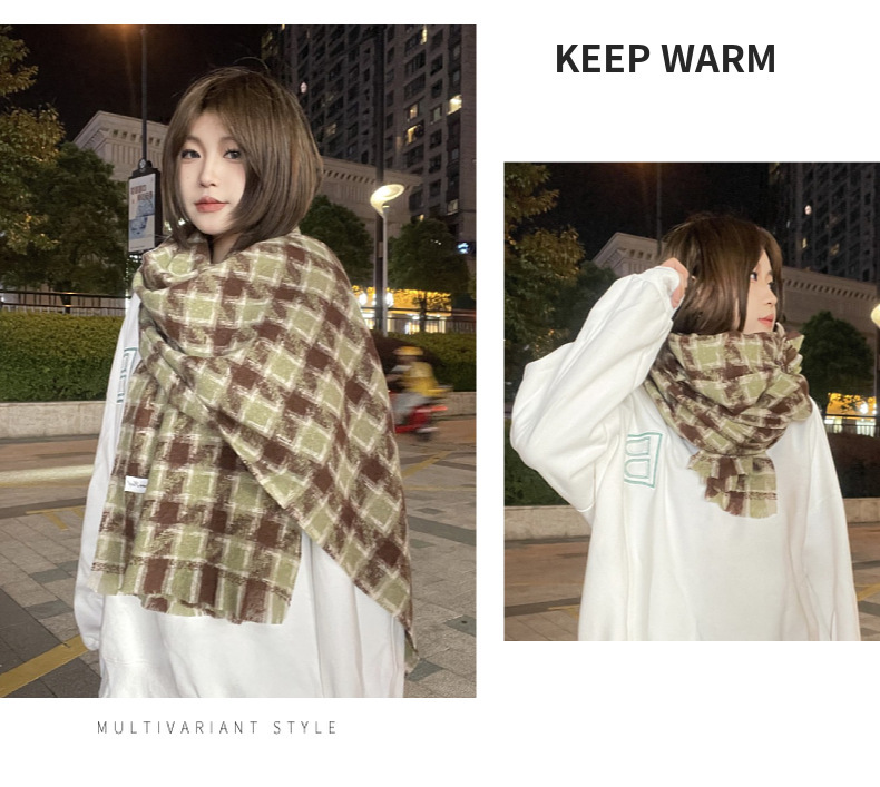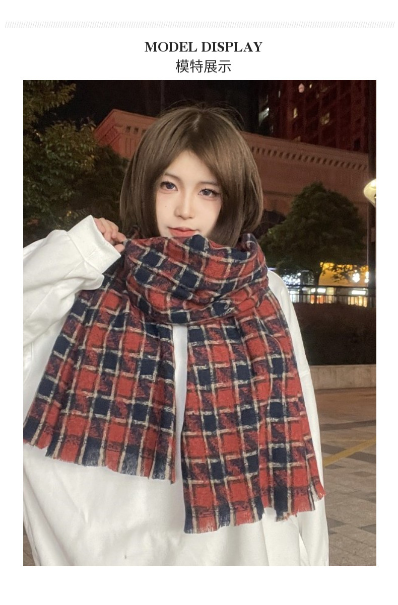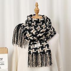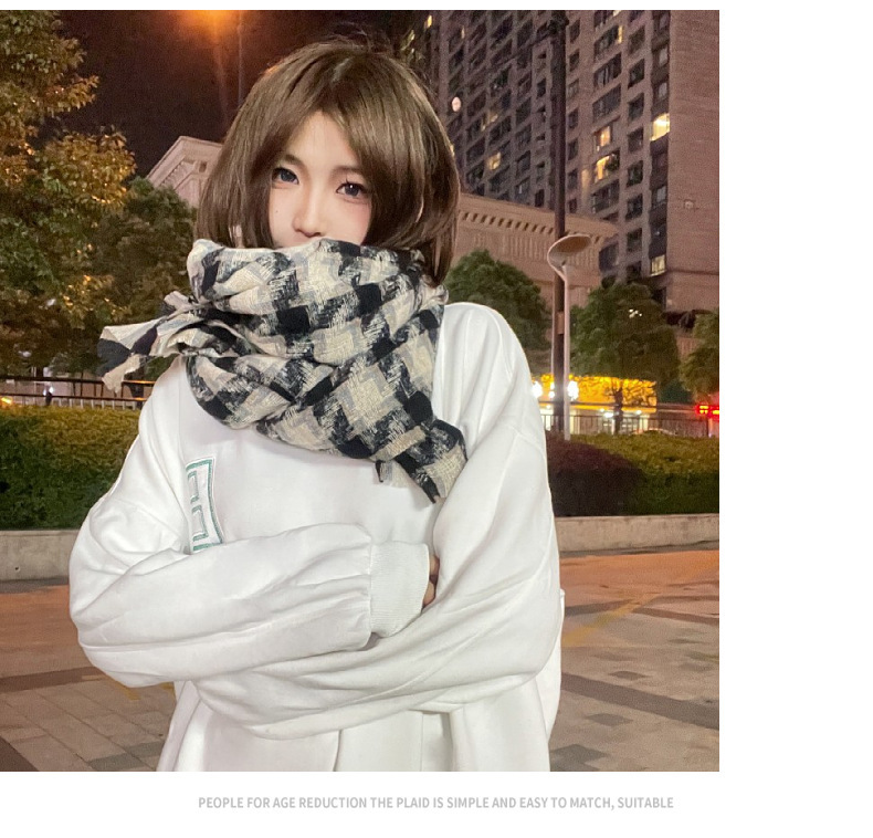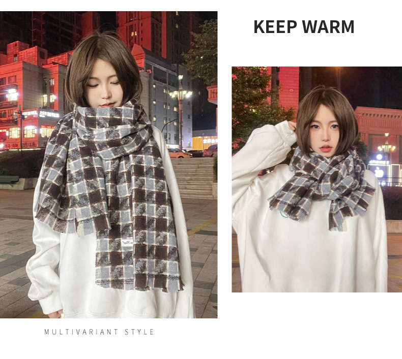 새로운 한국 스타일 대형 하운즈투스 짧은 수염 짠 캐시미어 스카프 겨울 따뜻한 두꺼운 격자 무늬 학생 스카프스토어 가기