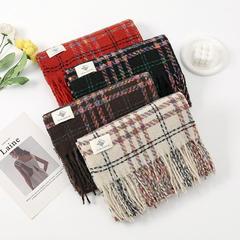 새로운 한국 스타일 대형 하운즈투스 짧은 수염 짠 캐시미어 스카프 겨울 따뜻한 두꺼운 격자 무늬 학생 스카프