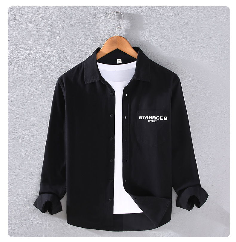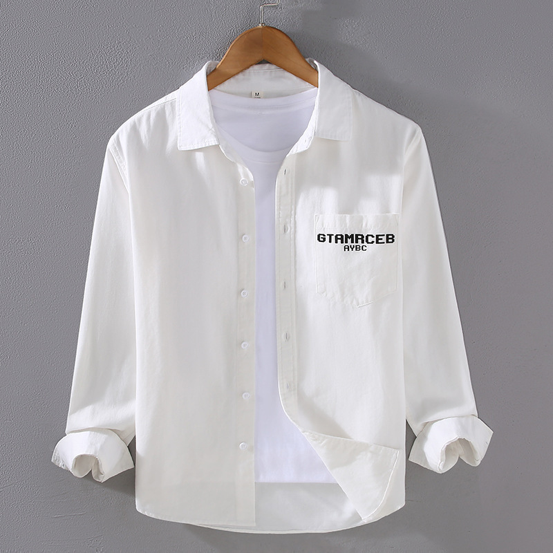 2308 라펠 긴팔 남성 셔츠 봄과 가을 고급 캐주얼 셔츠 루즈한 모든 매치 재킷 남성복