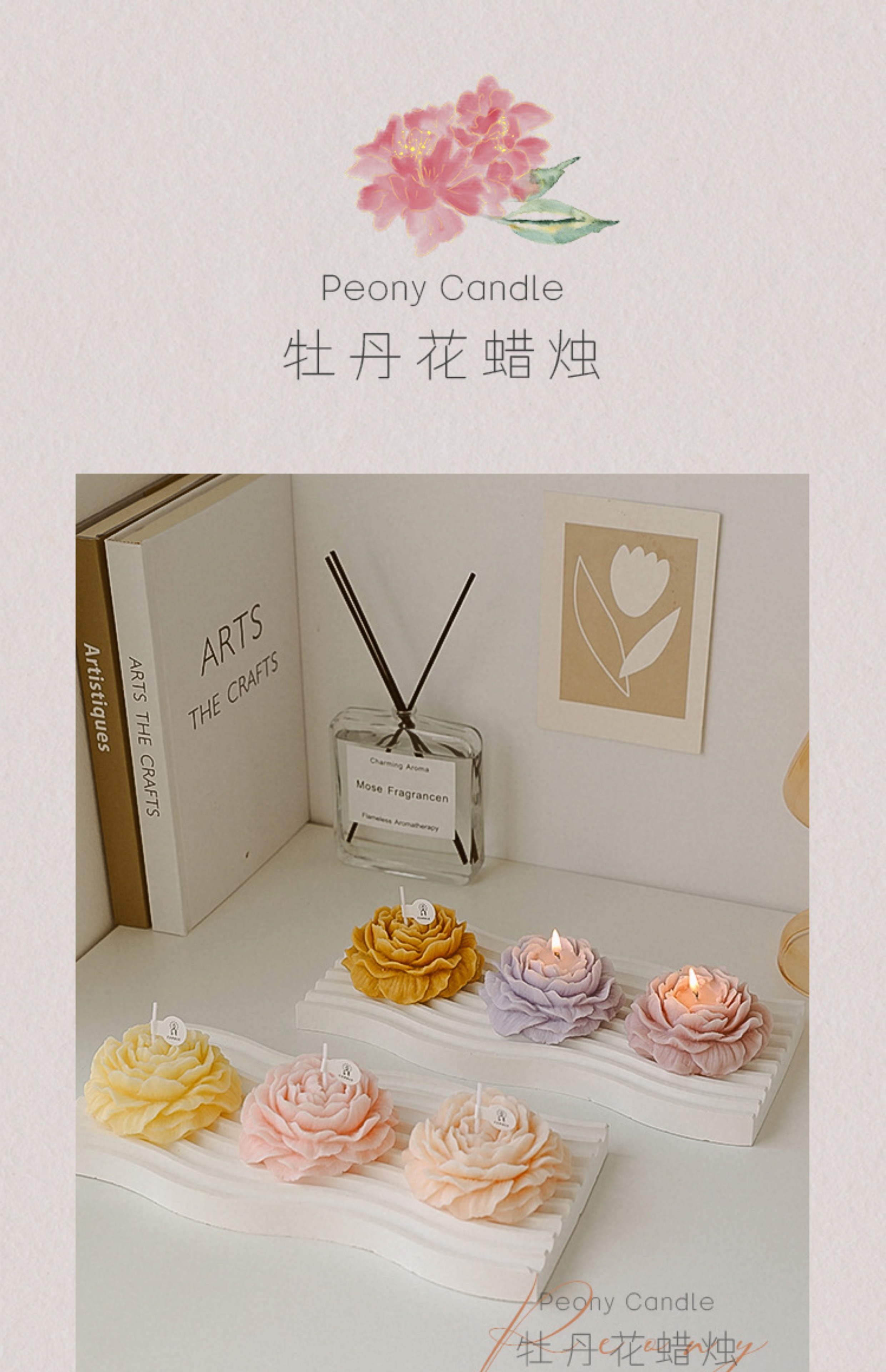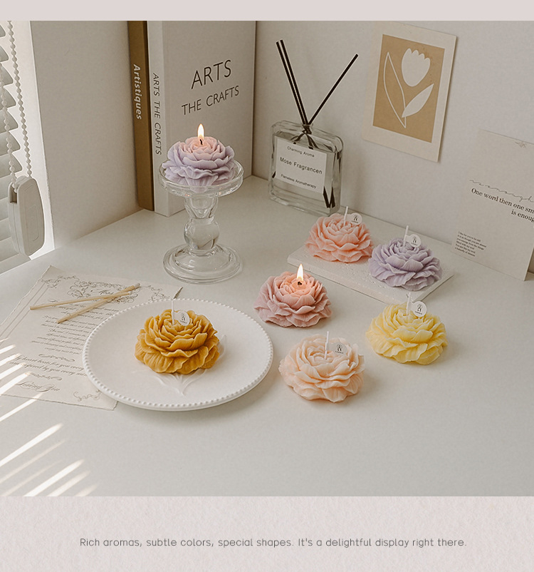 아로마 테라피 양초 DIY 손 선물 상자 모란 꽃 모양 생일 소녀 귀여운 발렌타인 데이 선물 로맨틱