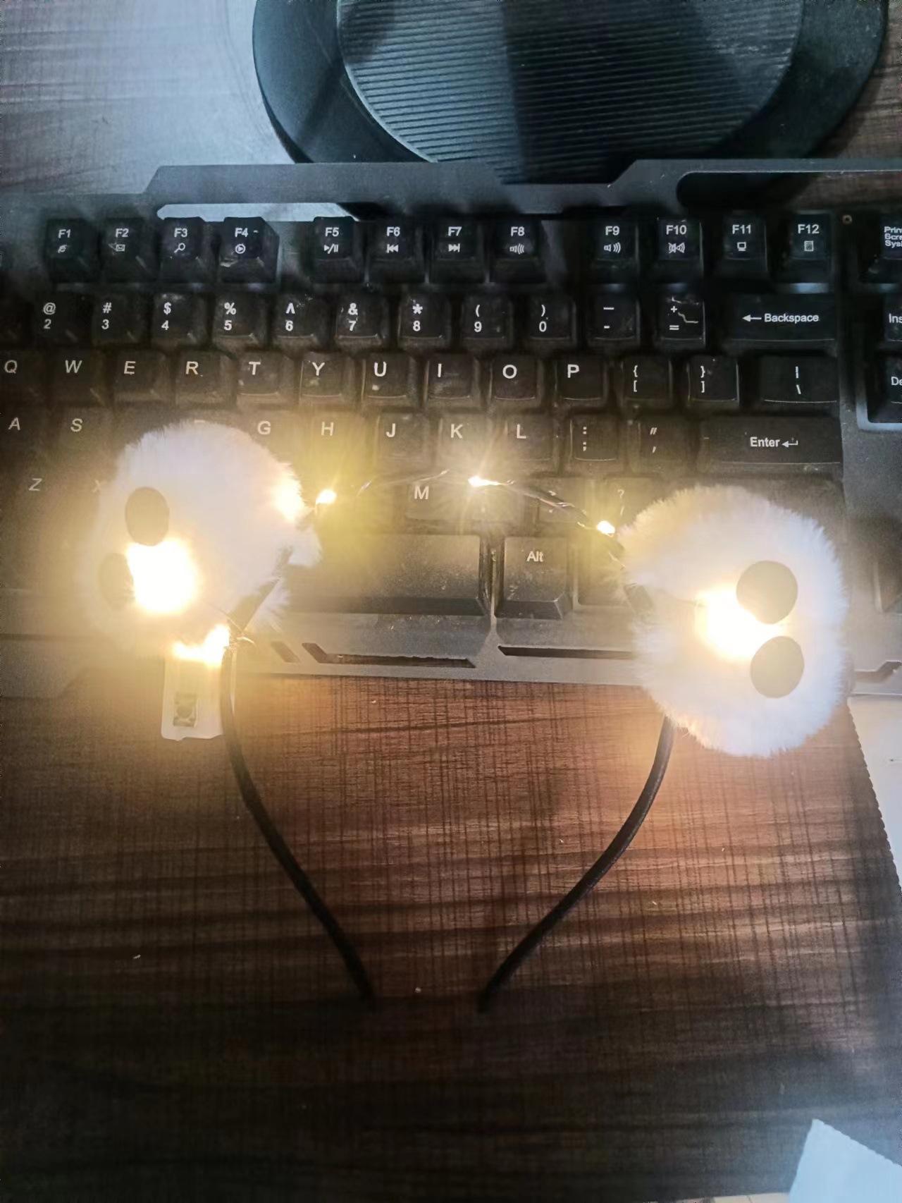 • 폭발 발광 팬더 헤어 밴드 (화이트) 따뜻한 빛
