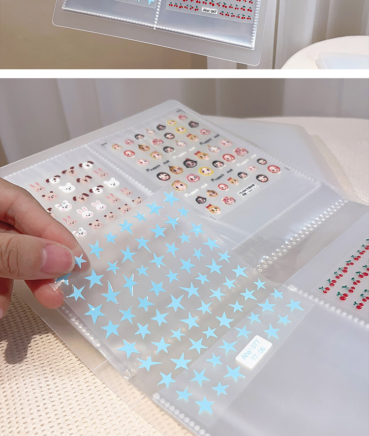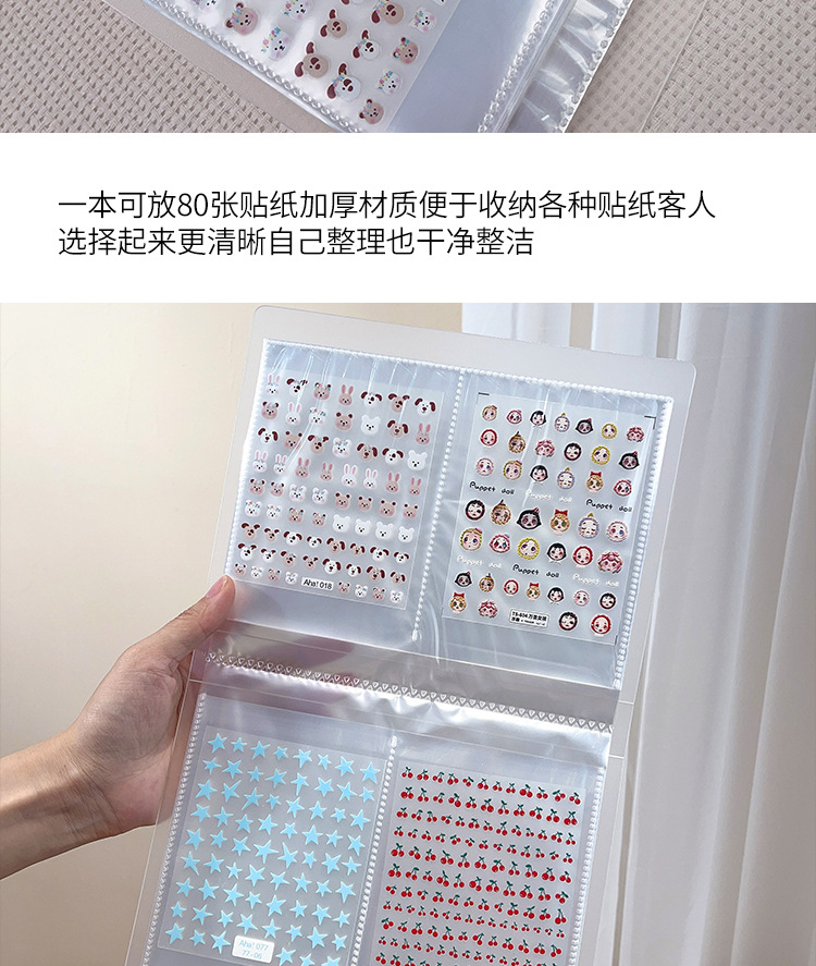 네일 아트 스티커 보관 책 방진 투명 일본 고급 젖빛 흰색 릴리프 스티커 전시 책 도구 도매스토어 가기