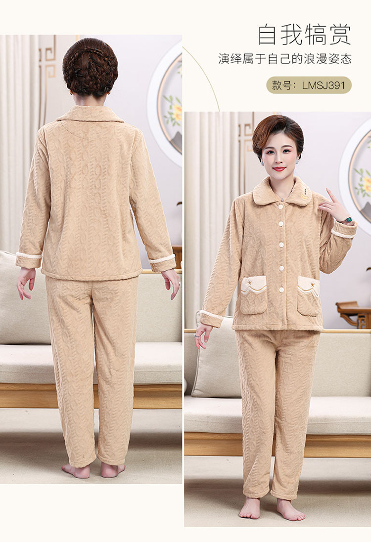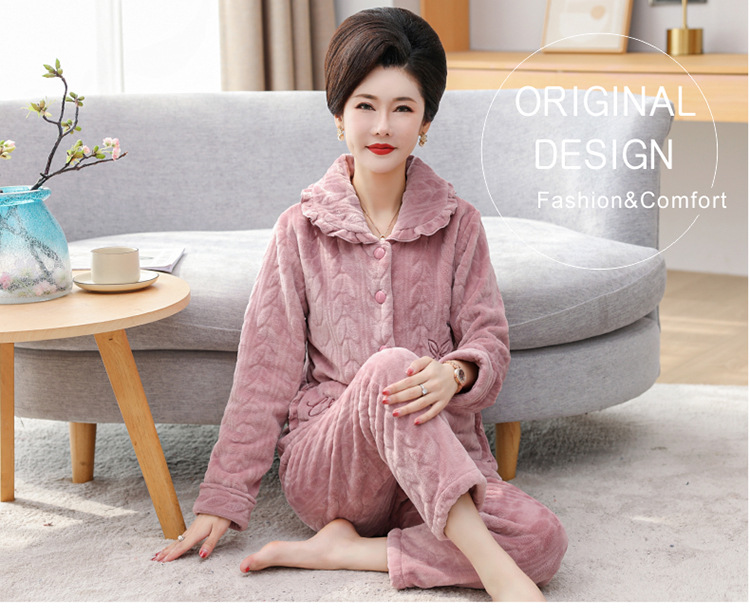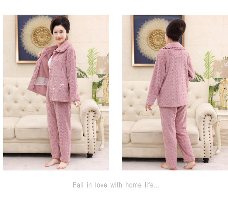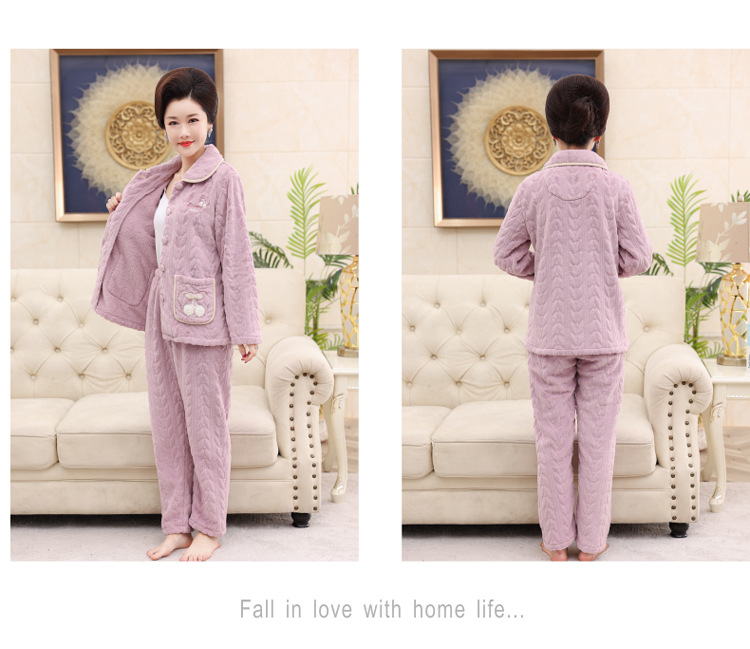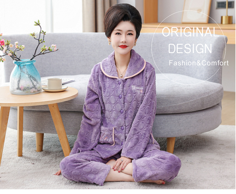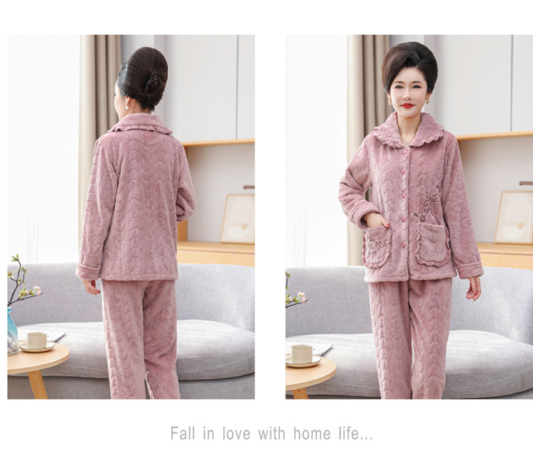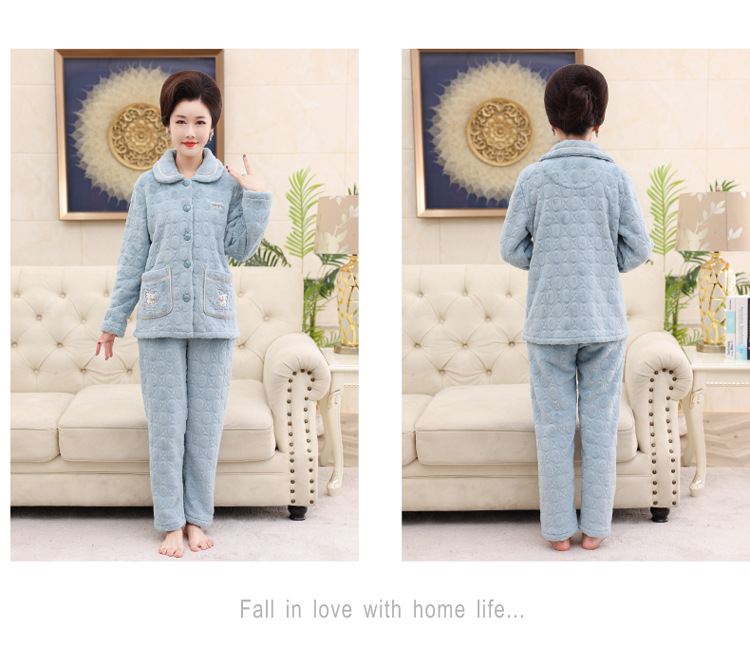 겨울 패딩 중년 및 노인 숙녀 플란넬 잠옷 수 놓은 산호 양털 플러스 사이즈 노인 가정 옷의 세대스토어 가기