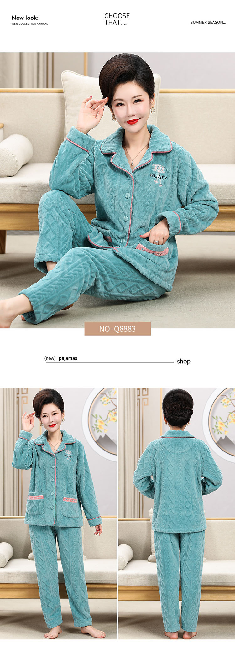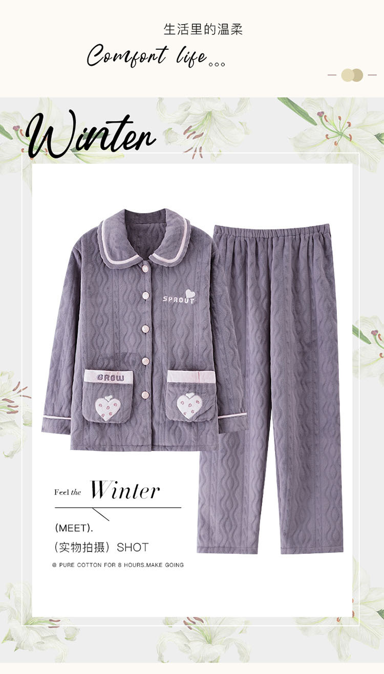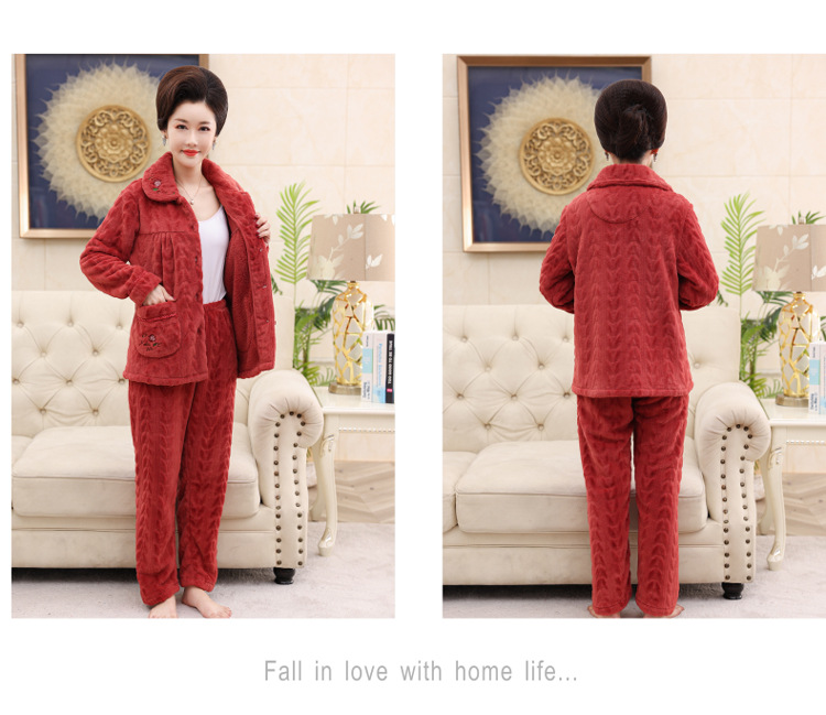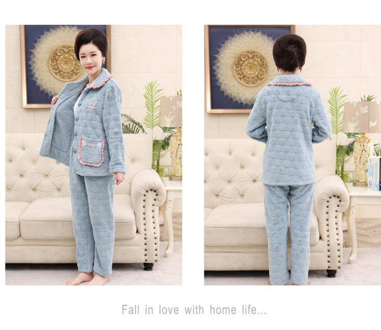 겨울 패딩 중년 및 노인 숙녀 플란넬 잠옷 수 놓은 산호 양털 플러스 사이즈 노인 가정 옷의 세대스토어 가기