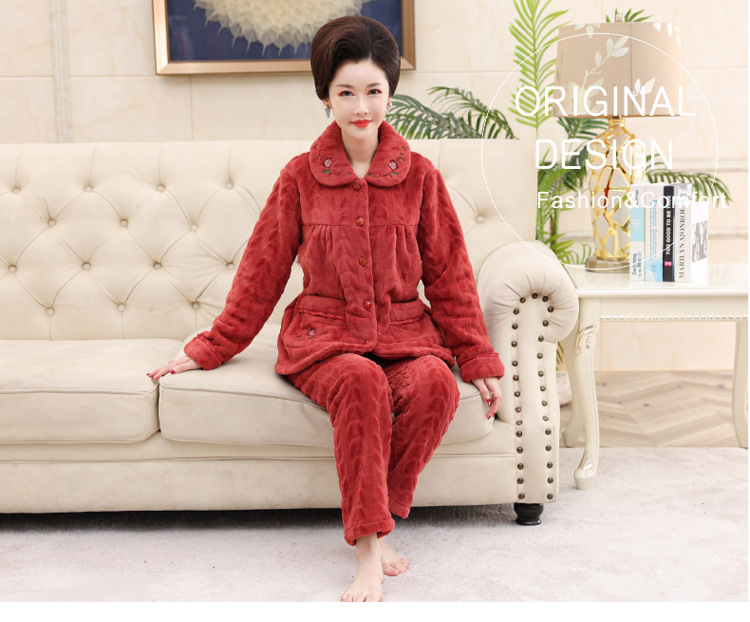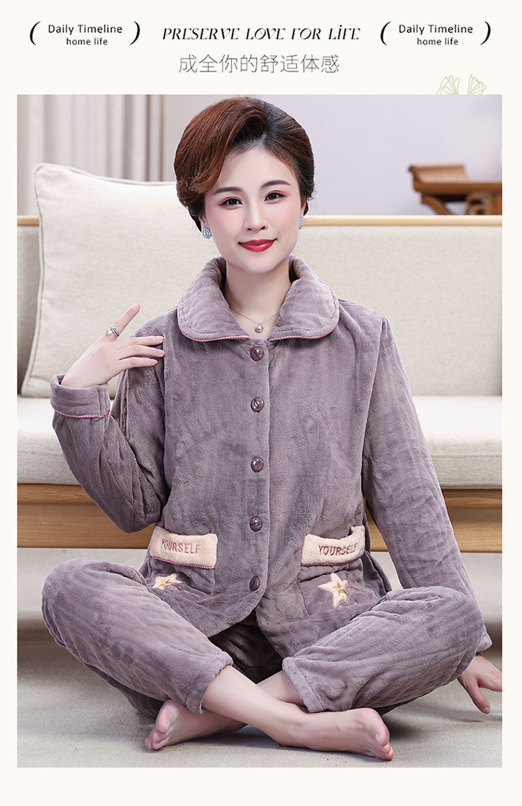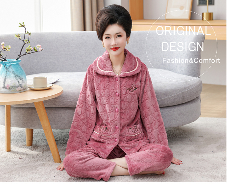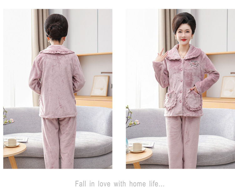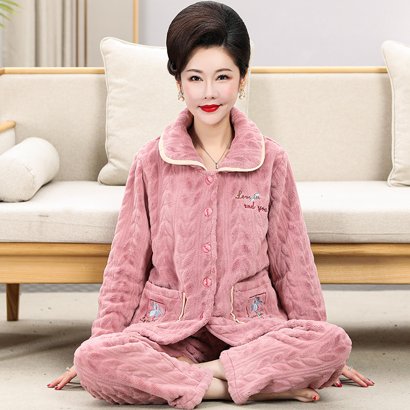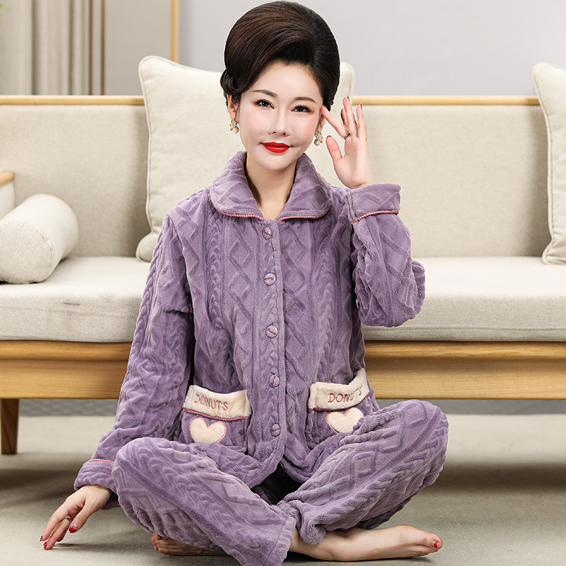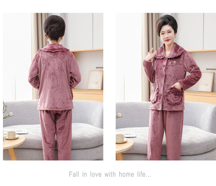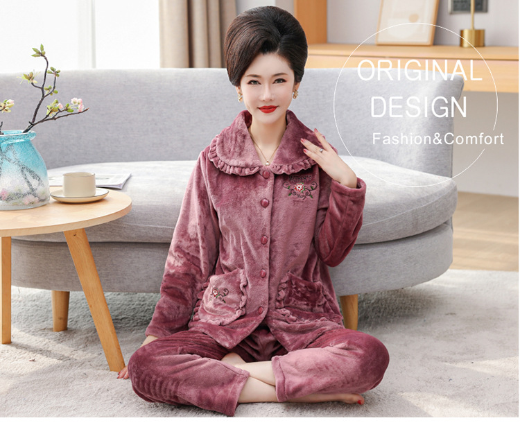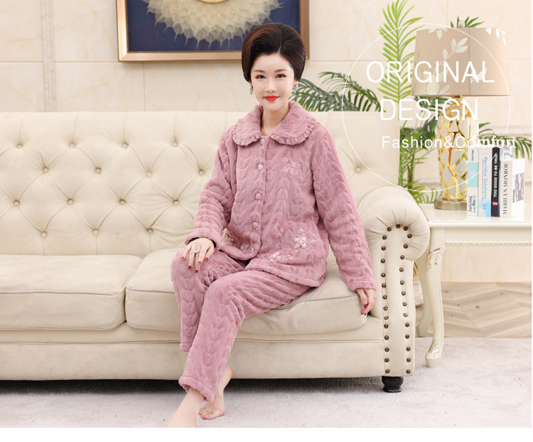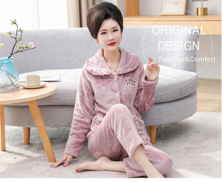 겨울 패딩 중년 및 노인 숙녀 플란넬 잠옷 수 놓은 산호 양털 플러스 사이즈 노인 가정 옷의 세대