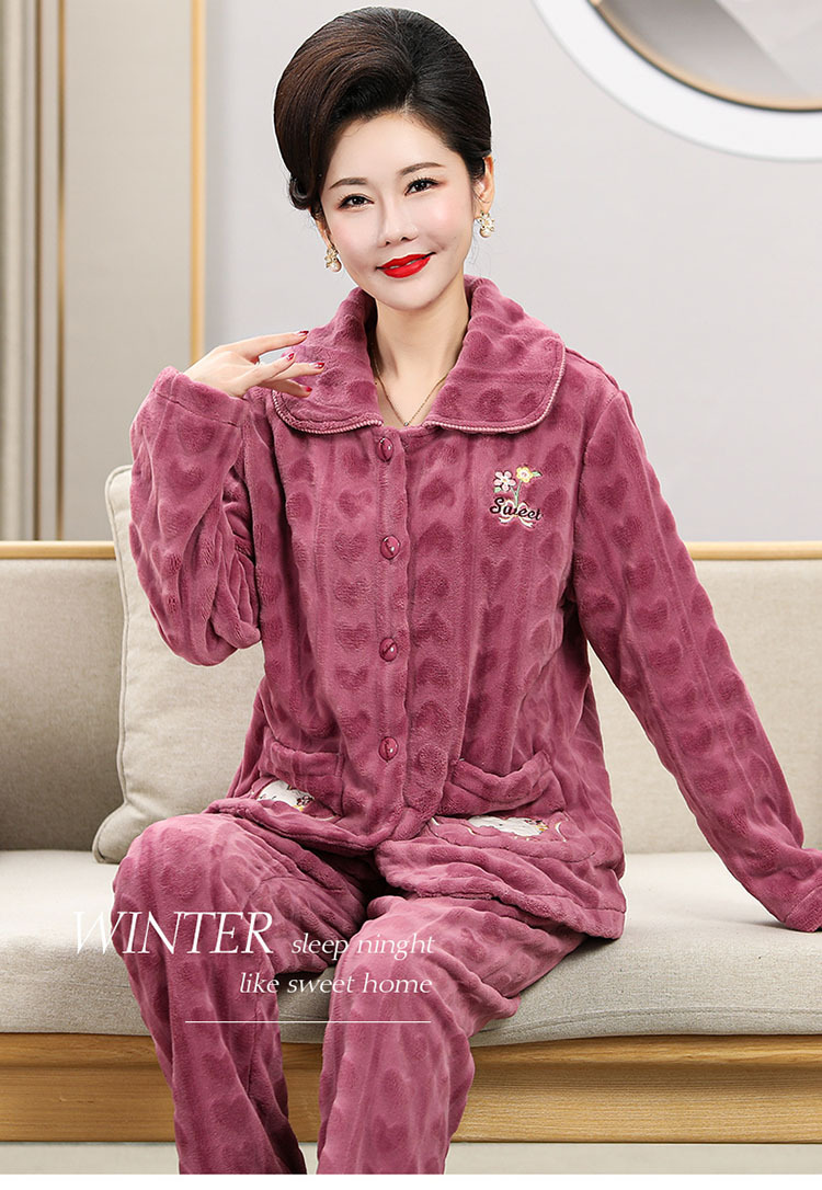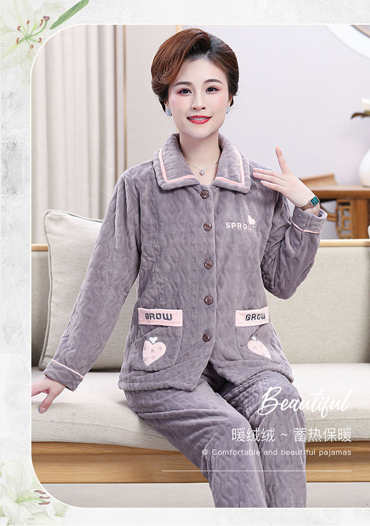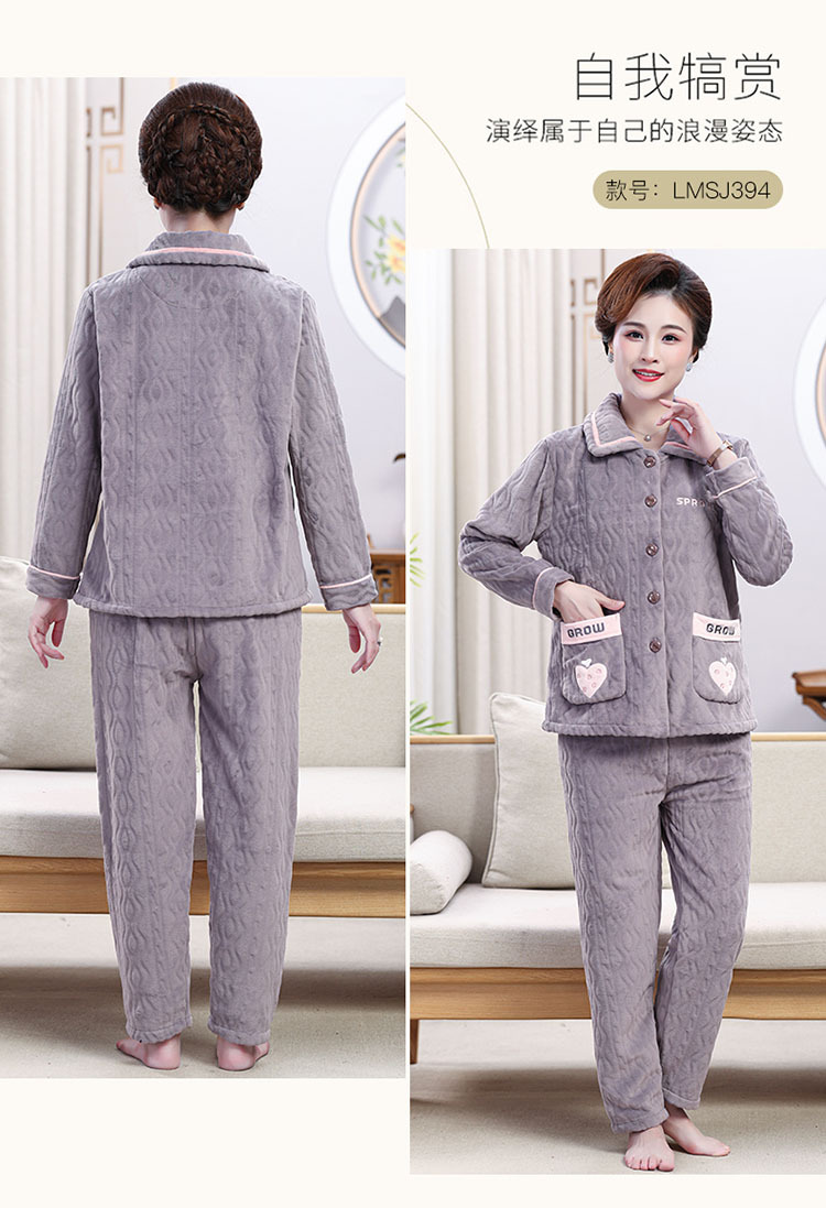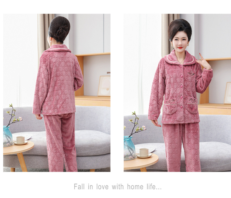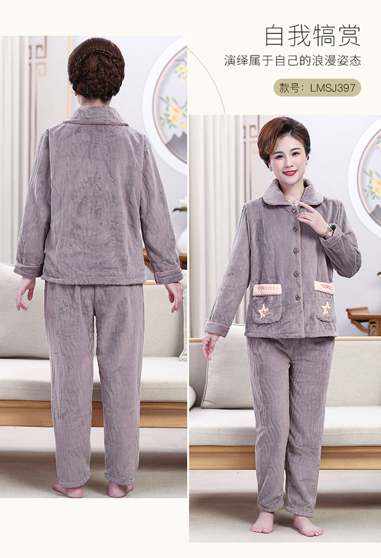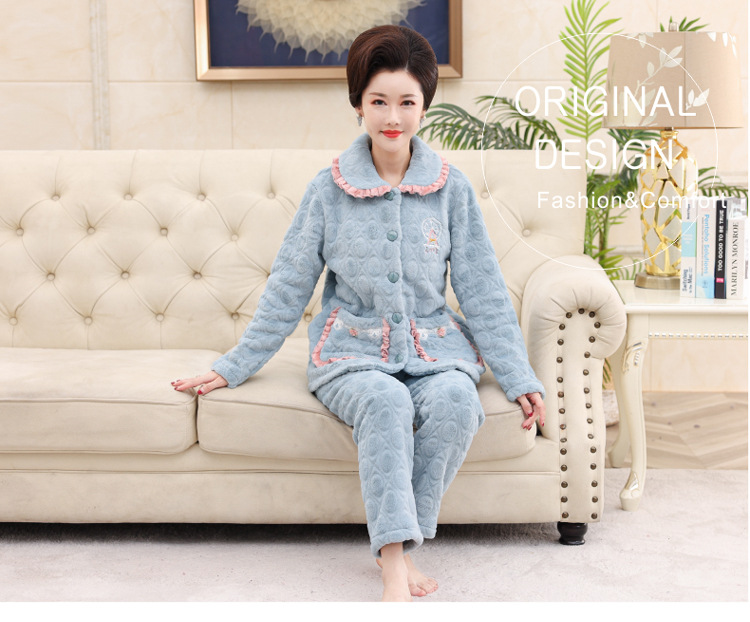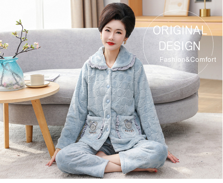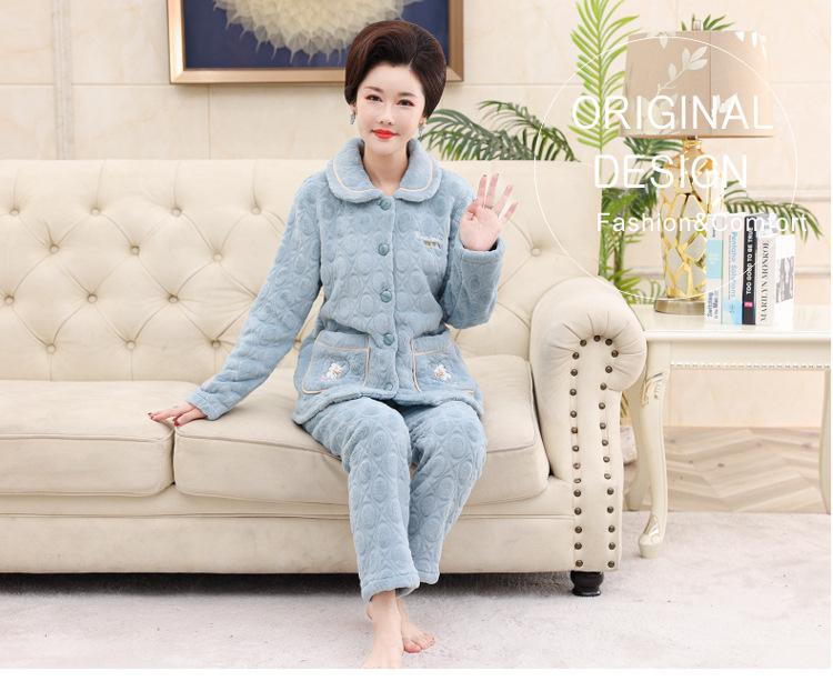 겨울 패딩 중년 및 노인 숙녀 플란넬 잠옷 수 놓은 산호 양털 플러스 사이즈 노인 가정 옷의 세대