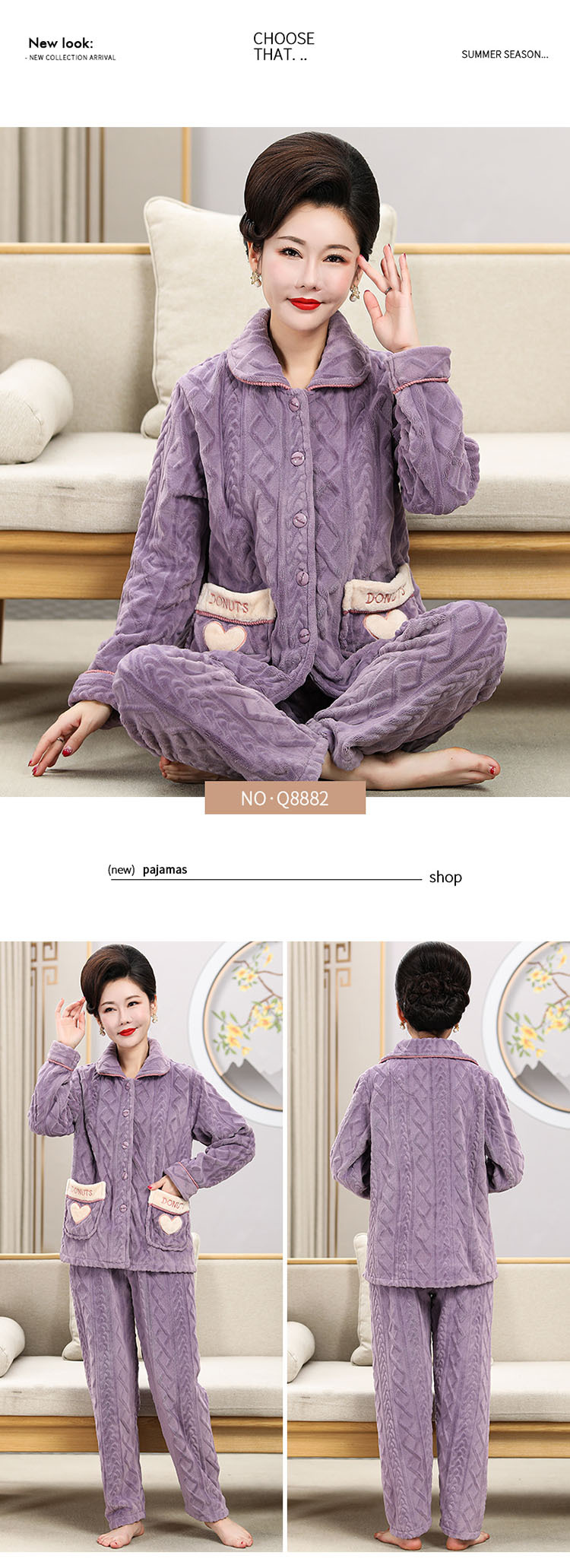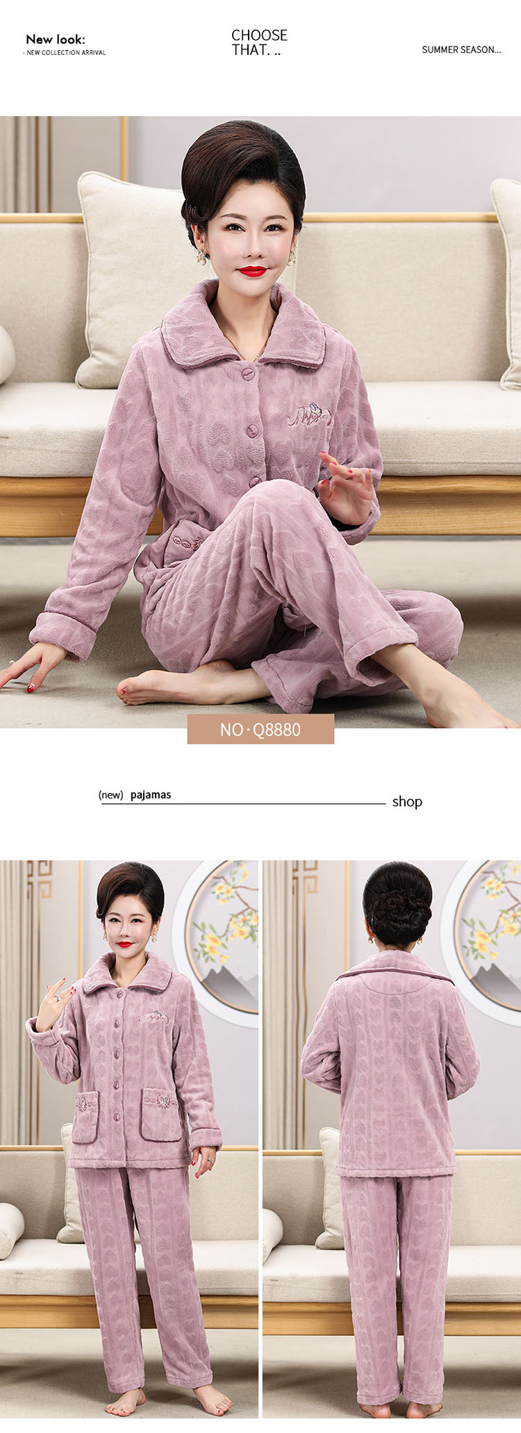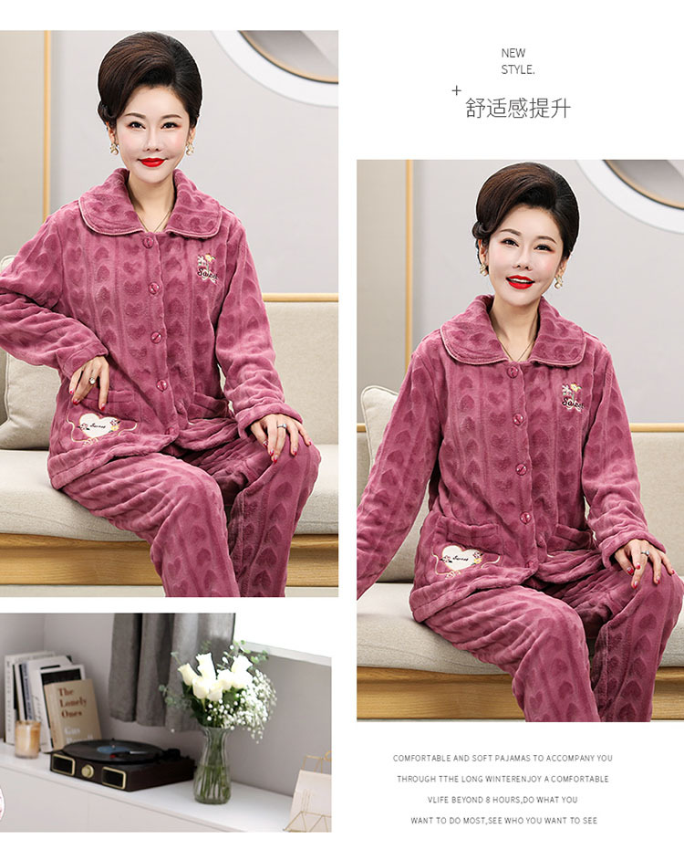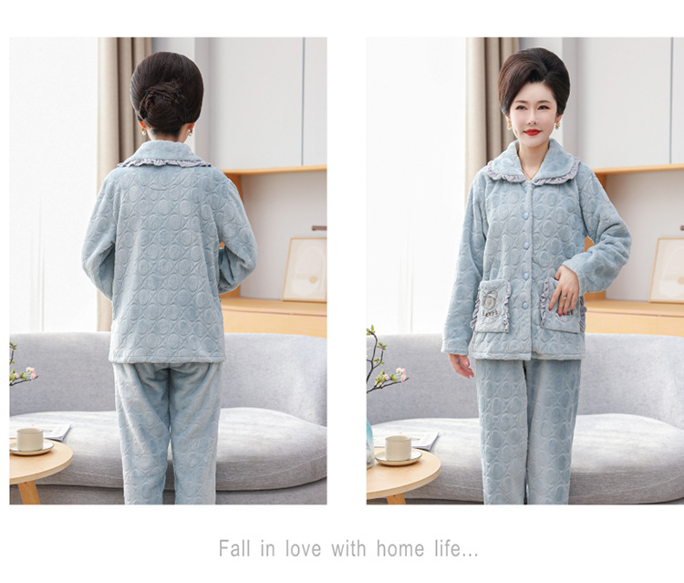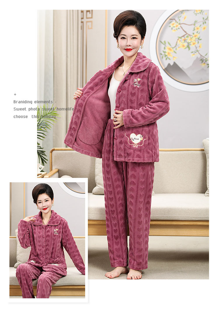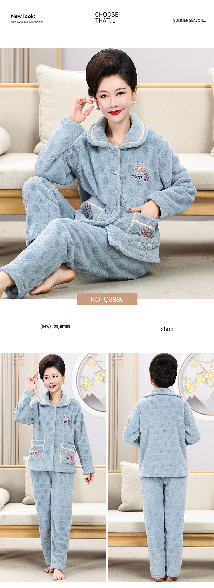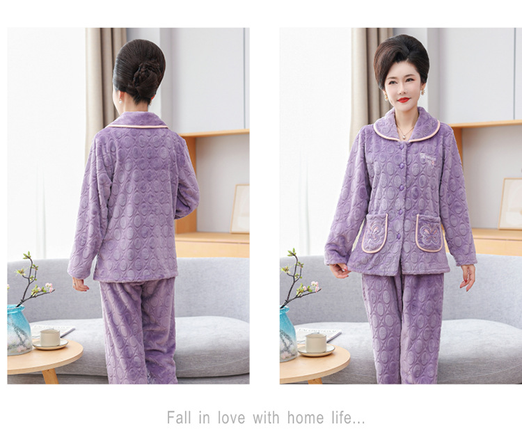 겨울 패딩 중년 및 노인 숙녀 플란넬 잠옷 수 놓은 산호 양털 플러스 사이즈 노인 가정 옷의 세대