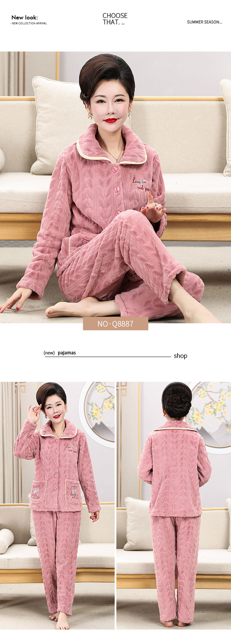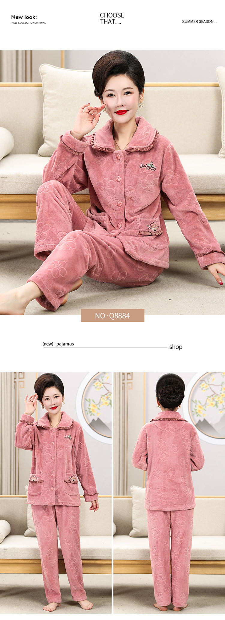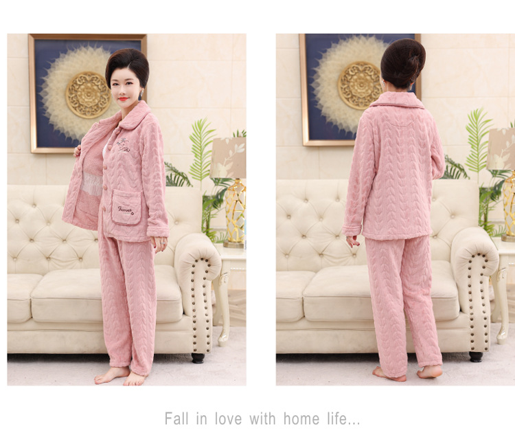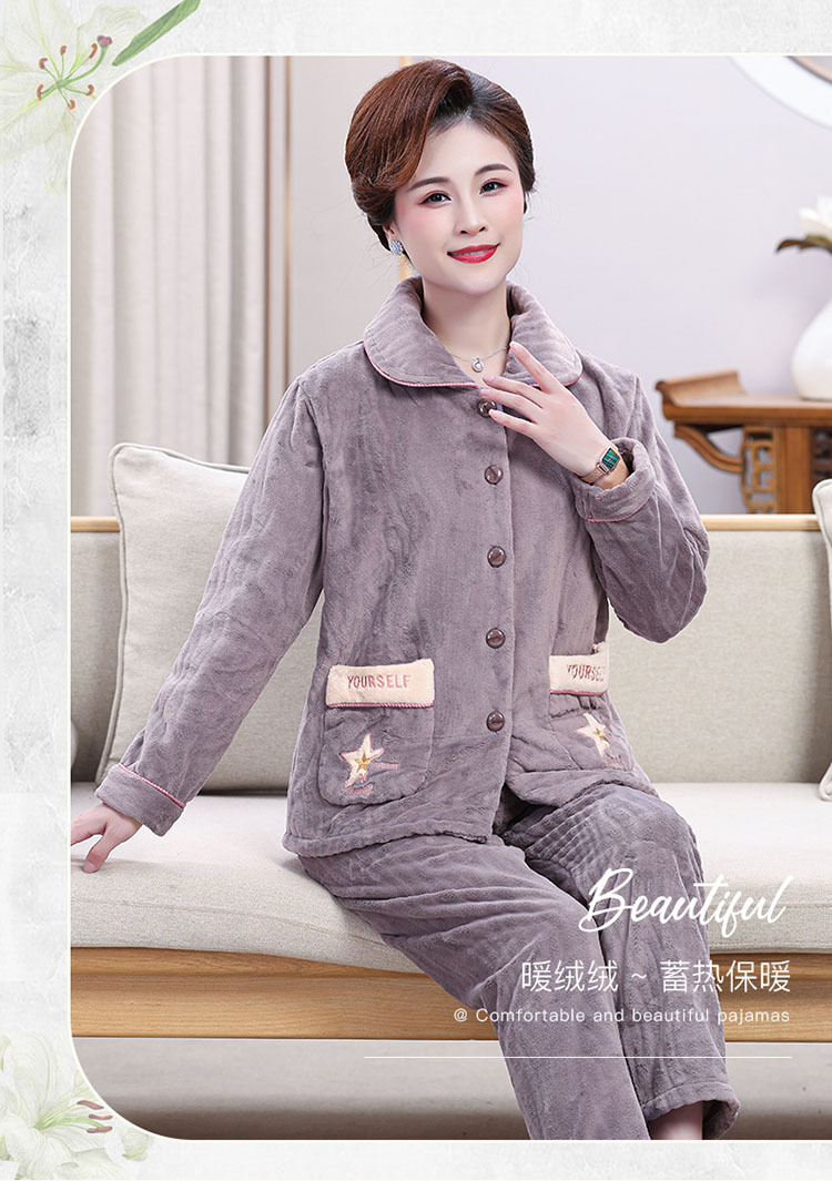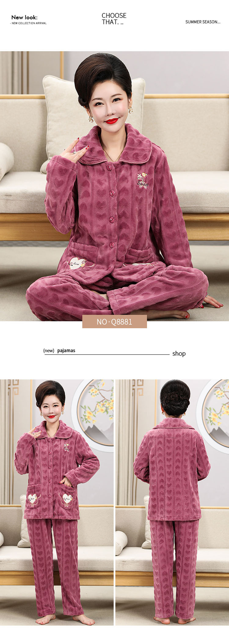 겨울 패딩 중년 및 노인 숙녀 플란넬 잠옷 수 놓은 산호 양털 플러스 사이즈 노인 가정 옷의 세대