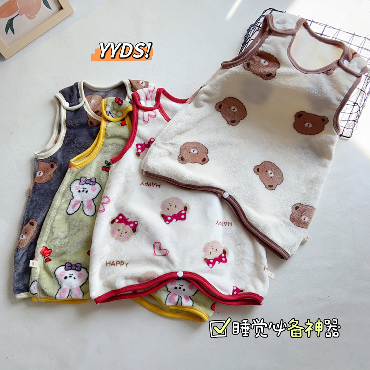 가을과 겨울 아기 침낭 플란넬 어린이 다리 안티 킥 조끼 원피스 잠옷 따뜻한 소년 소녀 가정복스토어 가기
