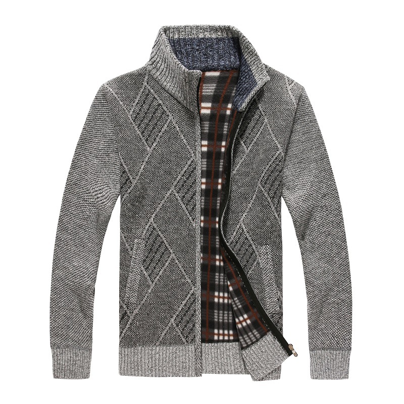 크로스 보더 가을과 겨울 남성 스웨터 패션 자카드 스탠드 칼라 니트 스웨터 지퍼 가디건 따뜻한 느슨한 캐주얼 재킷