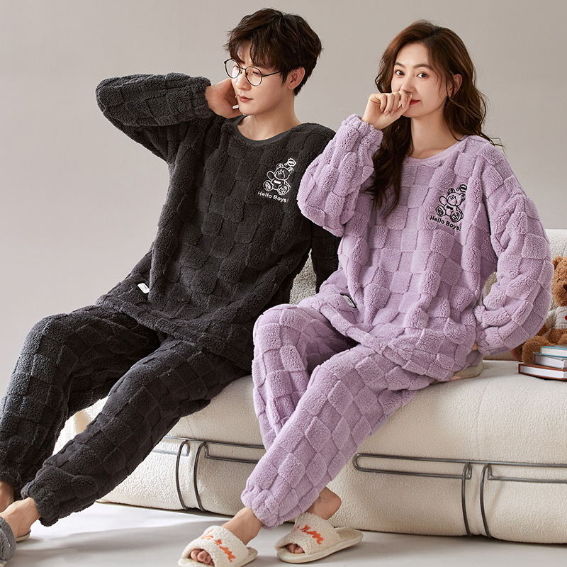 새로운 플란넬 커플 잠옷 여자의 기모 두꺼운 따뜻한 세트 플러스 사이즈 남자의 산호 양털 가정용 옷 겨울