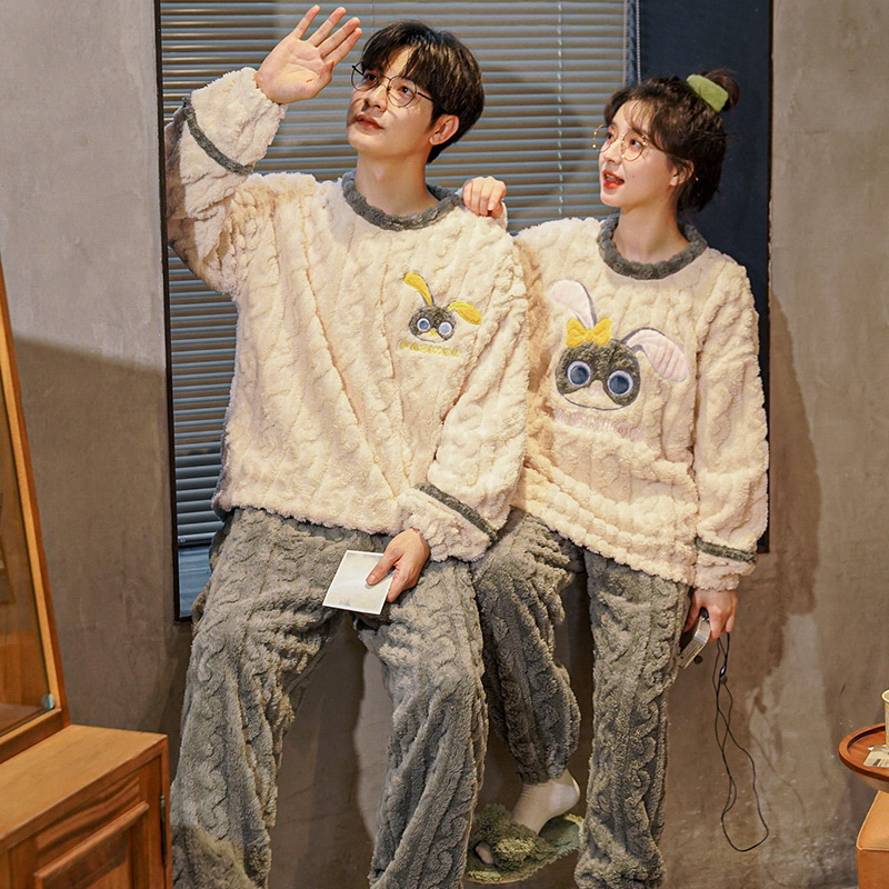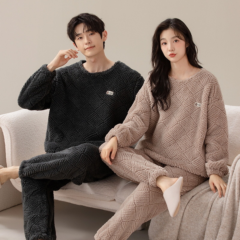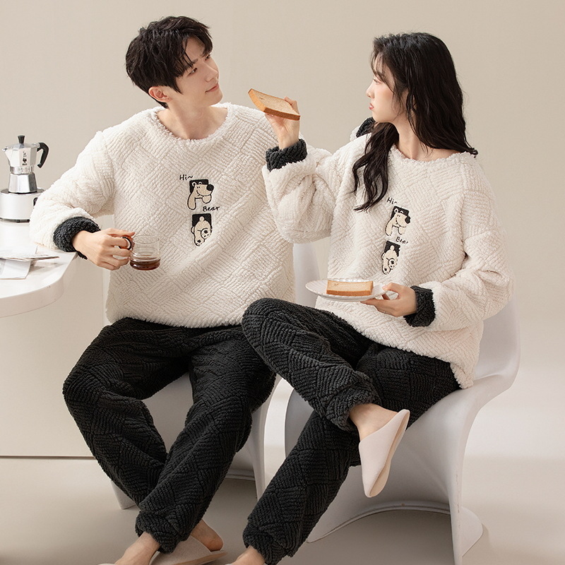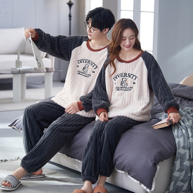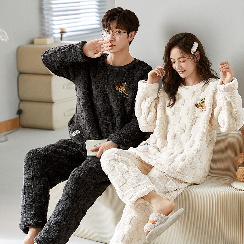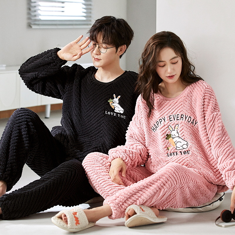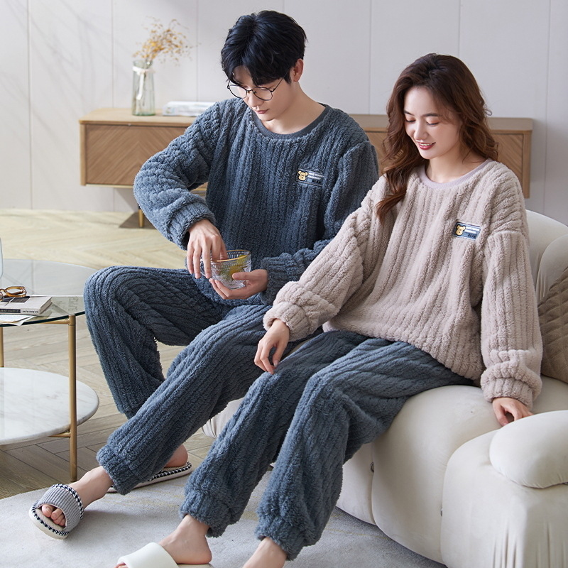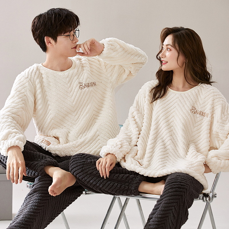 새로운 플란넬 커플 잠옷 여자의 기모 두꺼운 따뜻한 세트 플러스 사이즈 남자의 산호 양털 가정용 옷 겨울스토어 가기