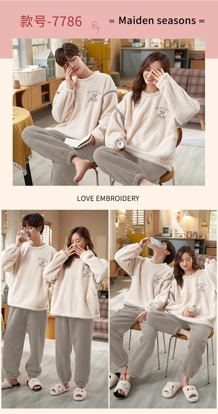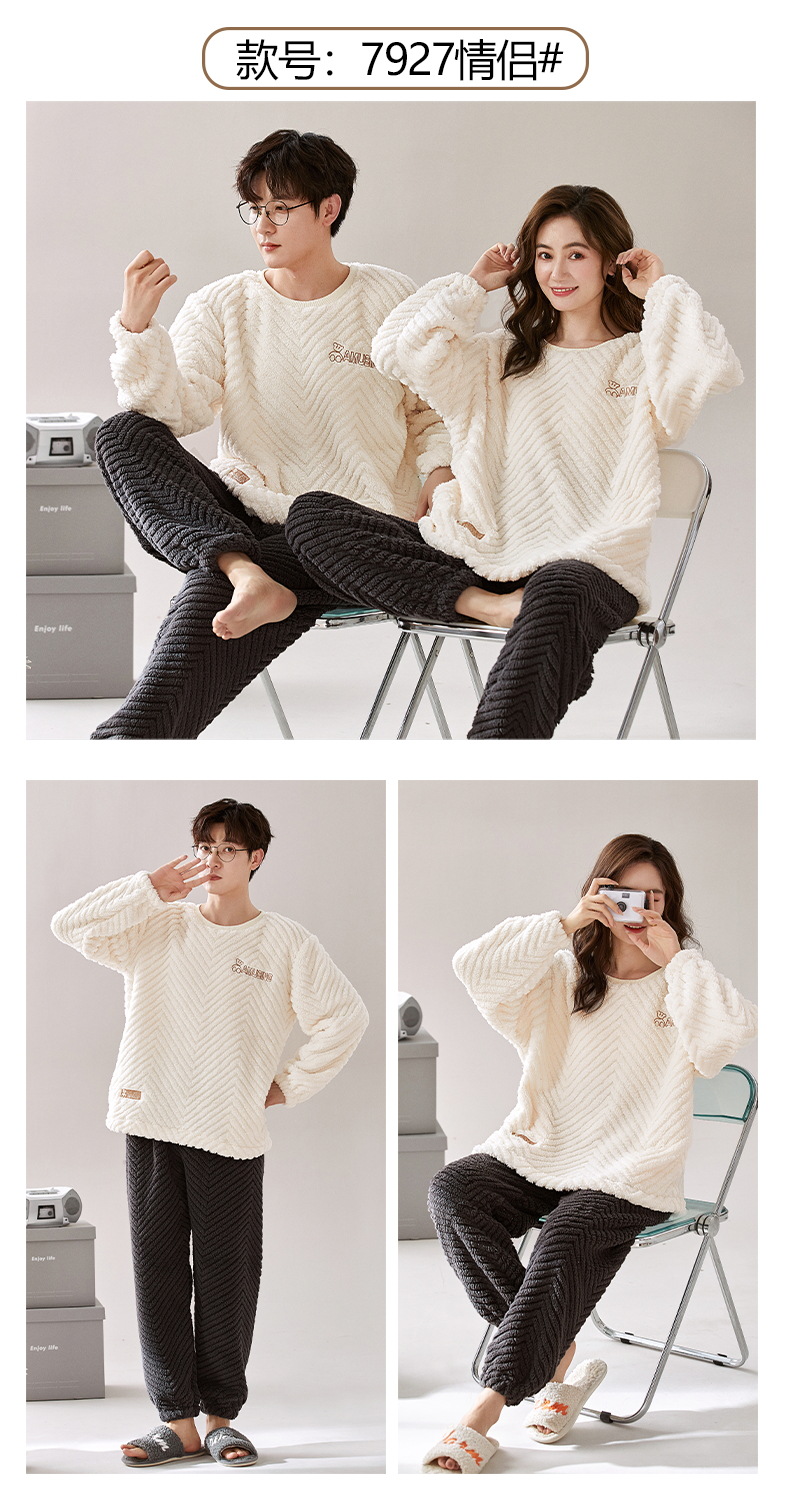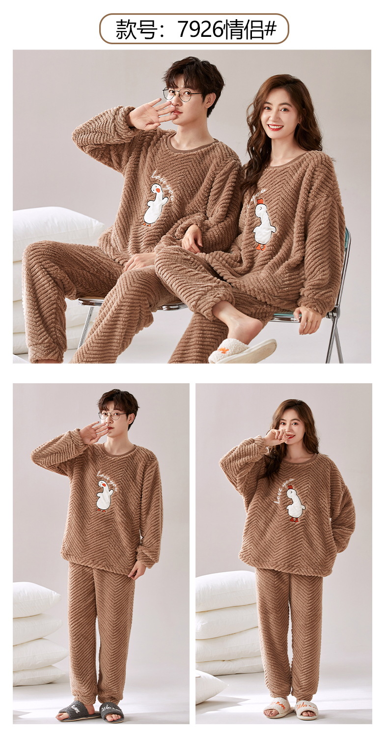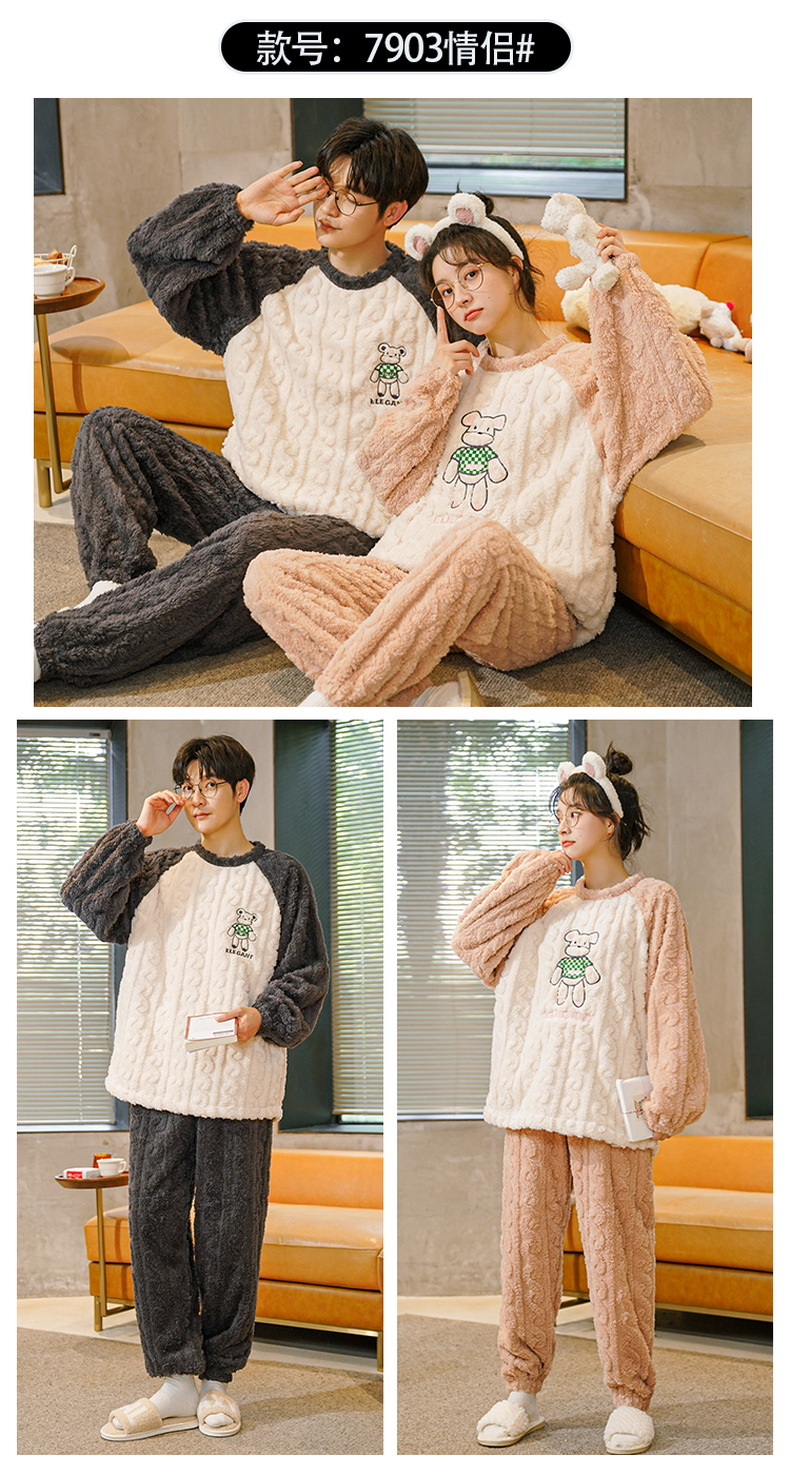 새로운 플란넬 커플 잠옷 여자의 기모 두꺼운 따뜻한 세트 플러스 사이즈 남자의 산호 양털 가정용 옷 겨울스토어 가기