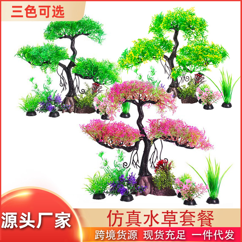 어항 물 잔디 이끼 나무 패키지 풍경 장식 장식 수족관 시뮬레이션 플라스틱 꽃 가짜 식물 녹색 식물 장식