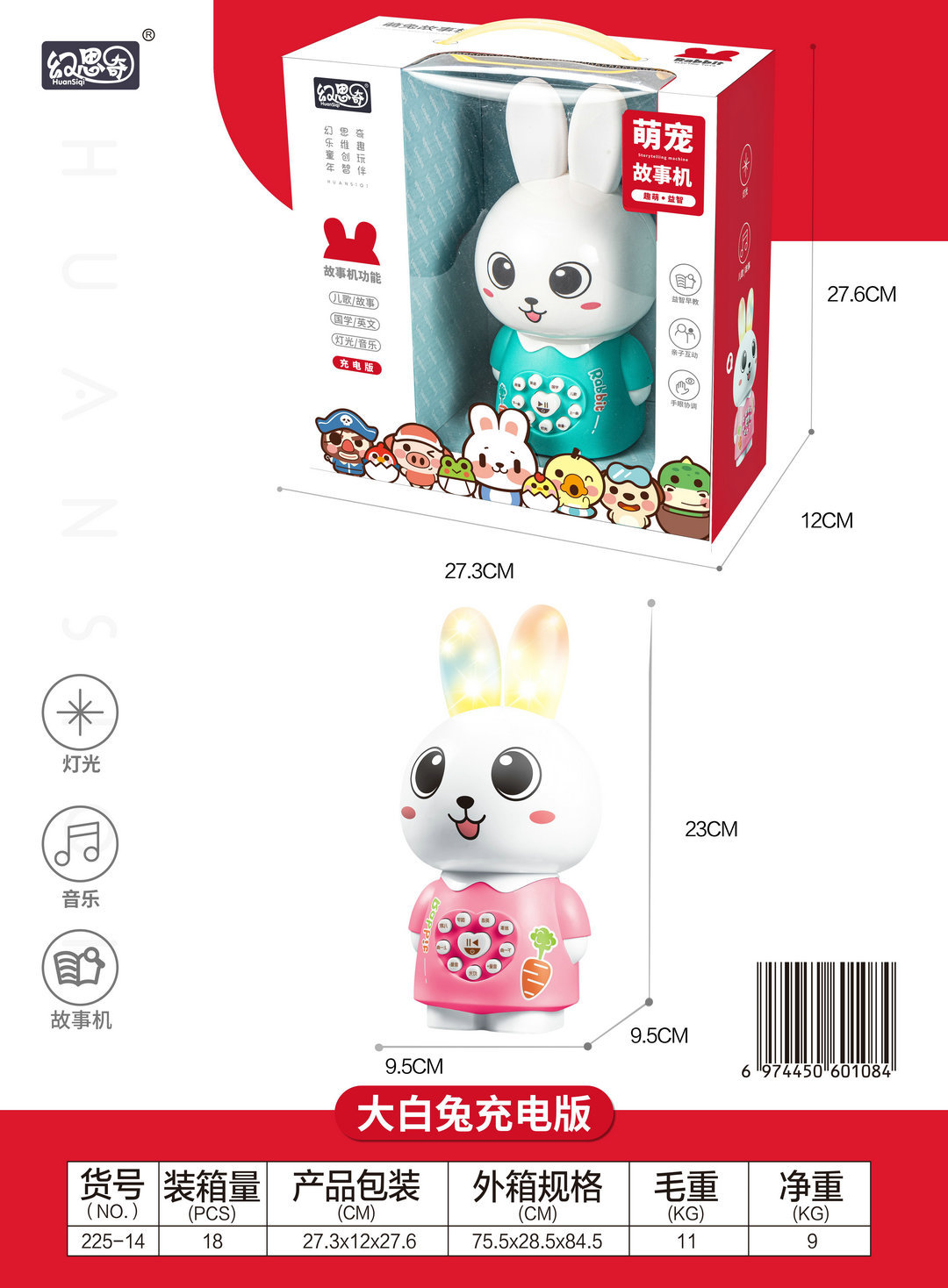 충전식 귀여운 토끼 지능형 조기 교육 학습 이야기 기계 225-14 아기 조기 교육 계몽주의 교육 어린이 장난감 선물스토어 가기