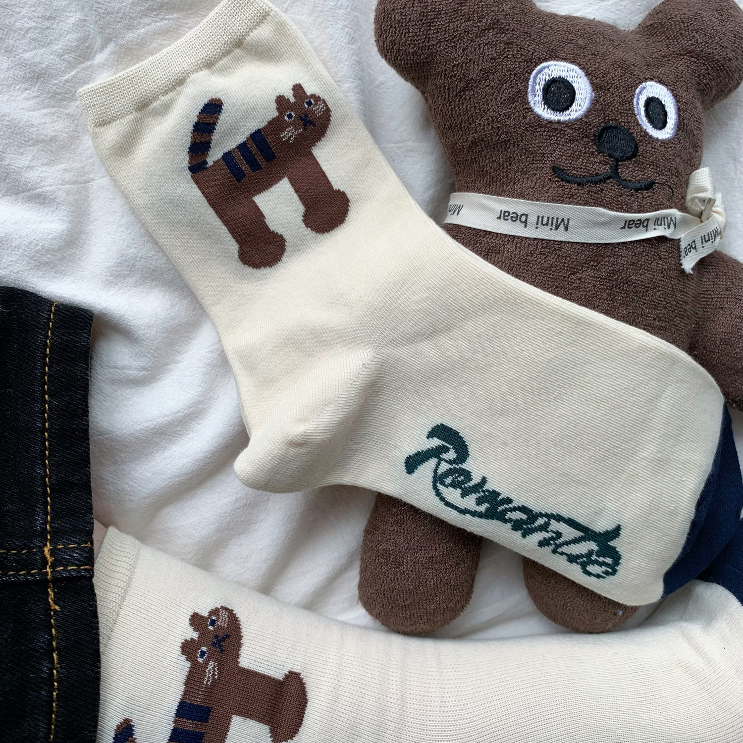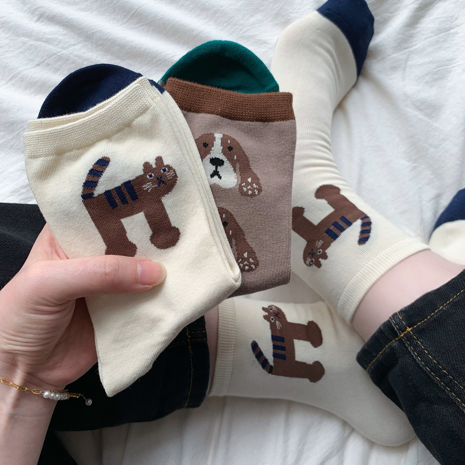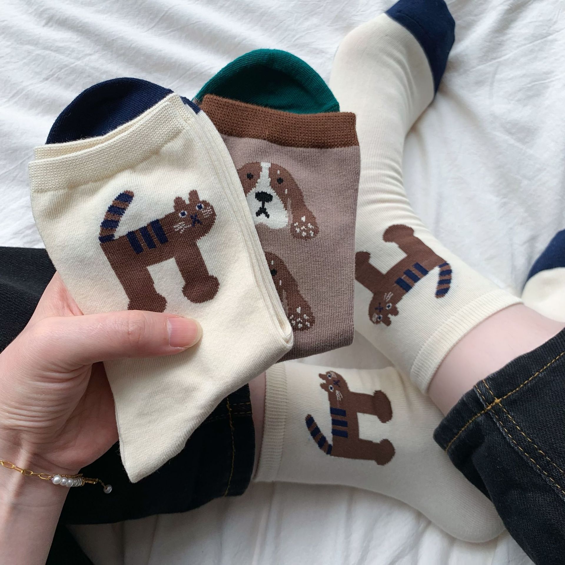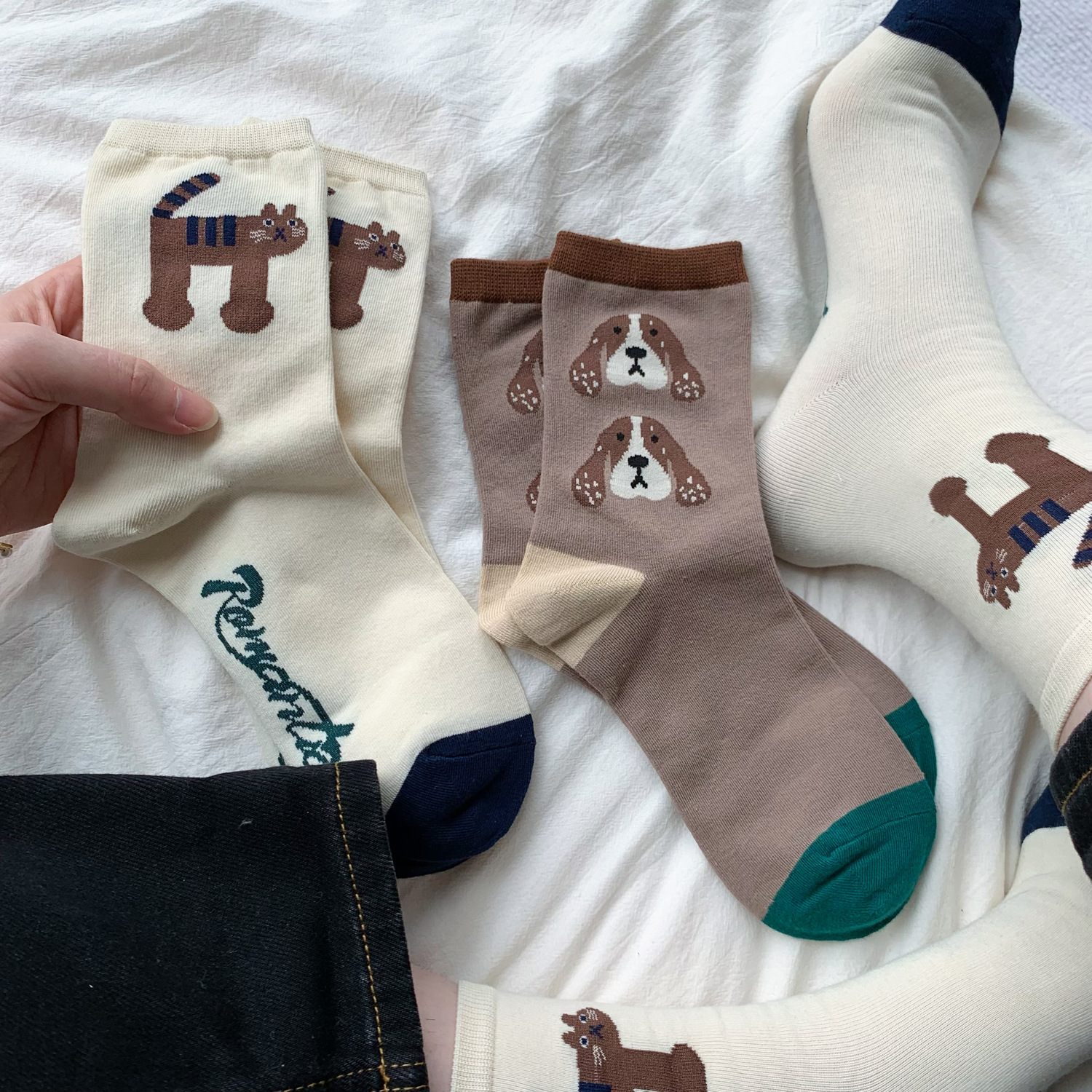 재미 있은 그림 동물 성격 가을, 겨울 양말 여성 일본 귀여운 만화 소녀 대학 스타일 중반 송아지 양말 땀 흡수스토어 가기