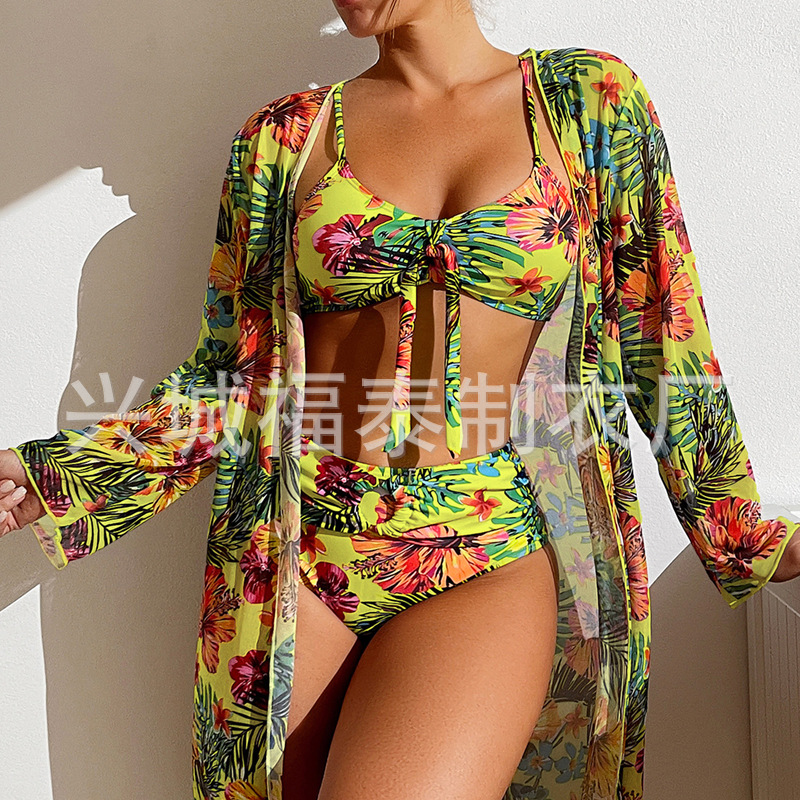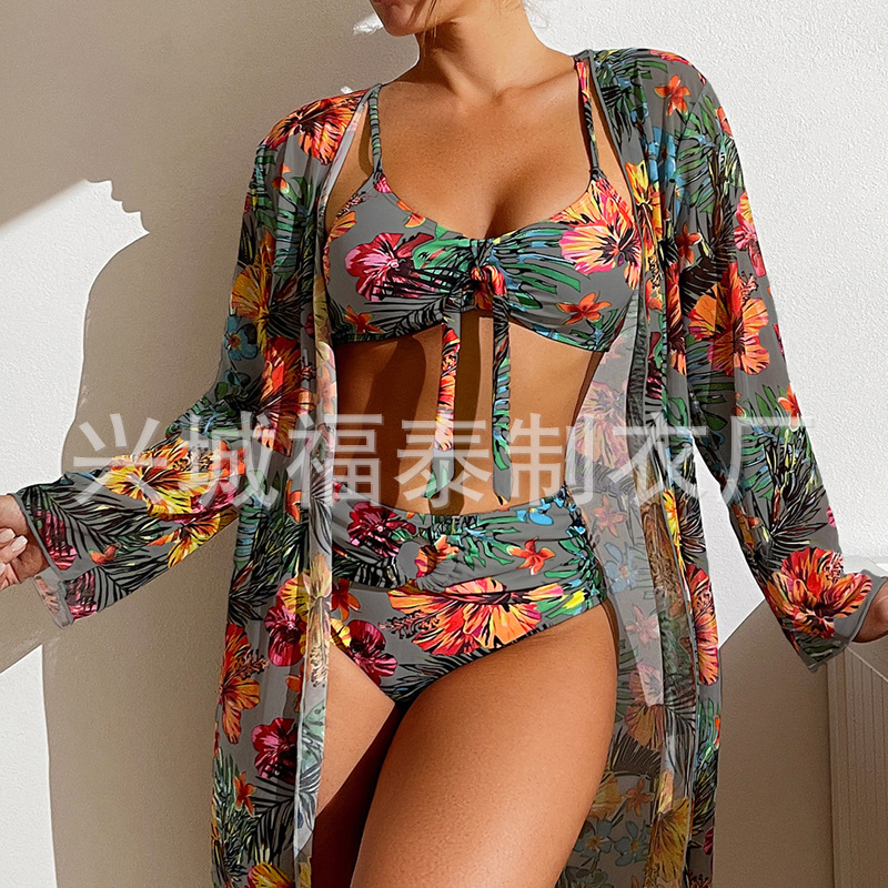 긴 소매 카디건 새로운 크로스-국경 유럽과 미국 아마존 패션 섹시 스플릿 비키니 세트 수영복 여성 도매스토어 가기