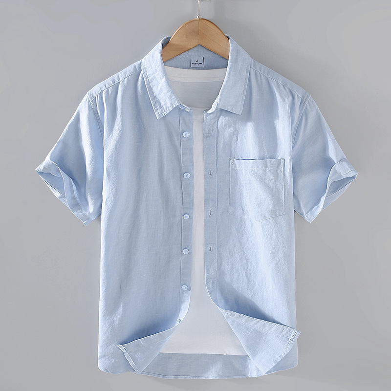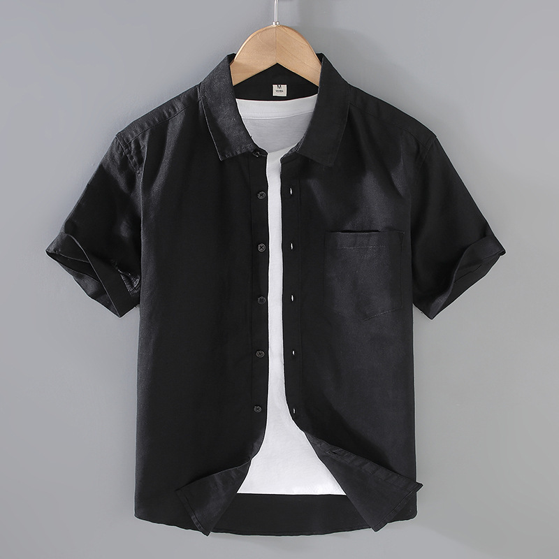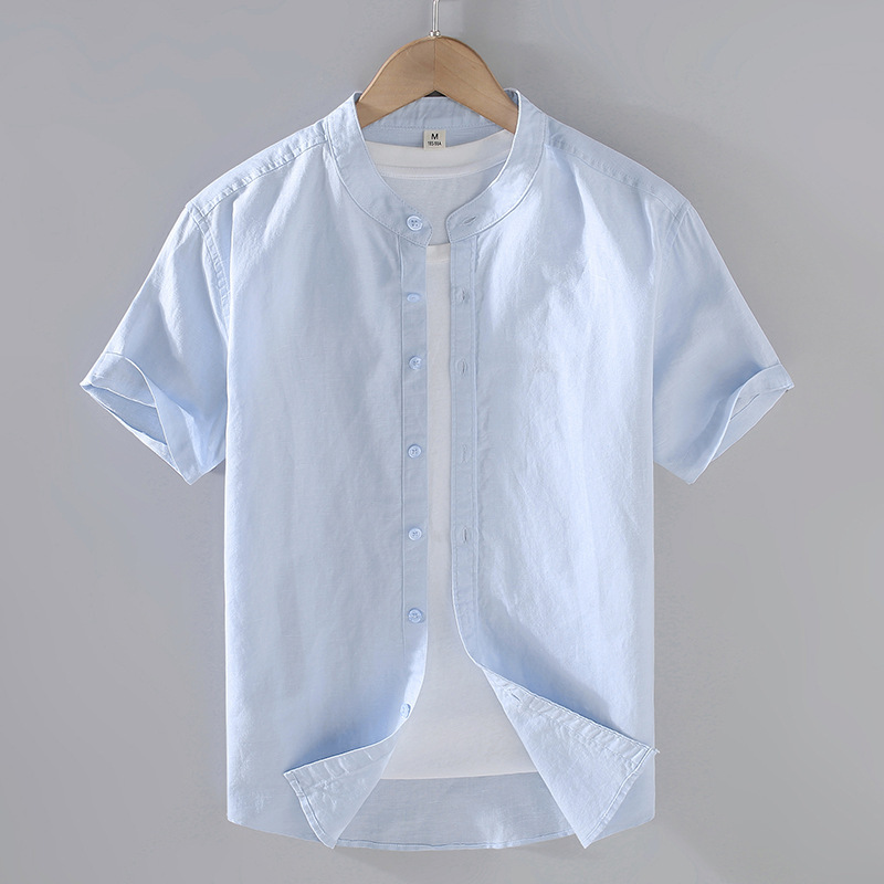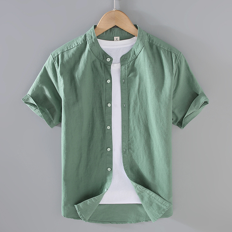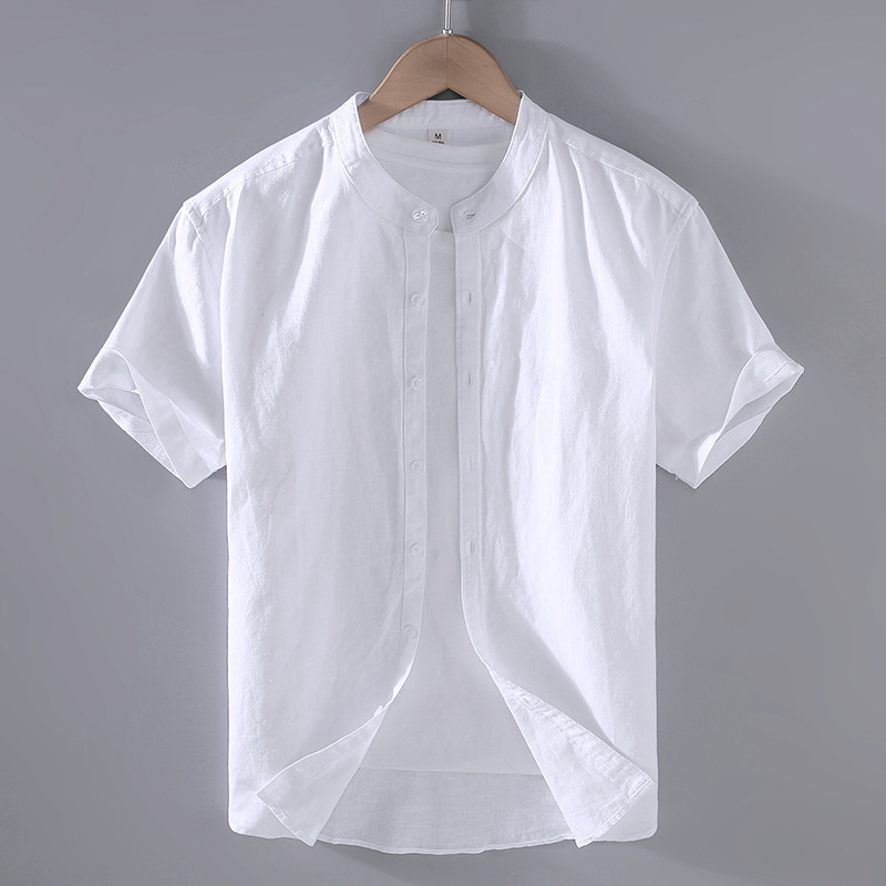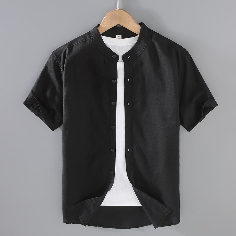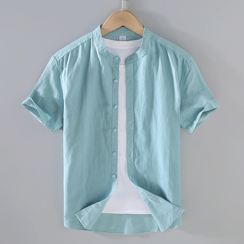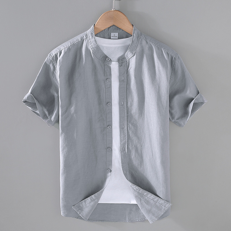 9048 여름 남성 린넨 반팔 셔츠 남성 스퀘어 칼라 캐주얼 코튼 린넨 셔츠 린넨 솔리드 컬러 반팔 탑스토어 가기